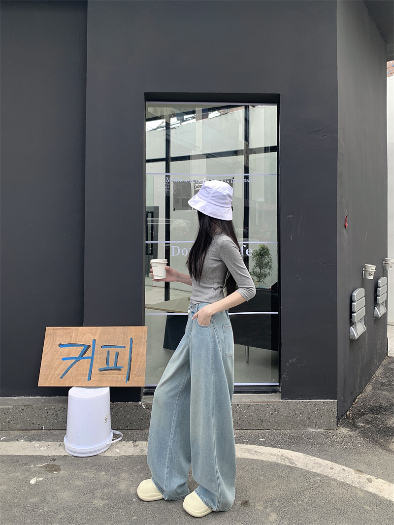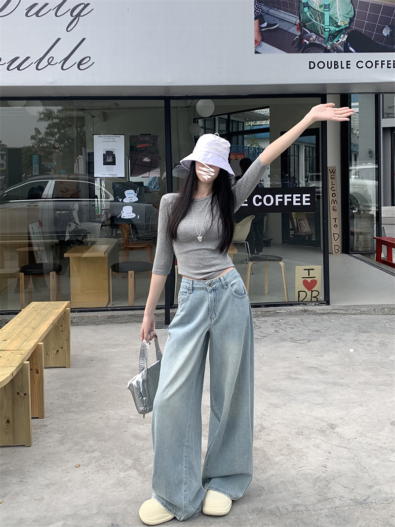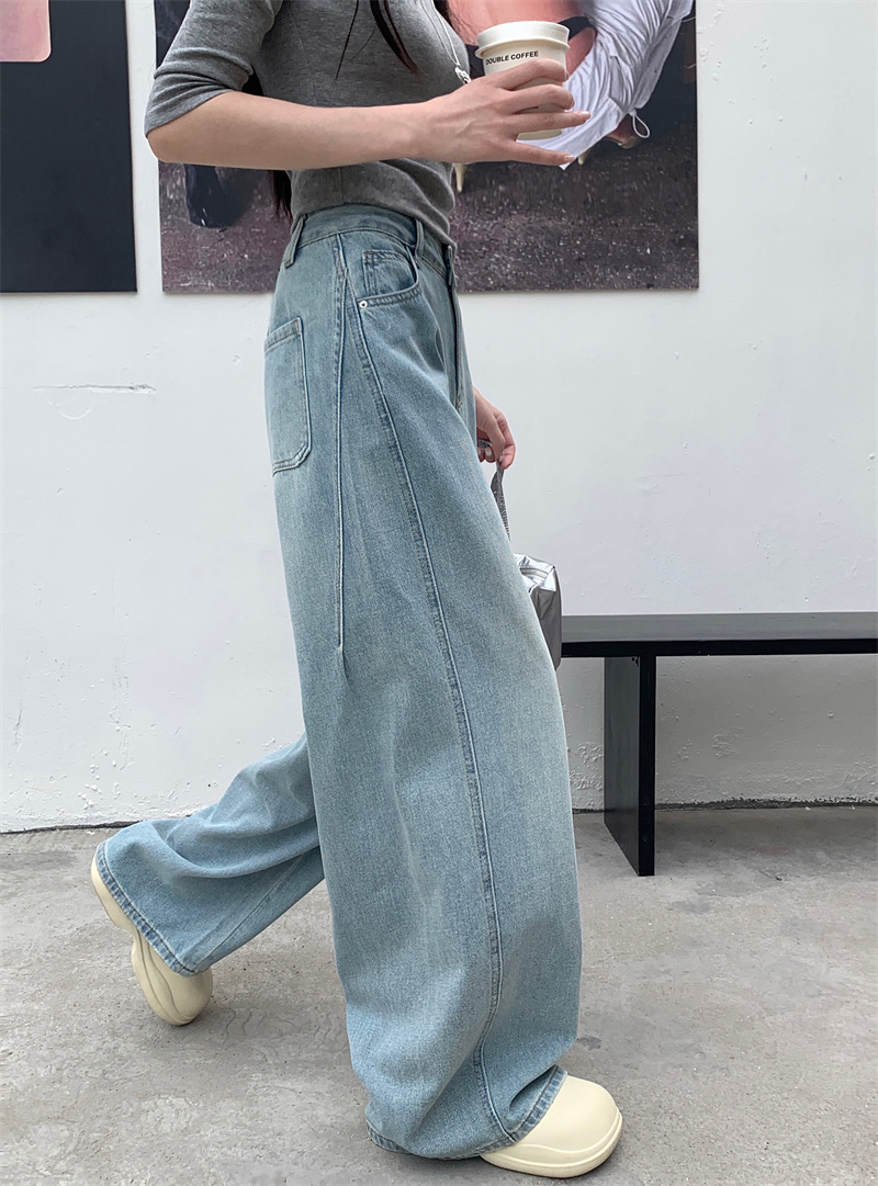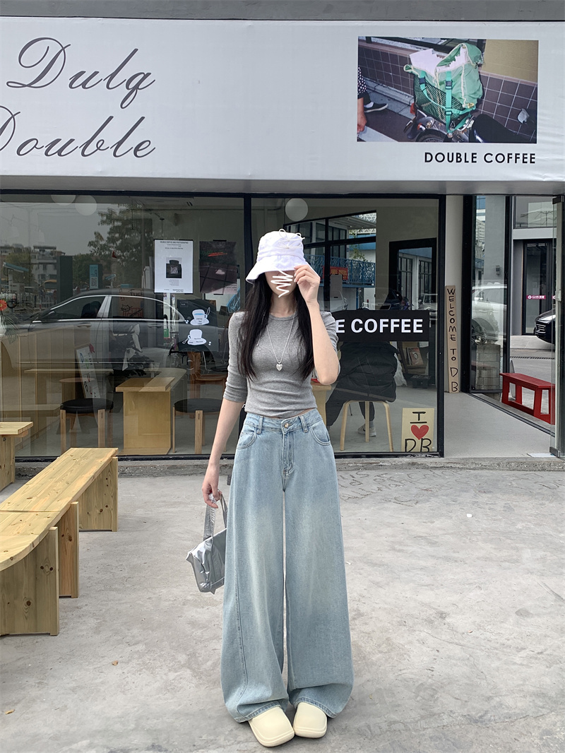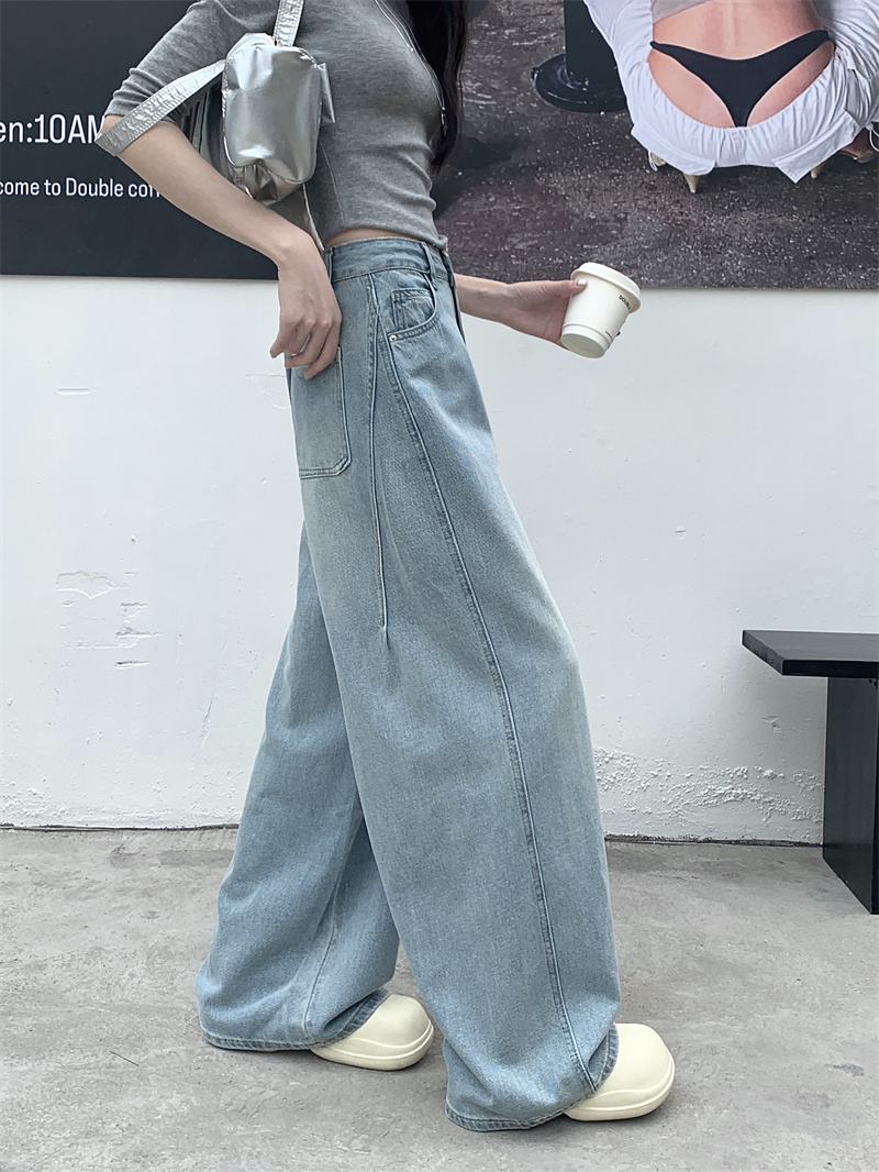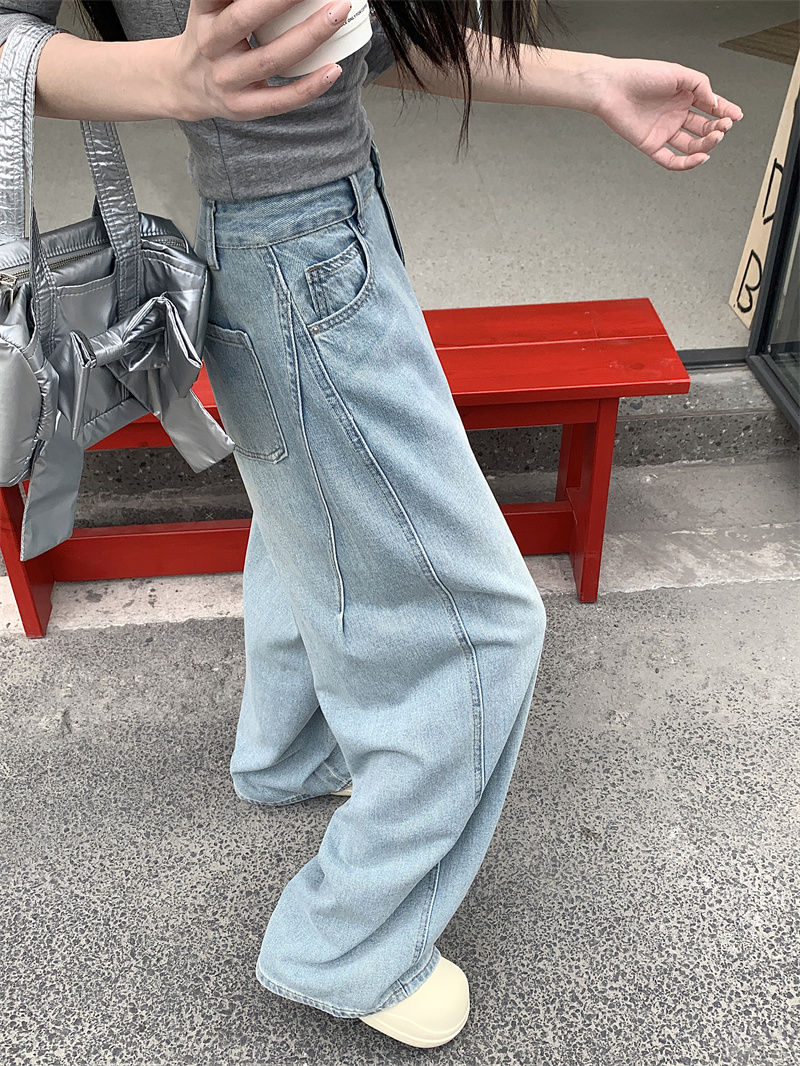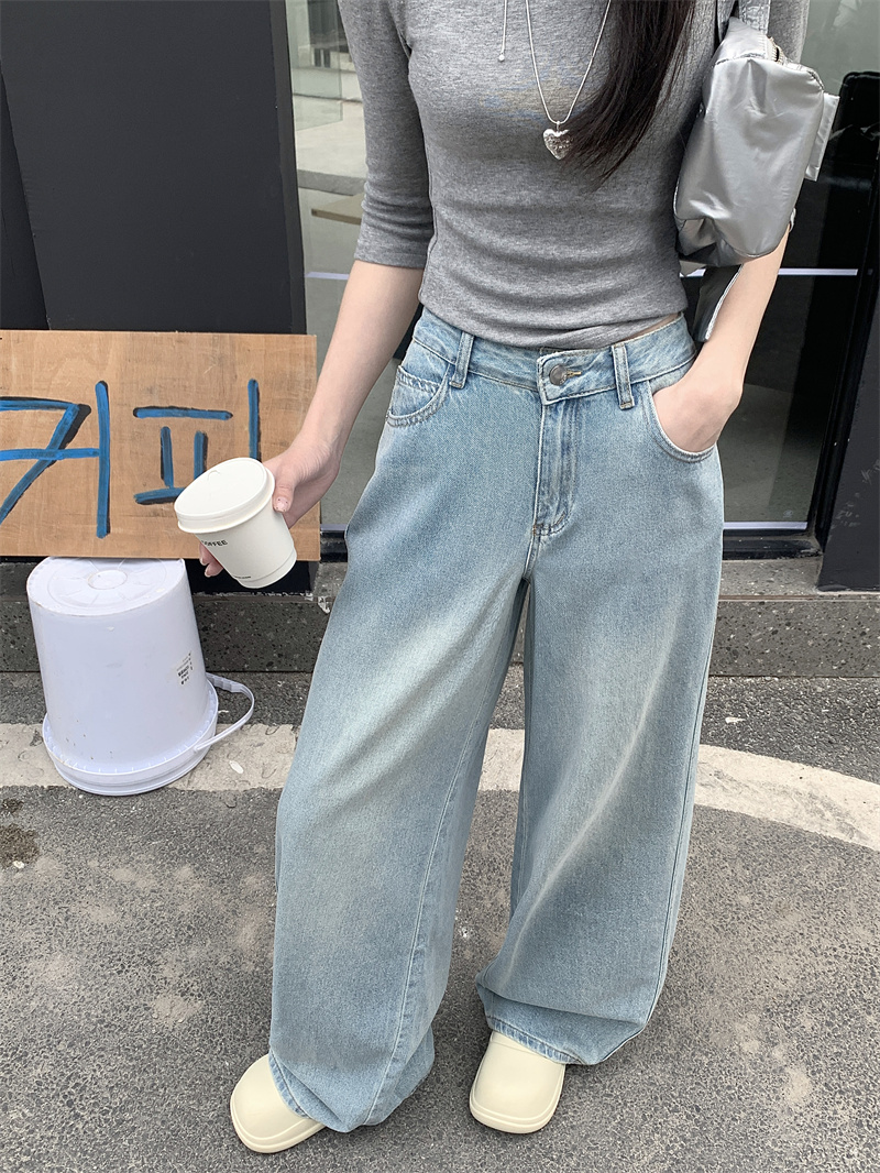 2025 년 봄 올해 인기 높은 허리 느슨한 슬림 스트레이트 바지 미국 하이 스트리트 데님 넓은 다리 바지 여성스토어 가기
