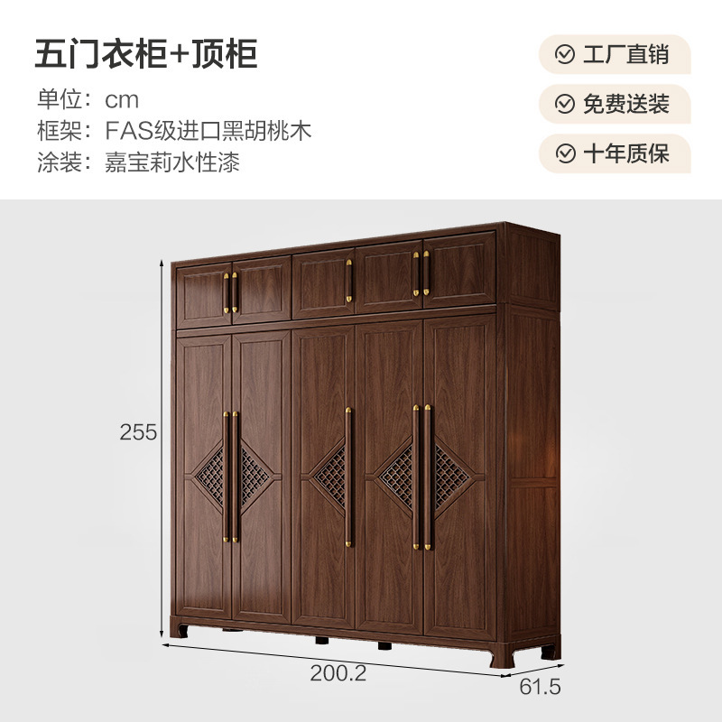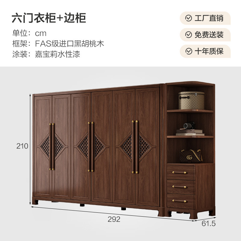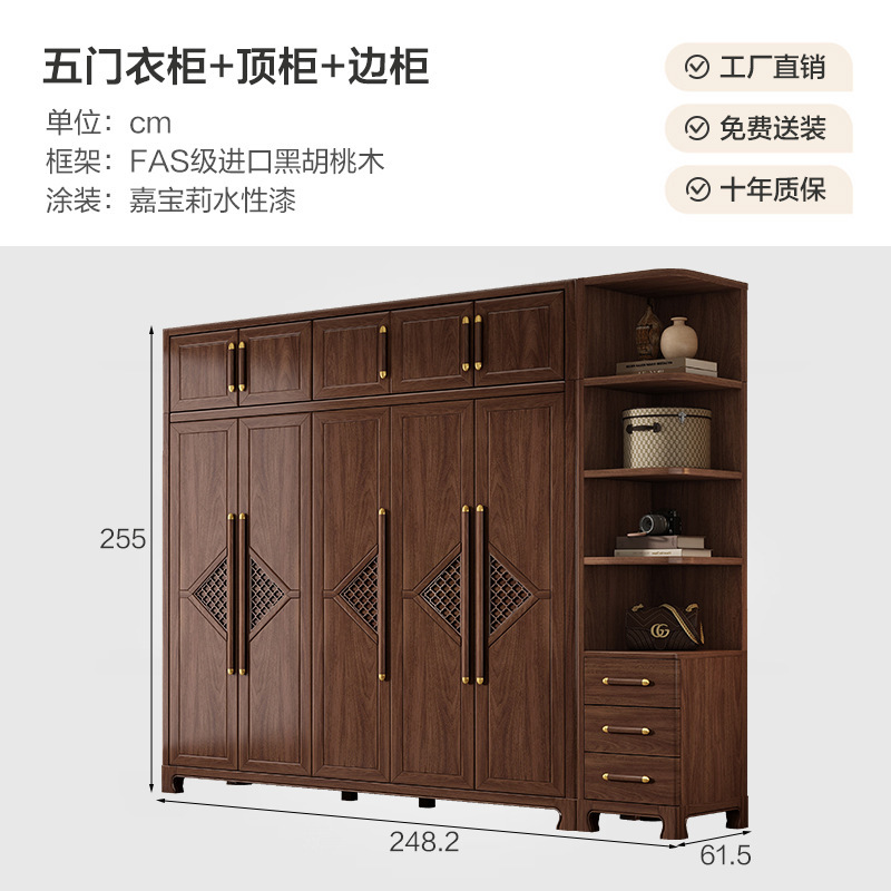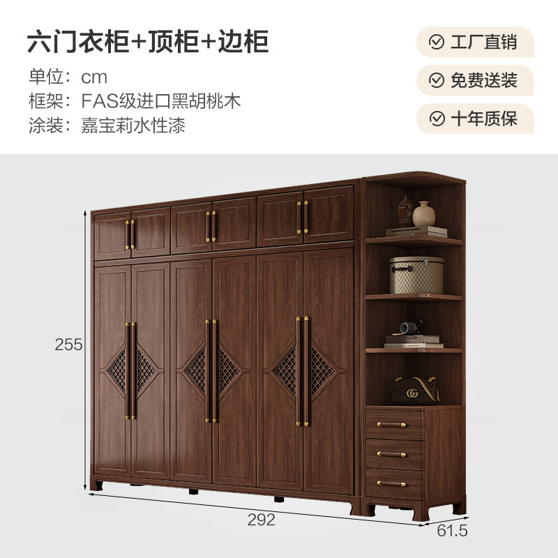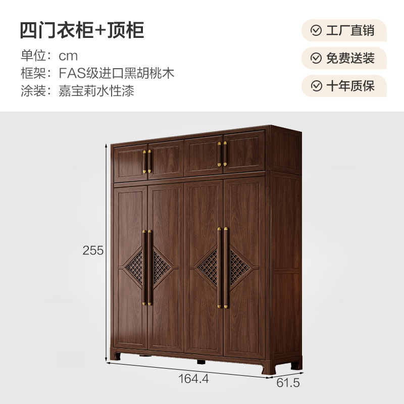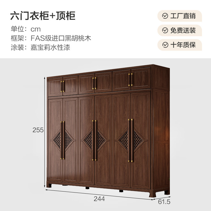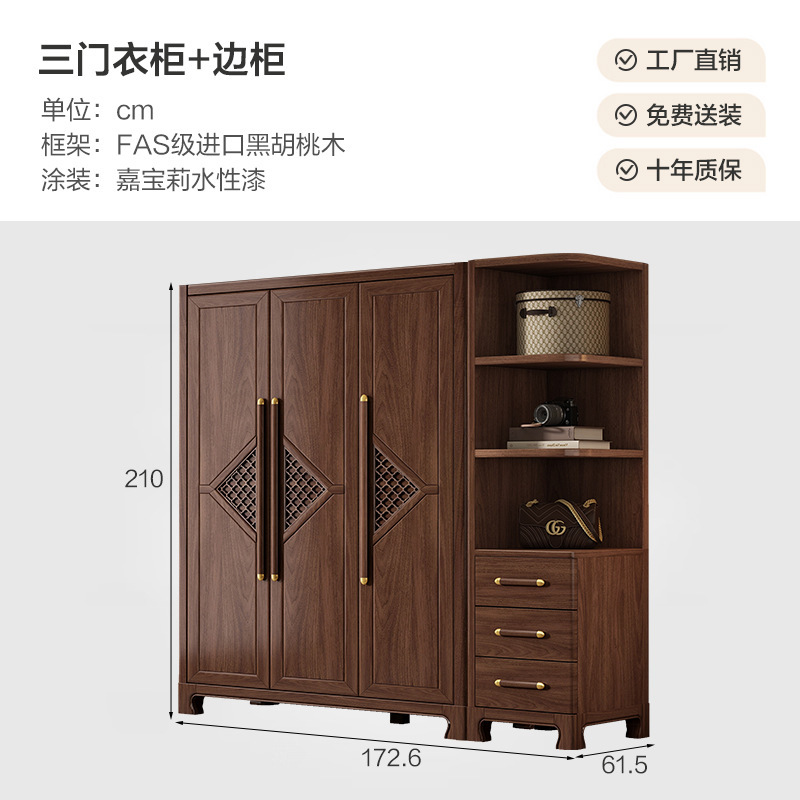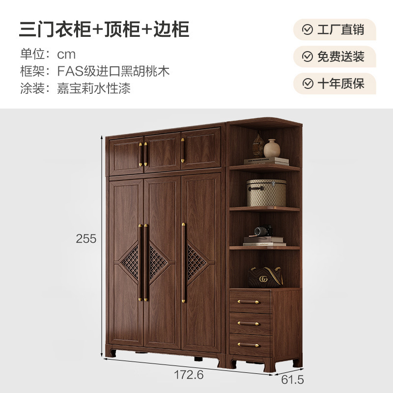 새로운 중국 스타일 옷장 작은 아파트 대용량 블랙 호두 풀 솔리드 우드 조합 마스터 침실 현대 간단한 가정 옷장