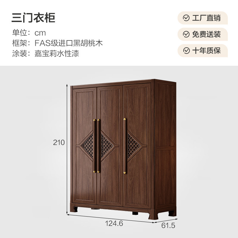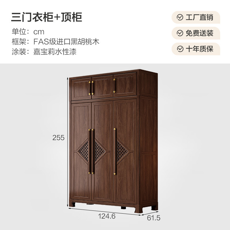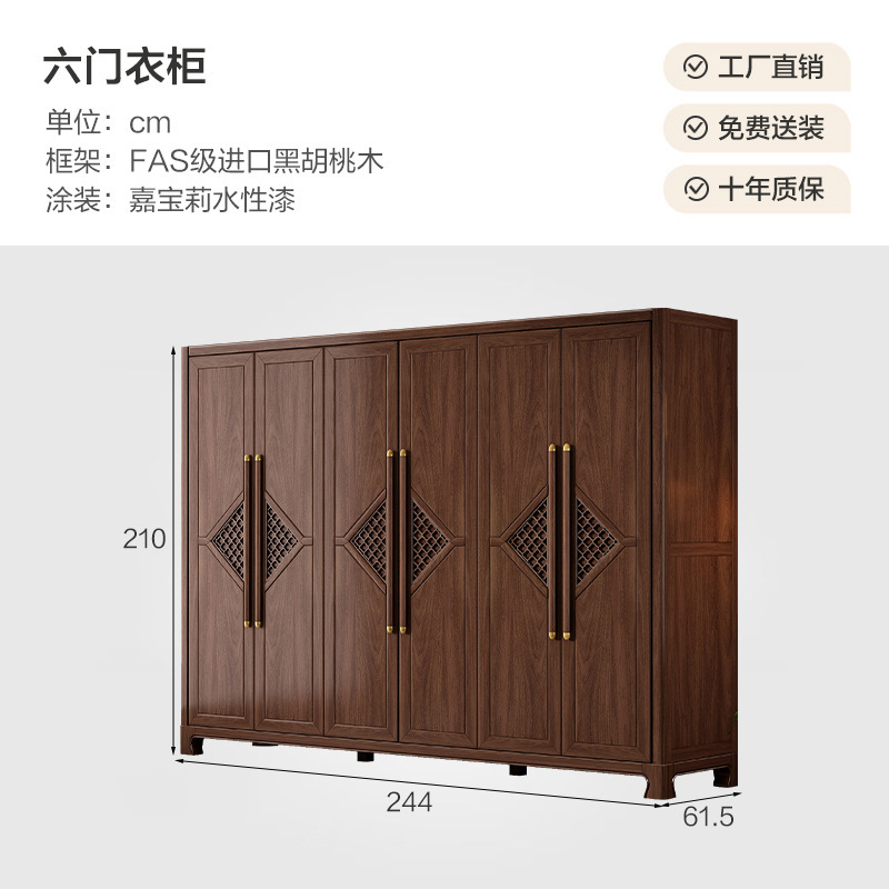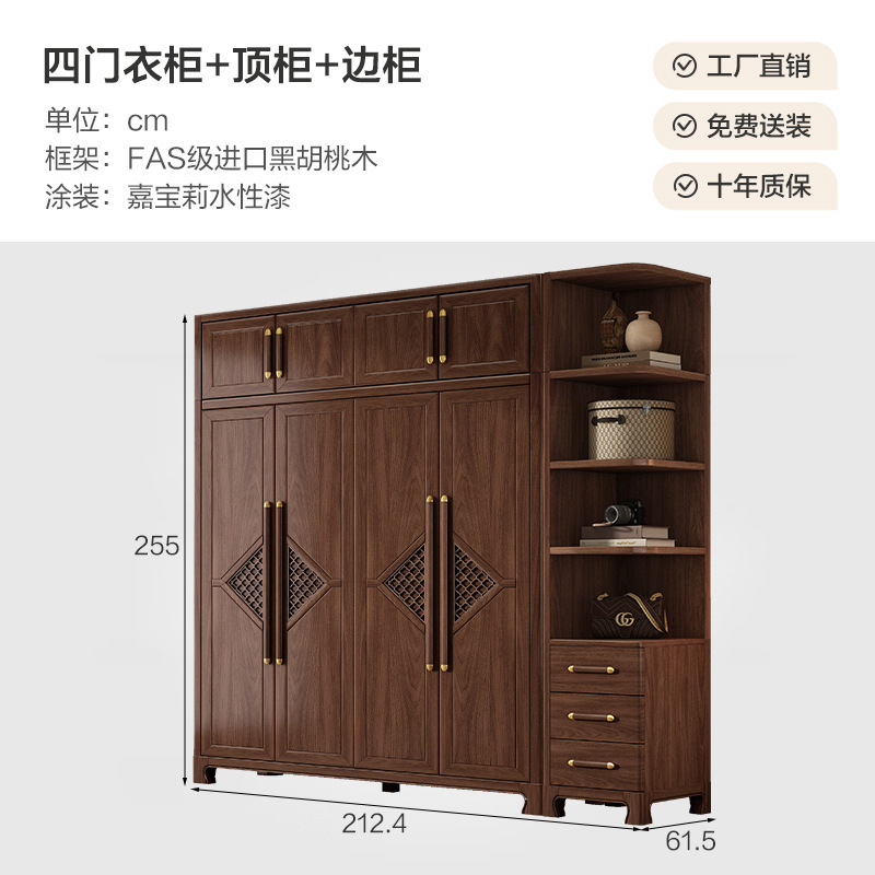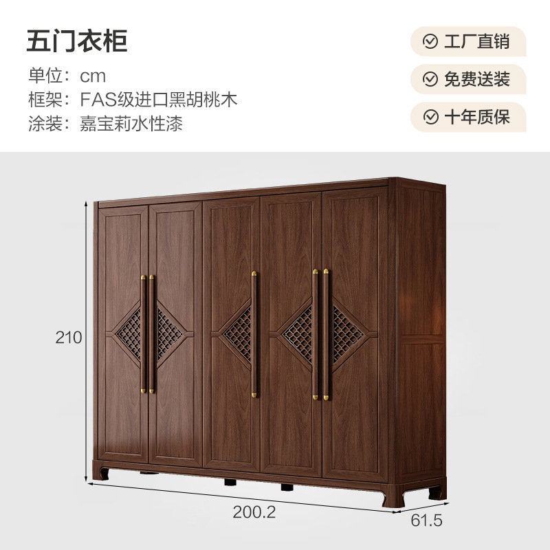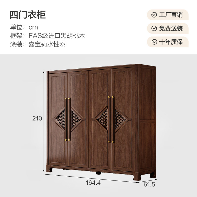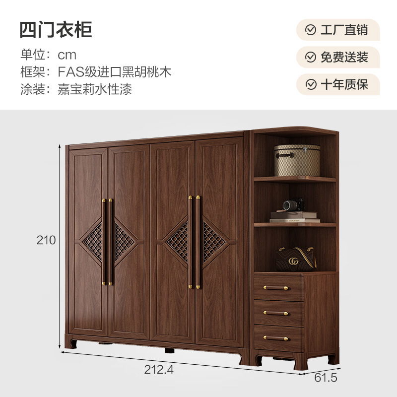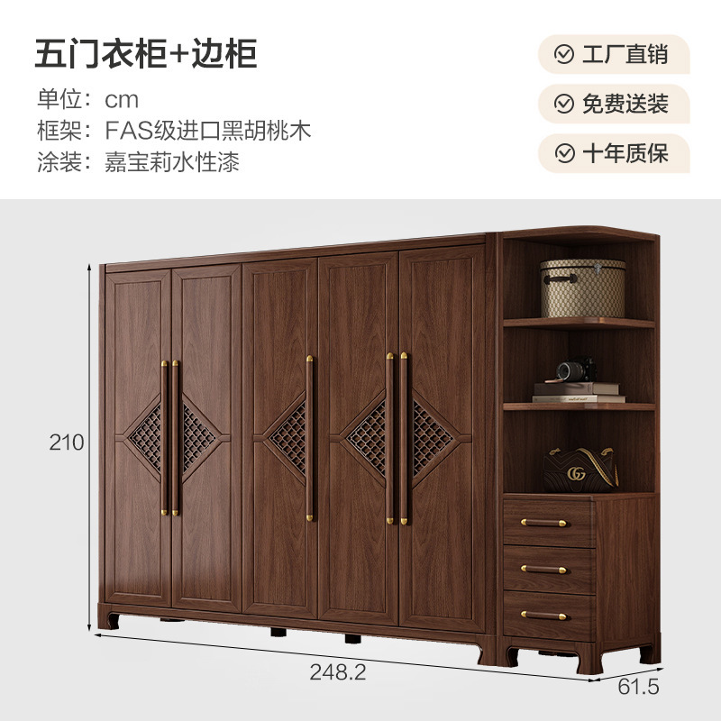 새로운 중국 스타일 옷장 작은 아파트 대용량 블랙 호두 풀 솔리드 우드 조합 마스터 침실 현대 간단한 가정 옷장