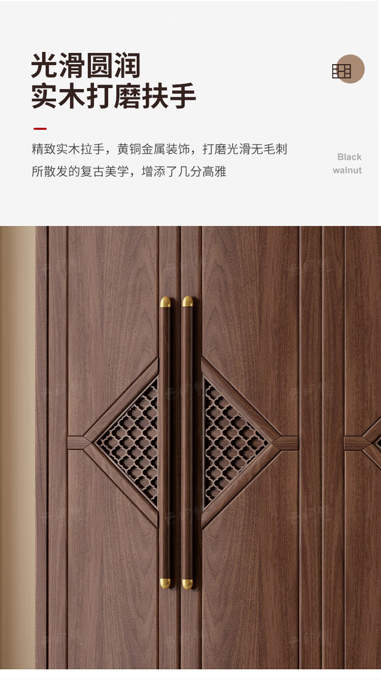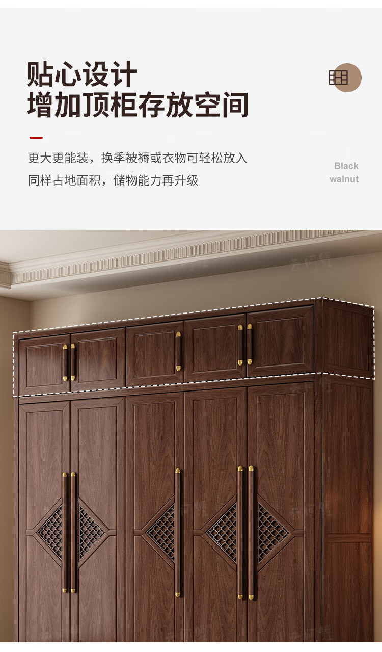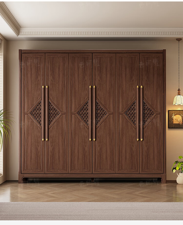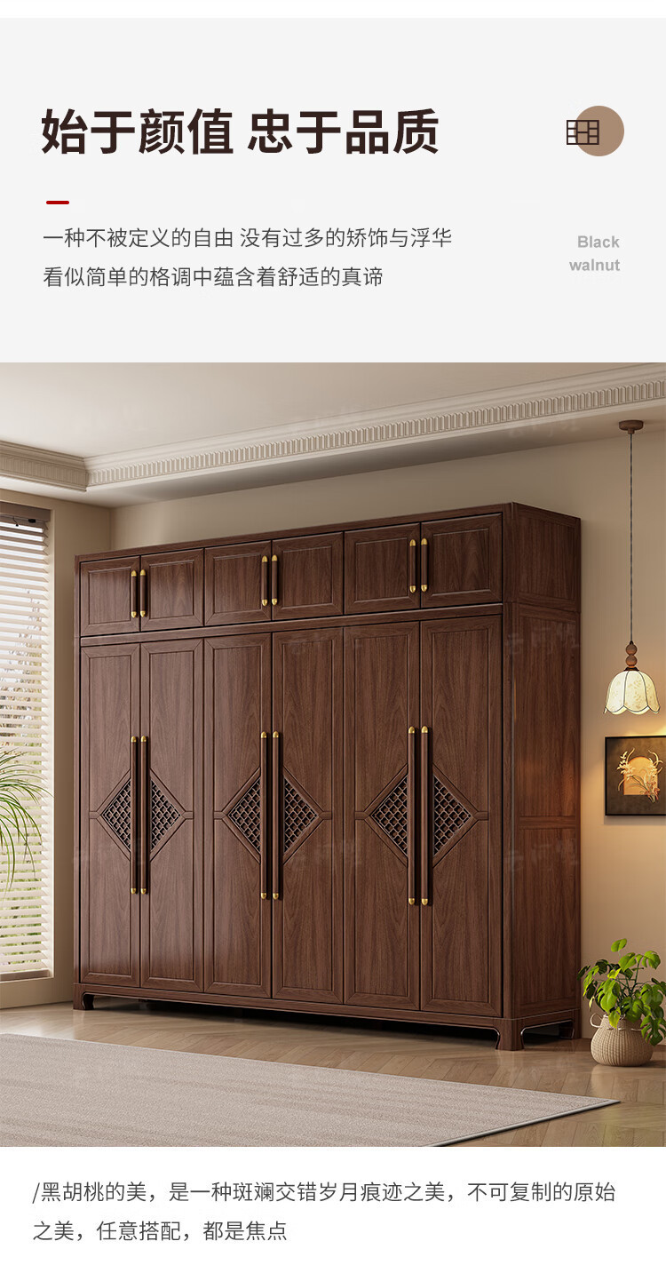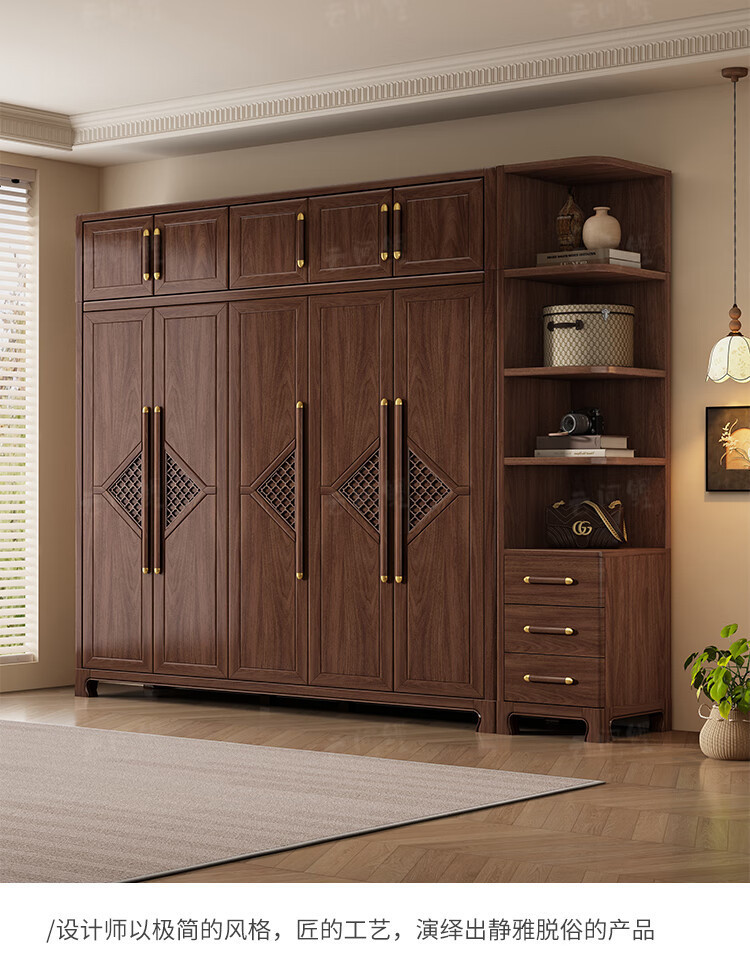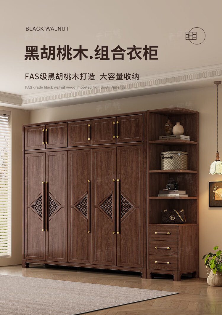 새로운 중국 스타일 옷장 작은 아파트 대용량 블랙 호두 풀 솔리드 우드 조합 마스터 침실 현대 간단한 가정 옷장