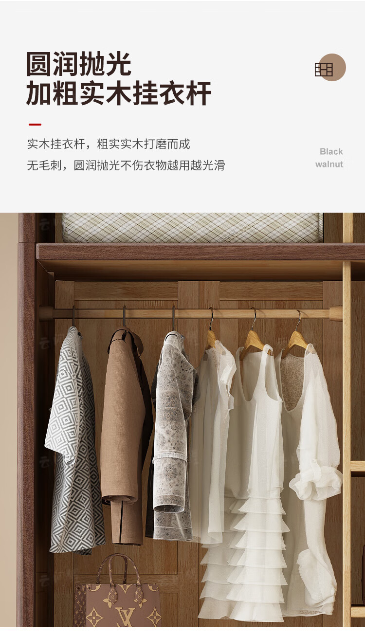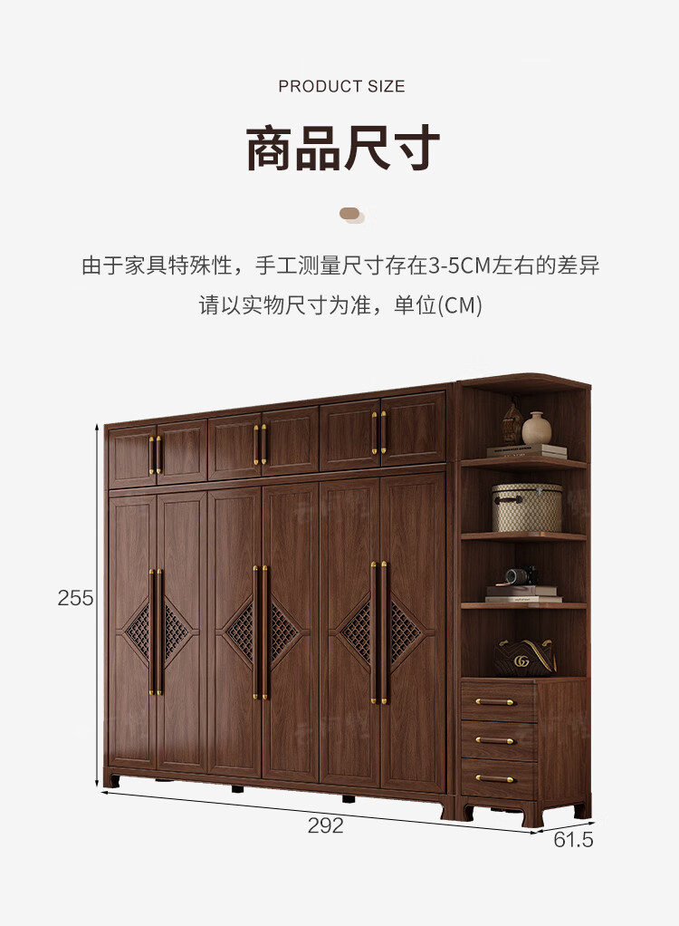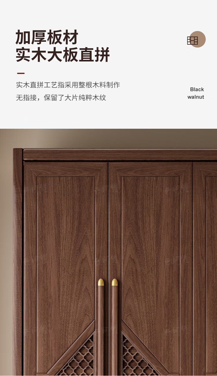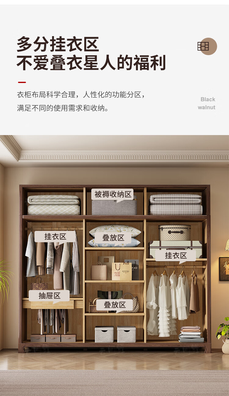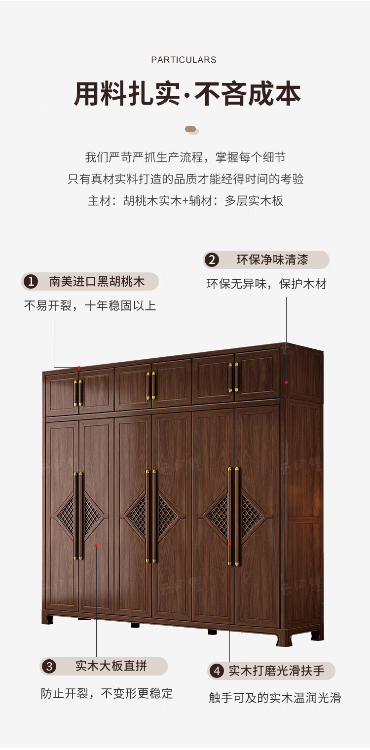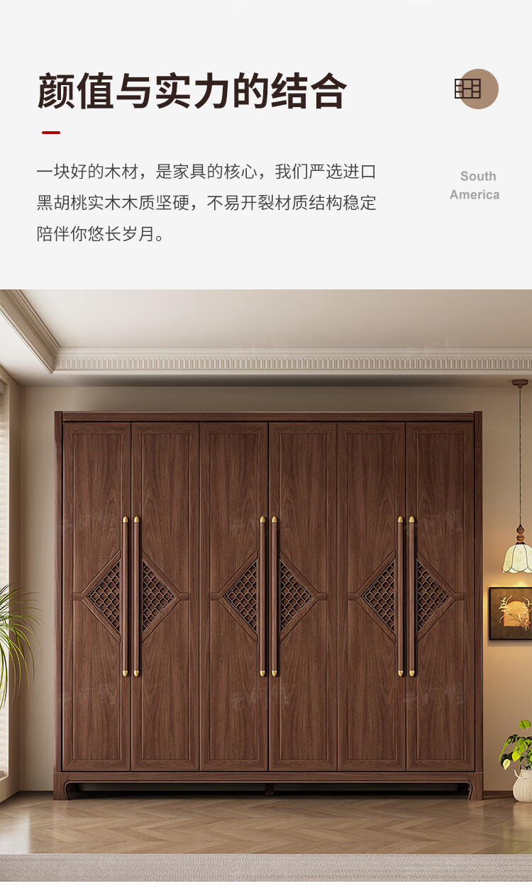 새로운 중국 스타일 옷장 작은 아파트 대용량 블랙 호두 풀 솔리드 우드 조합 마스터 침실 현대 간단한 가정 옷장