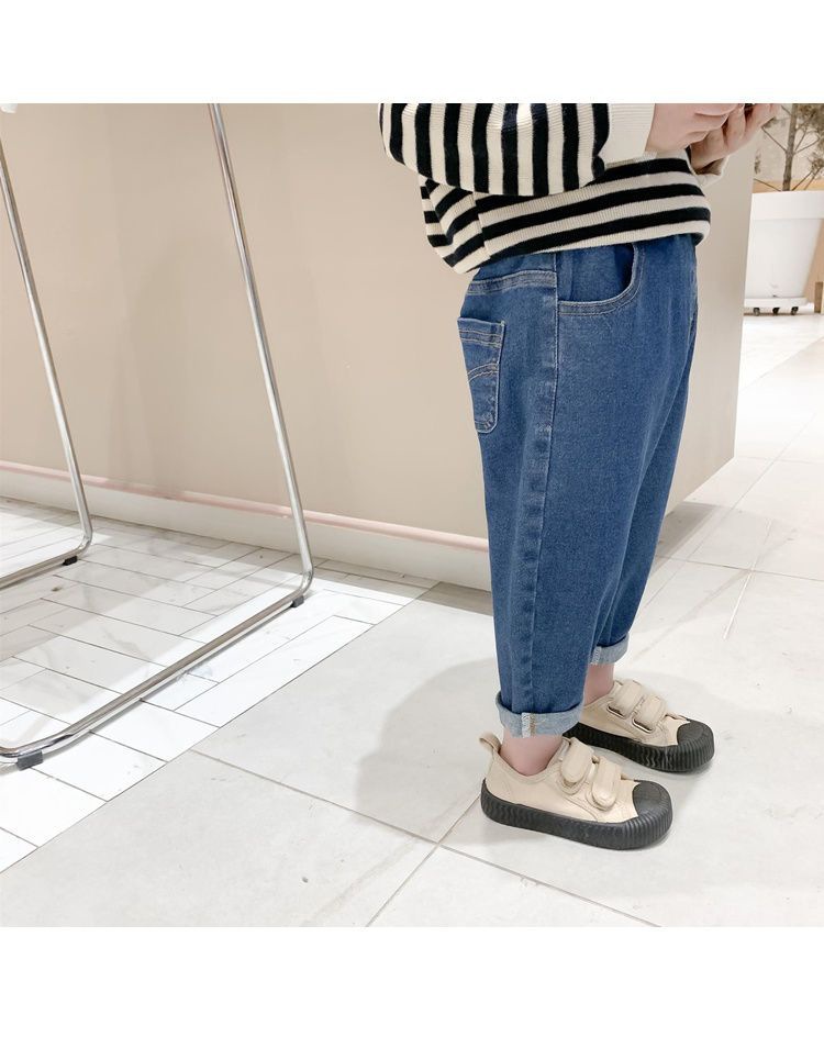 봄과 가을 남녀 아동복 청바지 아기 서양식 어린이 맞춤형 트렌디 브랜드 한국 스타일 유행 레트로 인터넷 연예인 아빠 바지스토어 가기