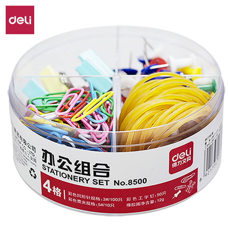 델리 8500 사무실 조합 세트 컬러 사무용품 I-네일 티켓 클립 종이 클립 고무 밴드 고무 밴드스토어 가기