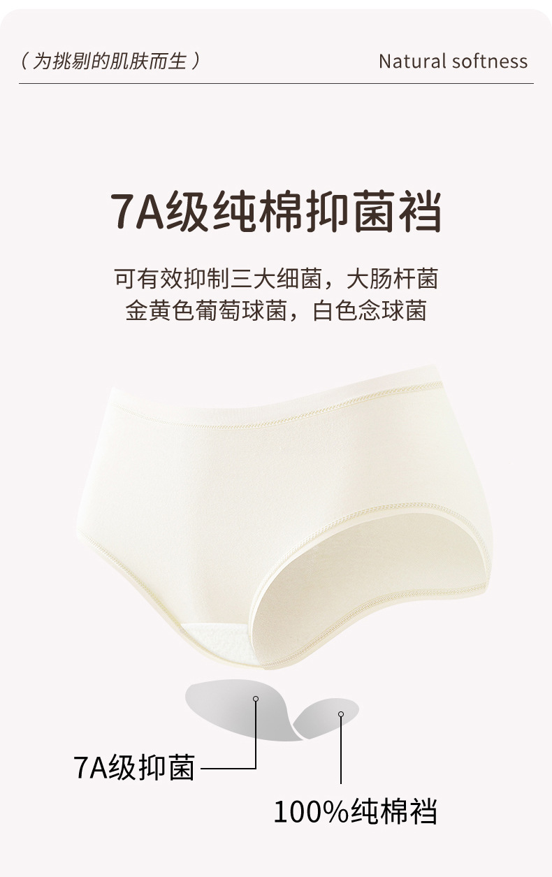 OEM 라이트 커스텀 50수 7A 항균 여성용 순면 속옷 여아용 미드 웨이스트 코튼 가랑이 이음매없는 팬티 반바지