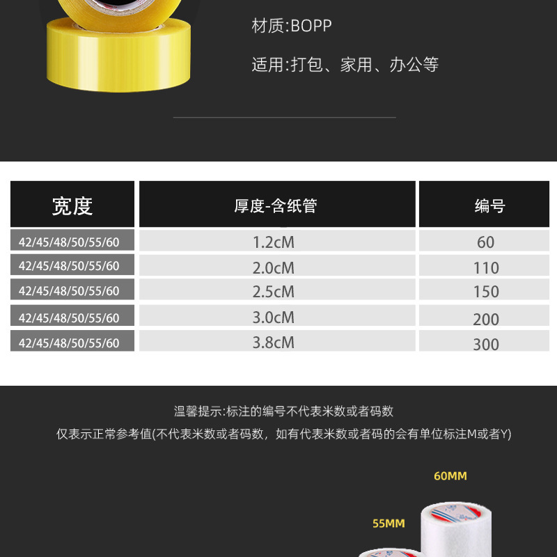 • 투명 흰색* 테이프 [상자 전체를 가져가고 상자 실러를 받으세요], 폭 6cm, 두께 2cm, 길이 110 [상자 전체에 50롤]