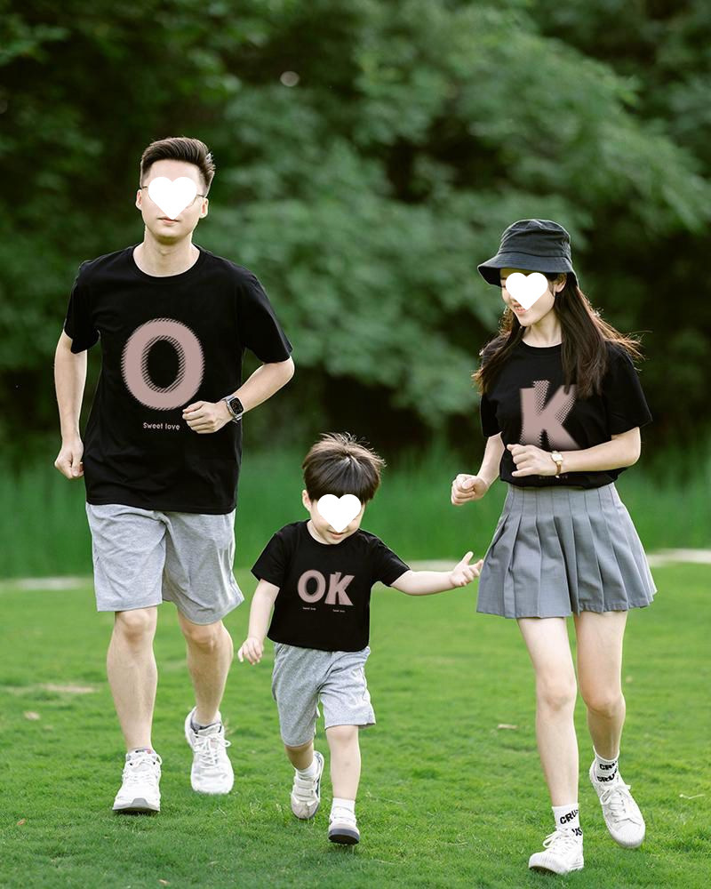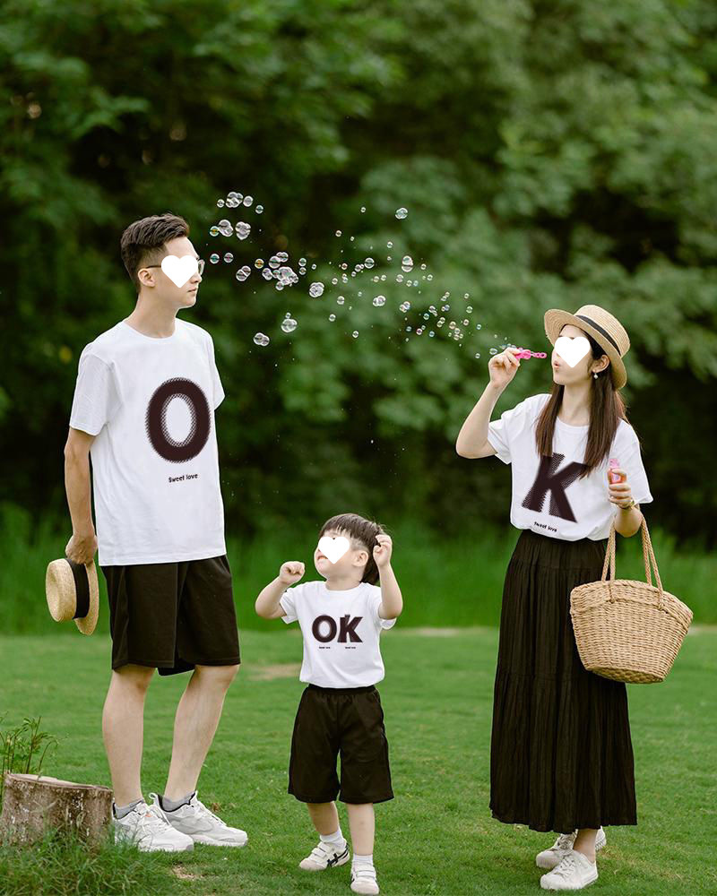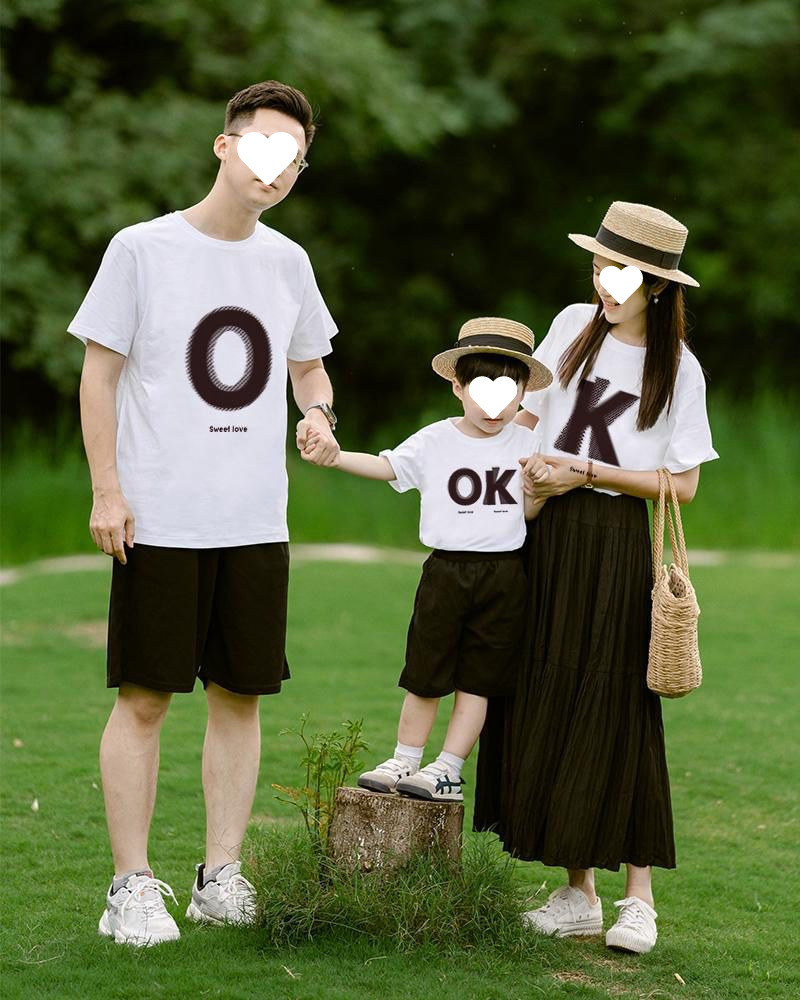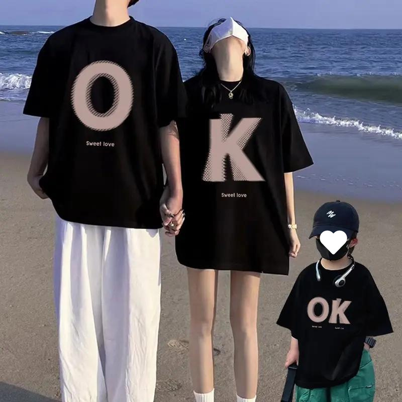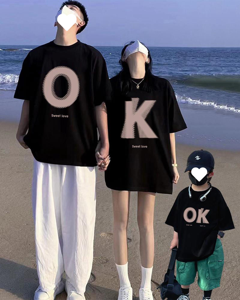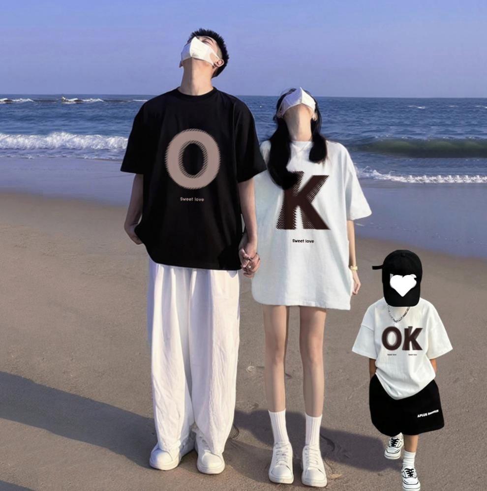 여름 한국식 온라인 유명 인사 부모-자식 의상 3 명과 4 명의 홍콩 스타일 연인 복장 반소매 여자 친구스토어 가기