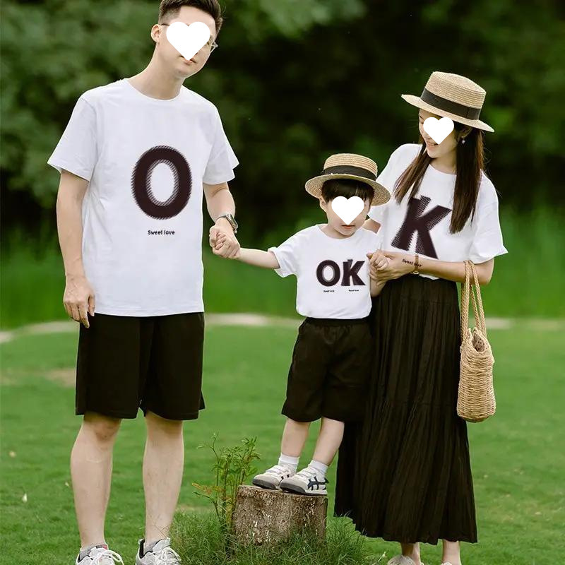 여름 한국식 온라인 유명 인사 부모-자식 의상 3 명과 4 명의 홍콩 스타일 연인 복장 반소매 여자 친구