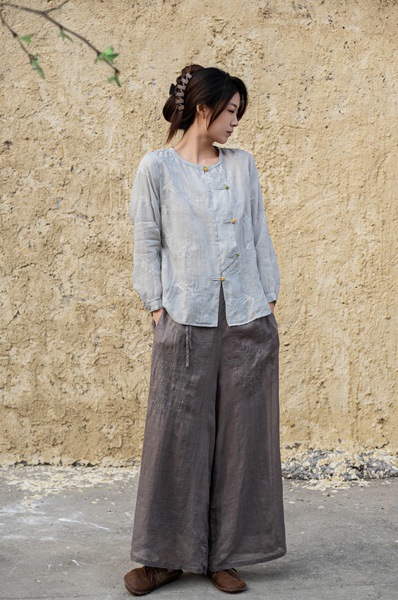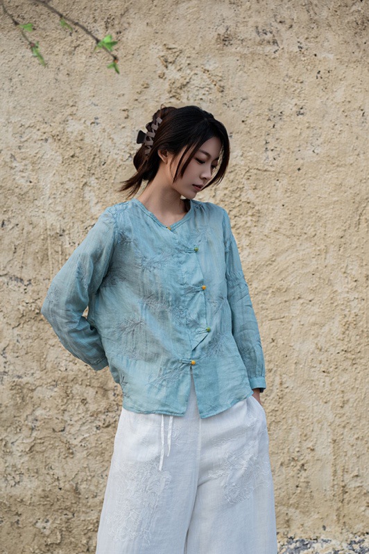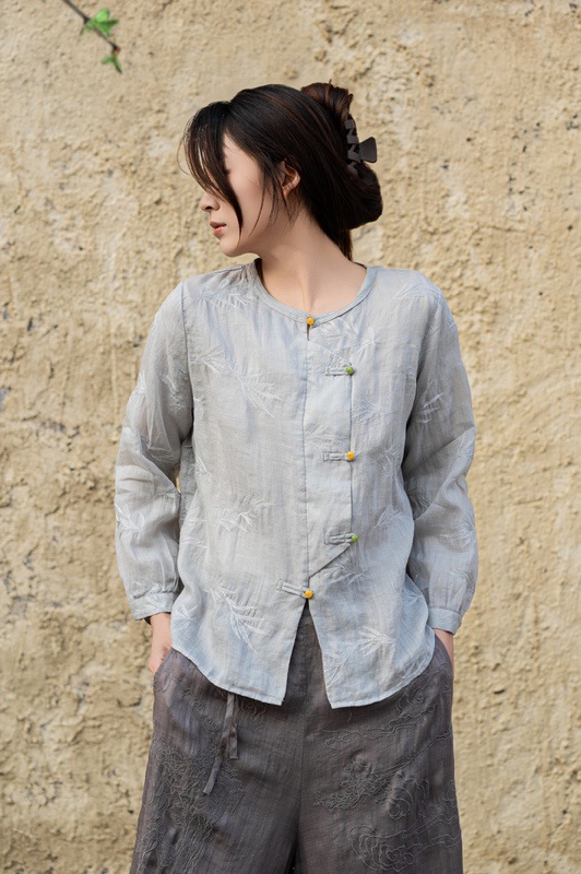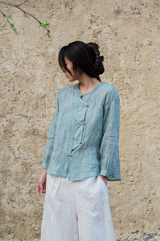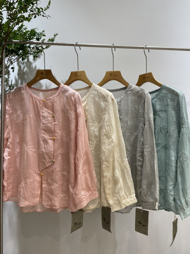중공업 전체 자수 크루 넥 컬러 버튼 셔츠 여성의 2025 봄 예술 레트로 느슨한 슬리밍 올 매치 셔츠스토어 가기