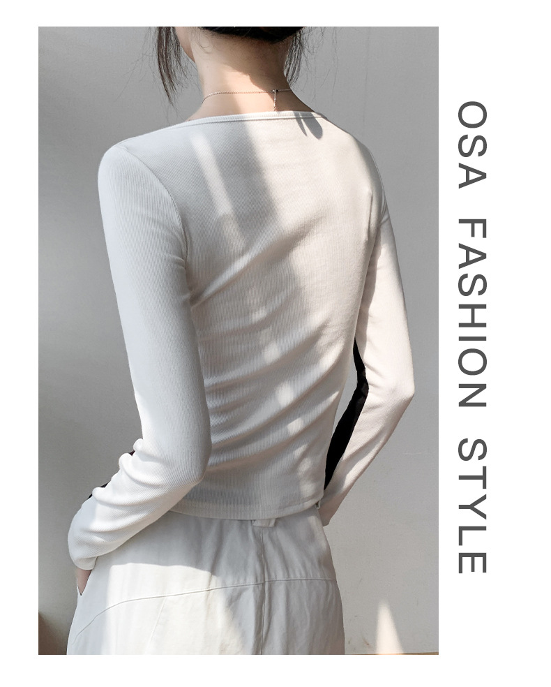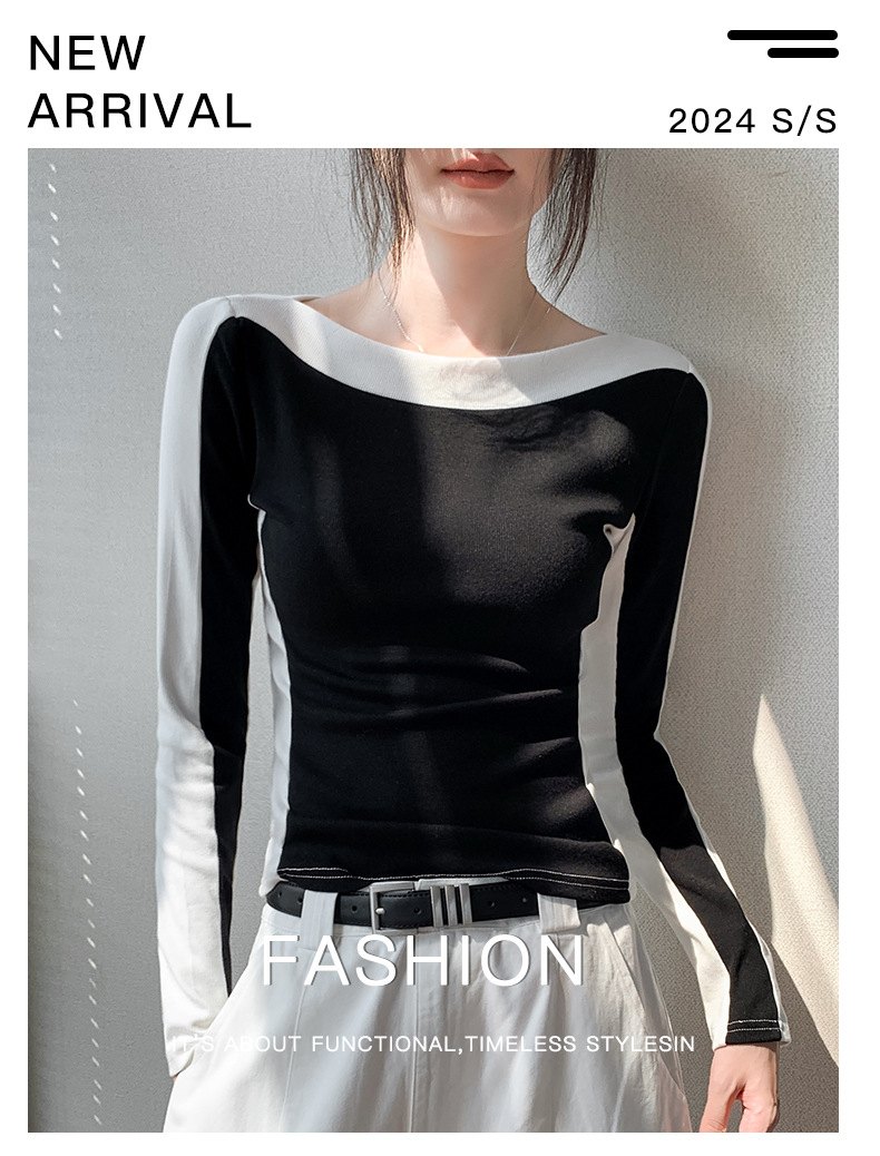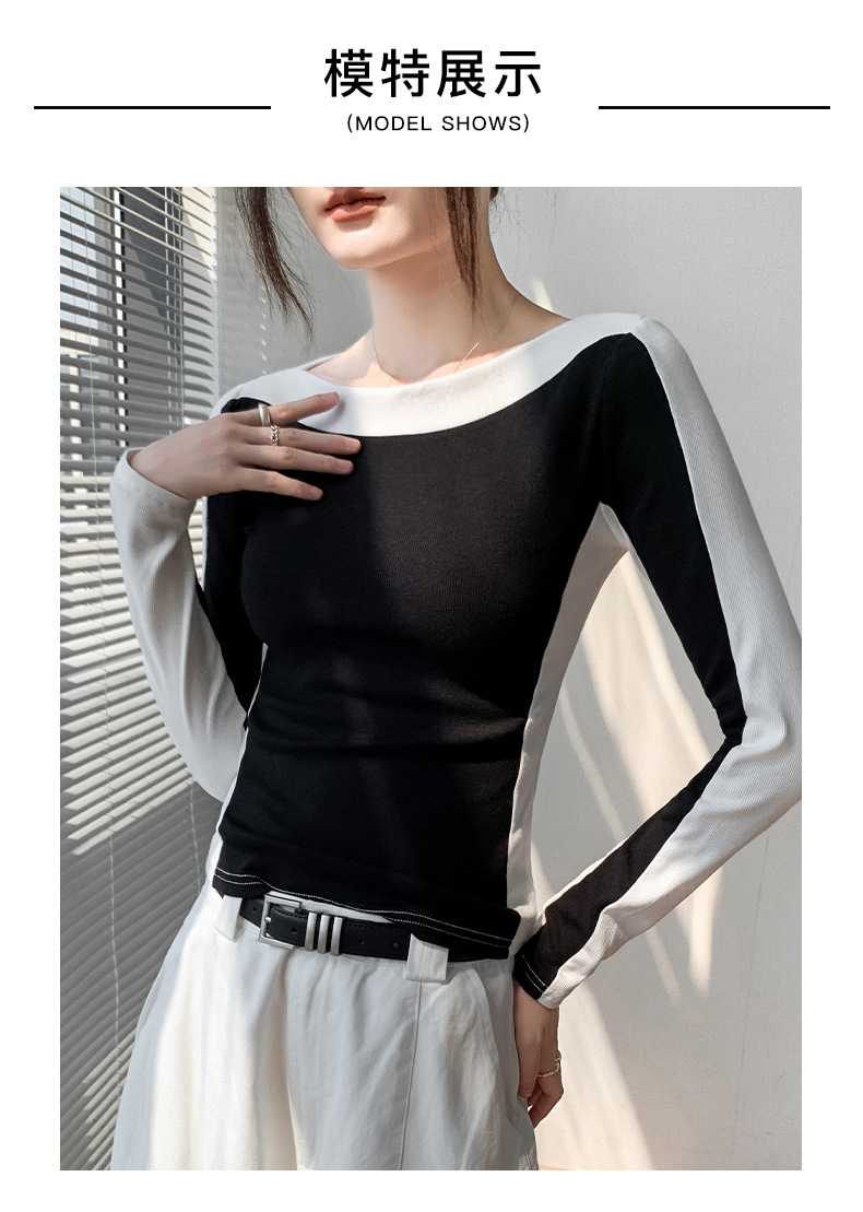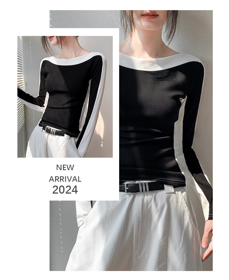 한 단어 칼라 2024 초가을 새로운 슬림베이스탑이있는 여성용 하이 엔드 긴팔 티셔츠스토어 가기