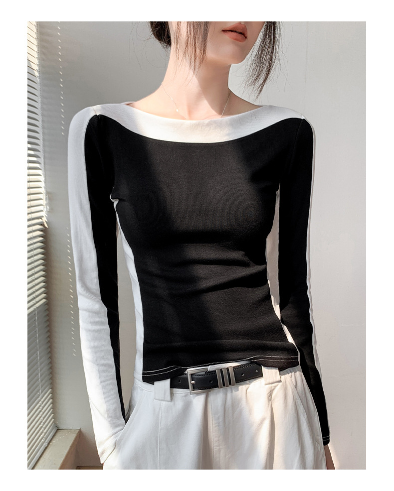 한 단어 칼라 2024 초가을 새로운 슬림베이스탑이있는 여성용 하이 엔드 긴팔 티셔츠