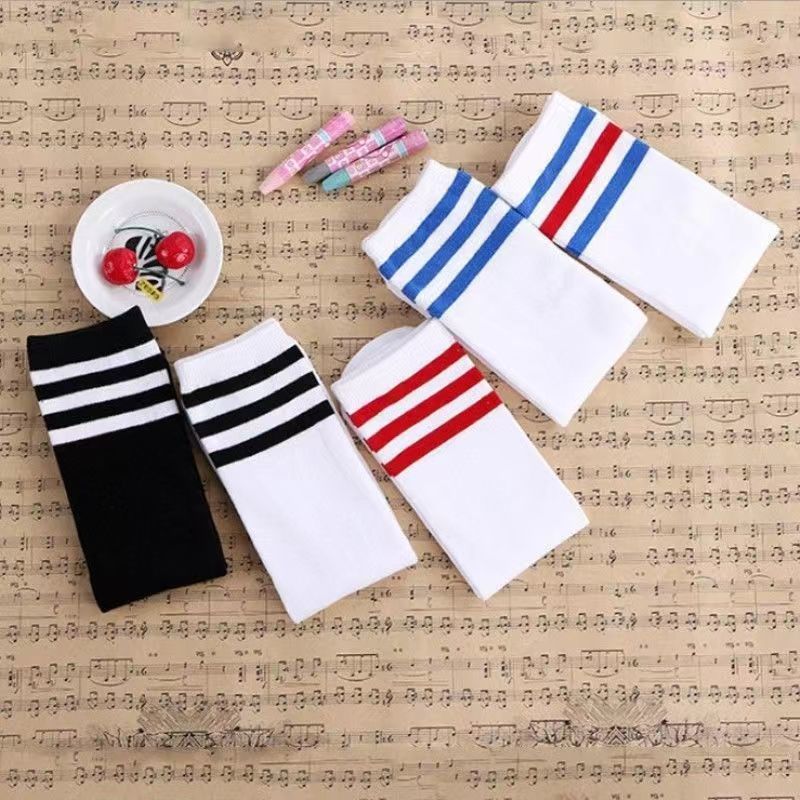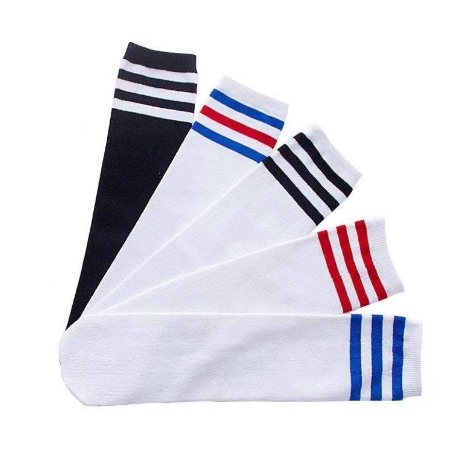 어린이 스타킹 여름 소년 소녀를위한 얇은 중간 튜브 양말이지만 무릎 중간 튜브 양말 줄무늬 흰색 양말 성능 양말스토어 가기