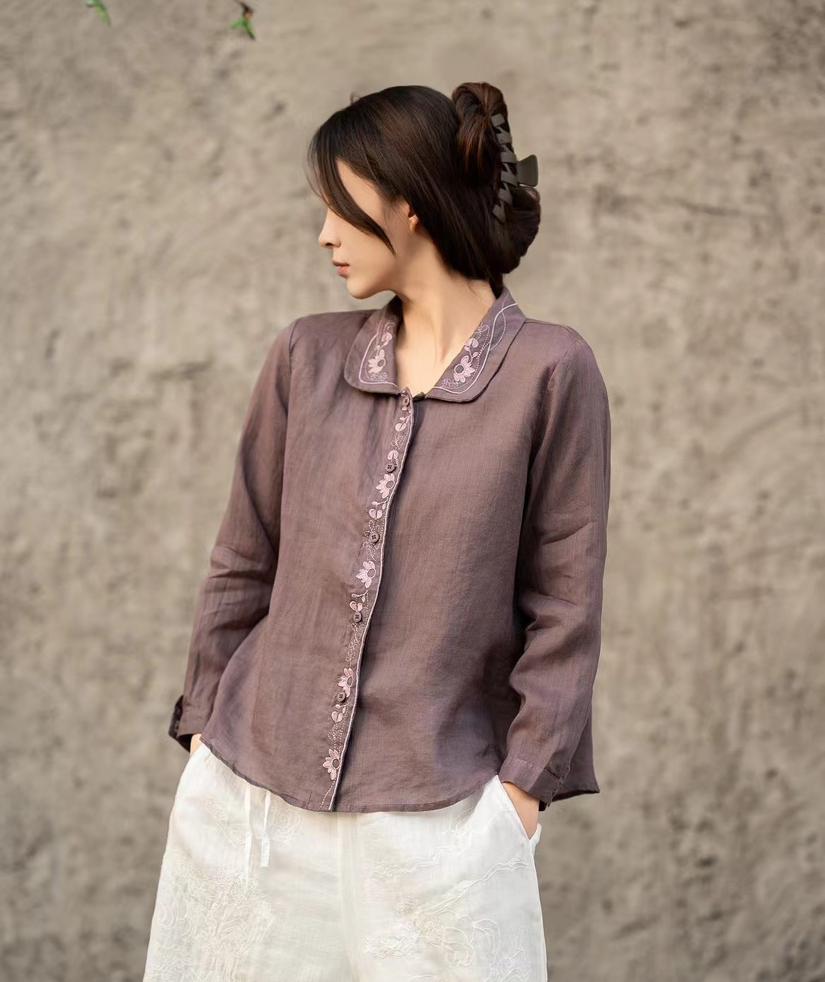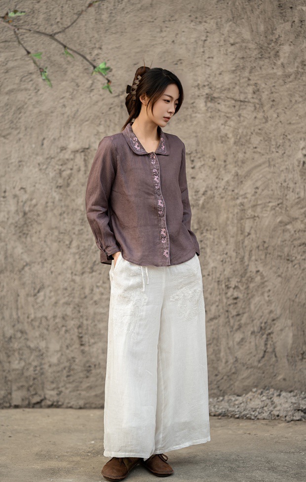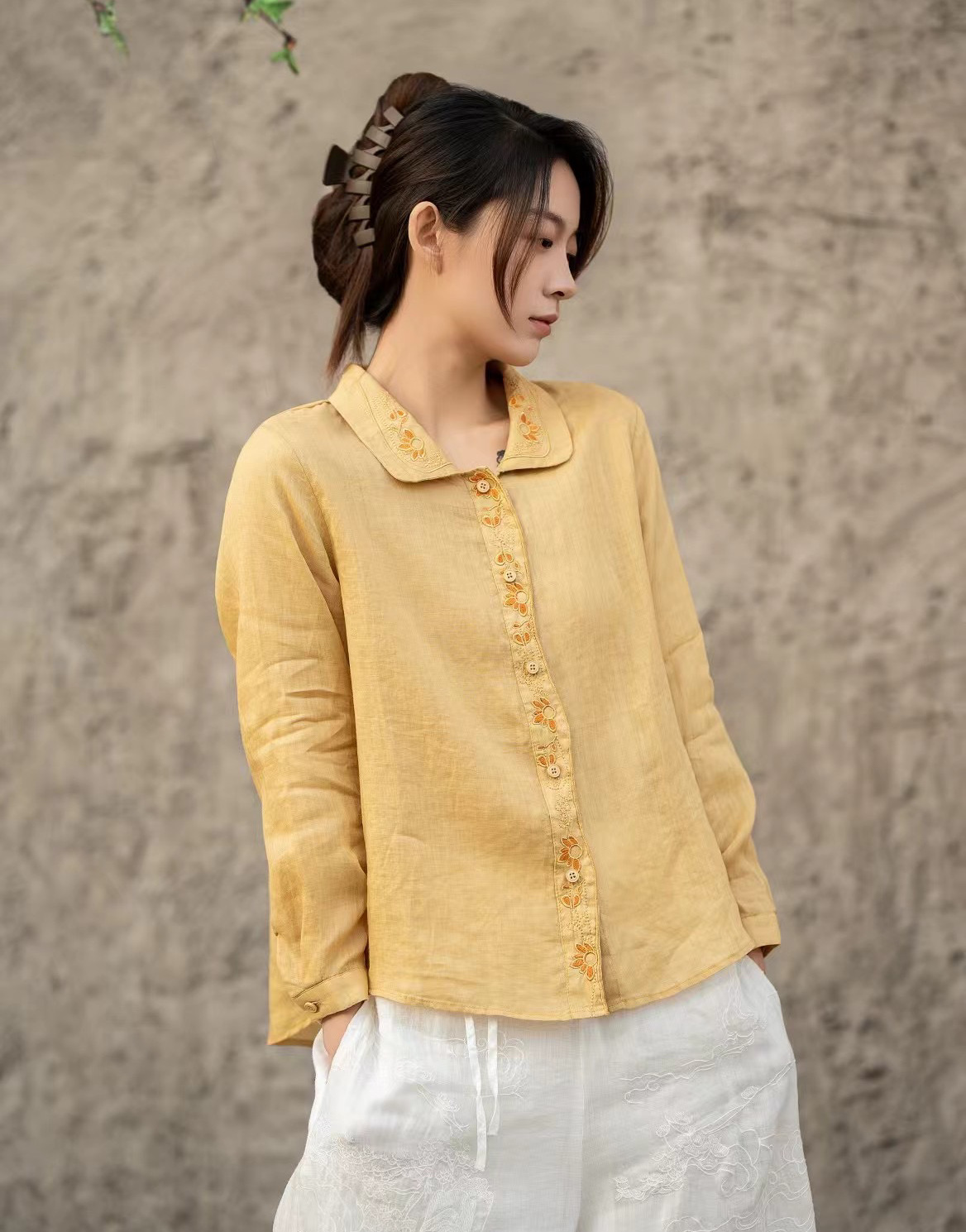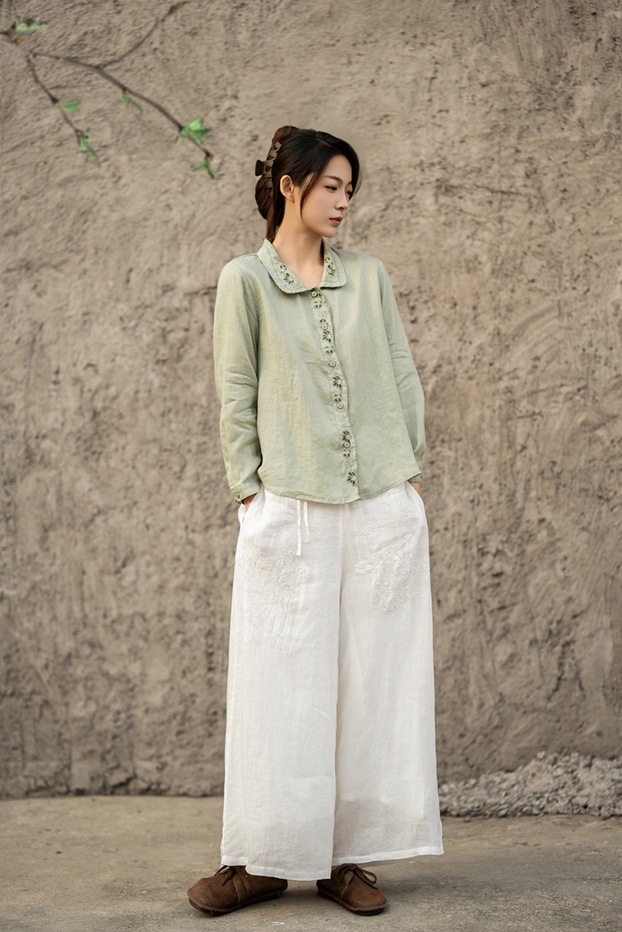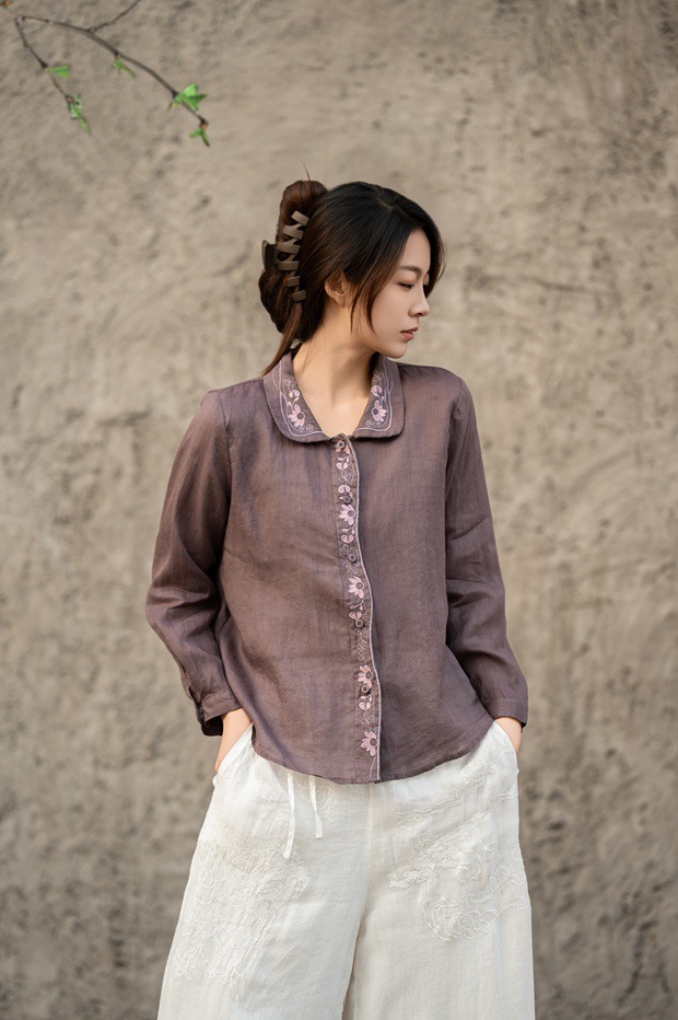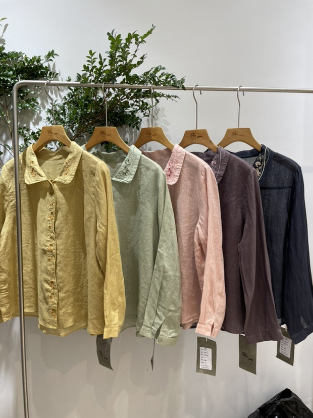 봄 2025 한국식 심플 루즈 슬림 자수 옷깃 긴팔 셔츠 여성을위한 올 매치 문학 스타일 셔츠스토어 가기