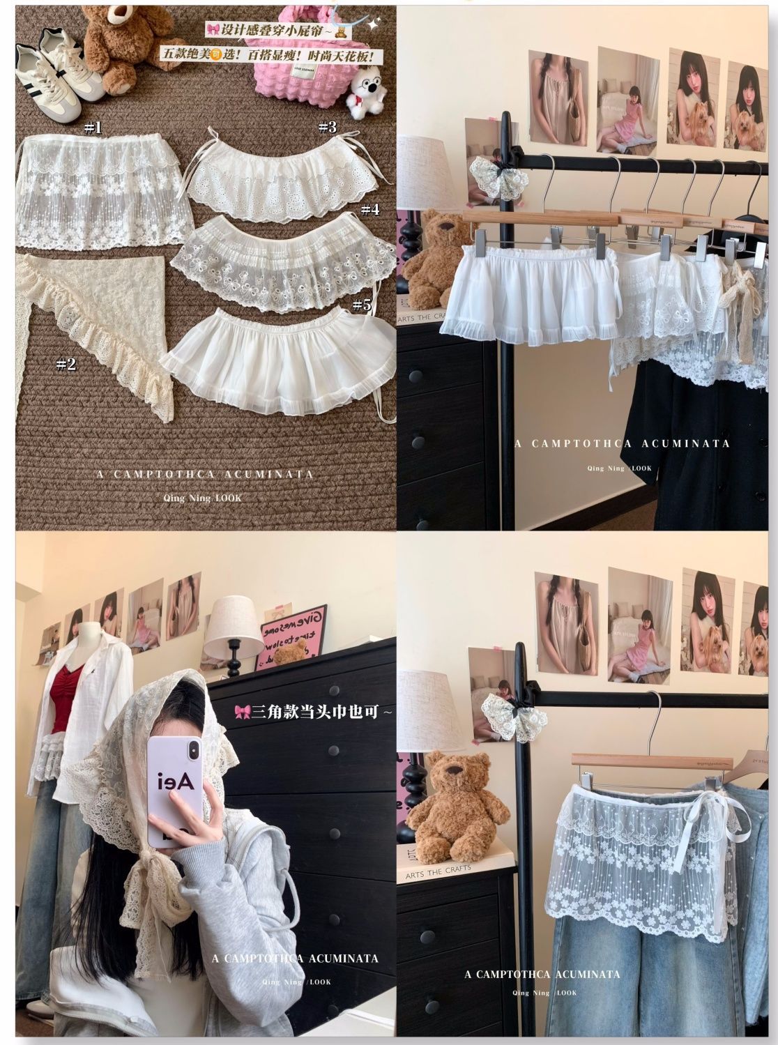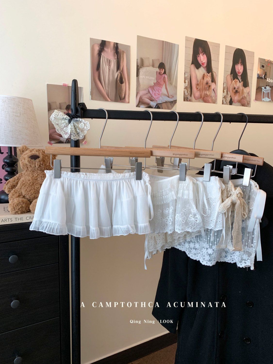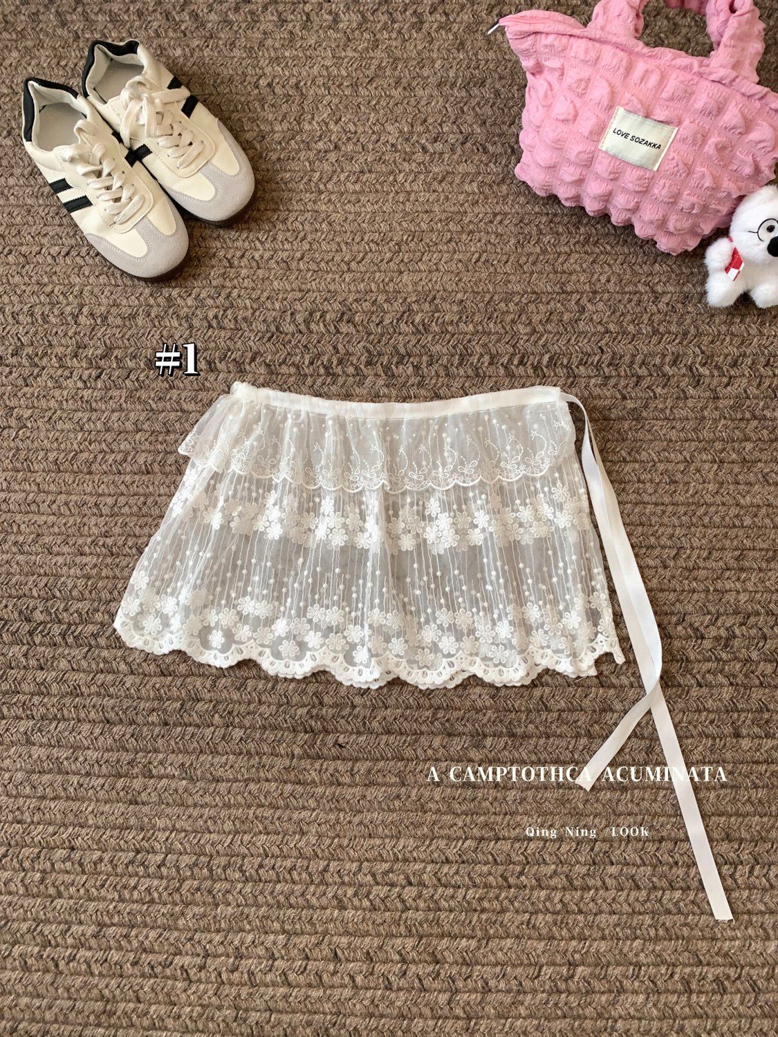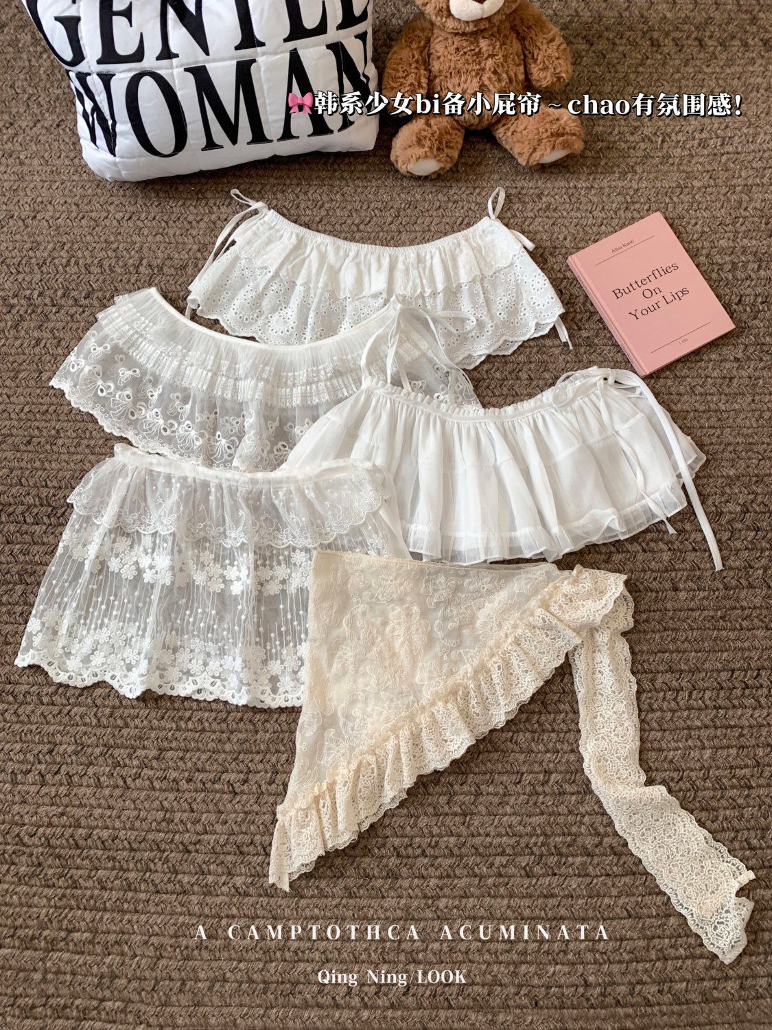 불규칙한 레이스 활 레이스 업 스커트 여성 봄 2025 러플 할로우 아웃 패션 커튼 트렌디 스커트스토어 가기
