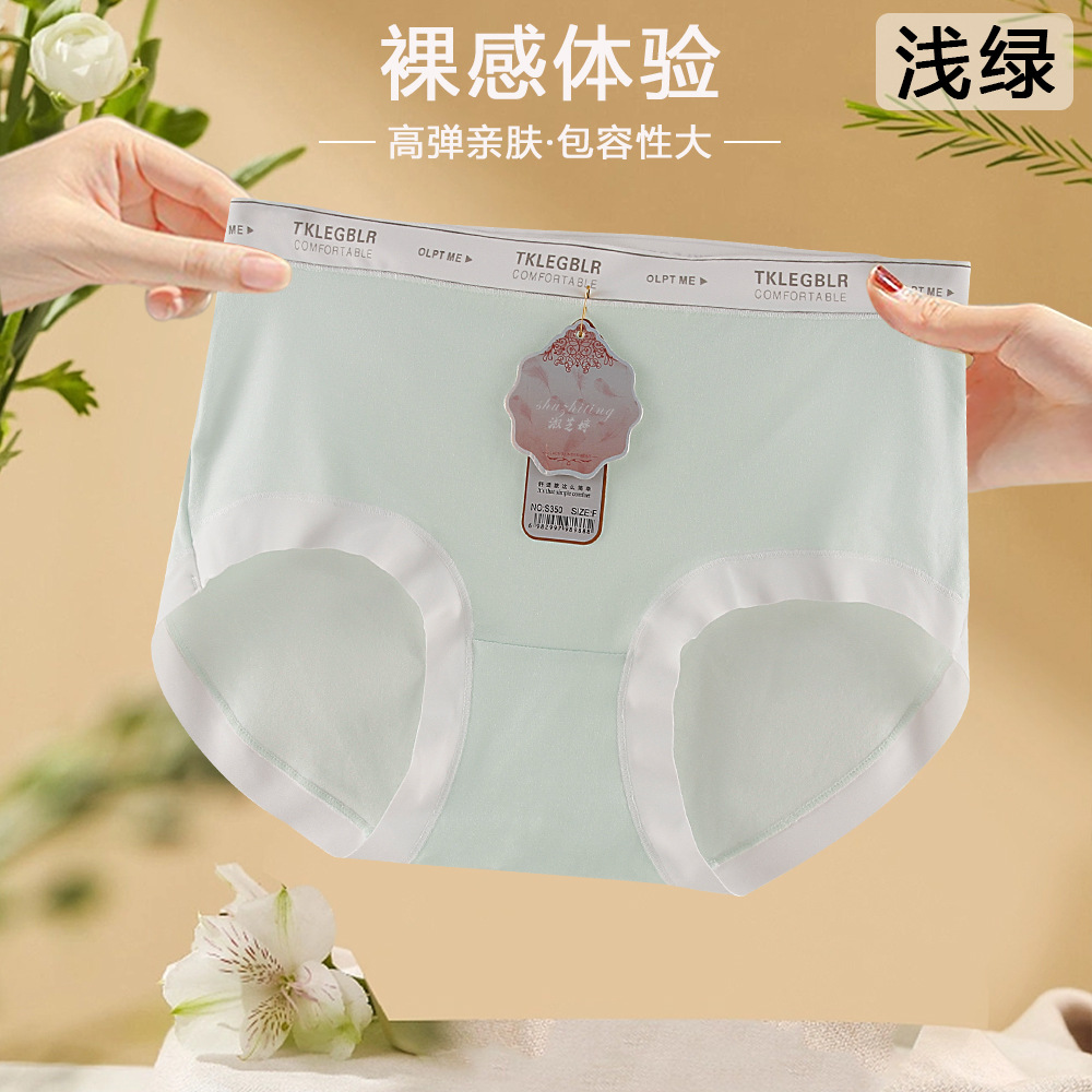여성 속옷 여성의 허리 통기성 더블 하단 프로필 브리프 2025 여름 편지 인쇄 허리 반바지 도매스토어 가기