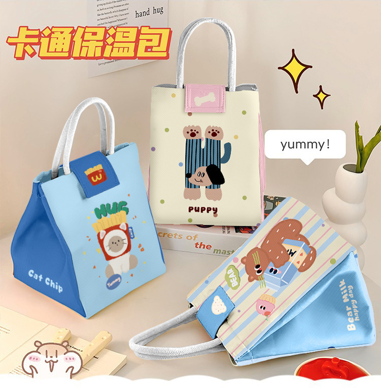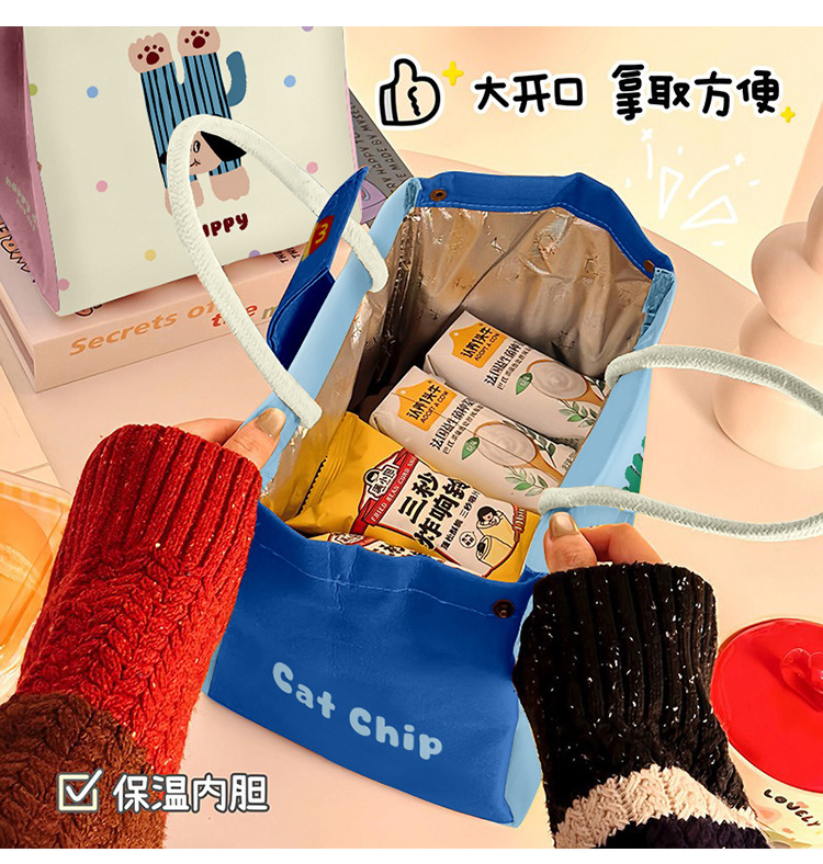 귀여운 절연 도시락 가방 학생 및 사무실 학생을위한 두꺼운 알루미늄 호일 핸드백 식사 팩 도시락 가방 가방스토어 가기