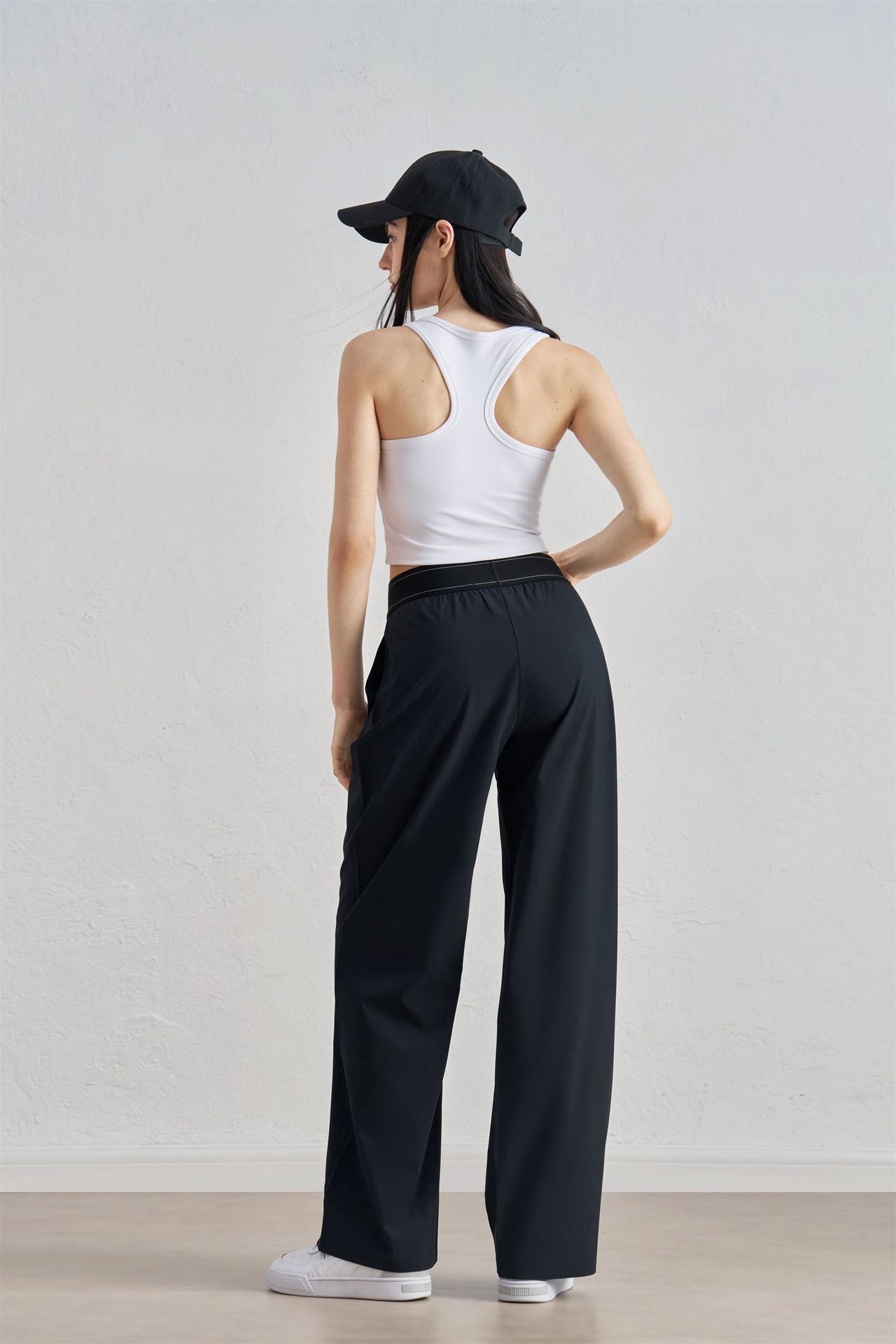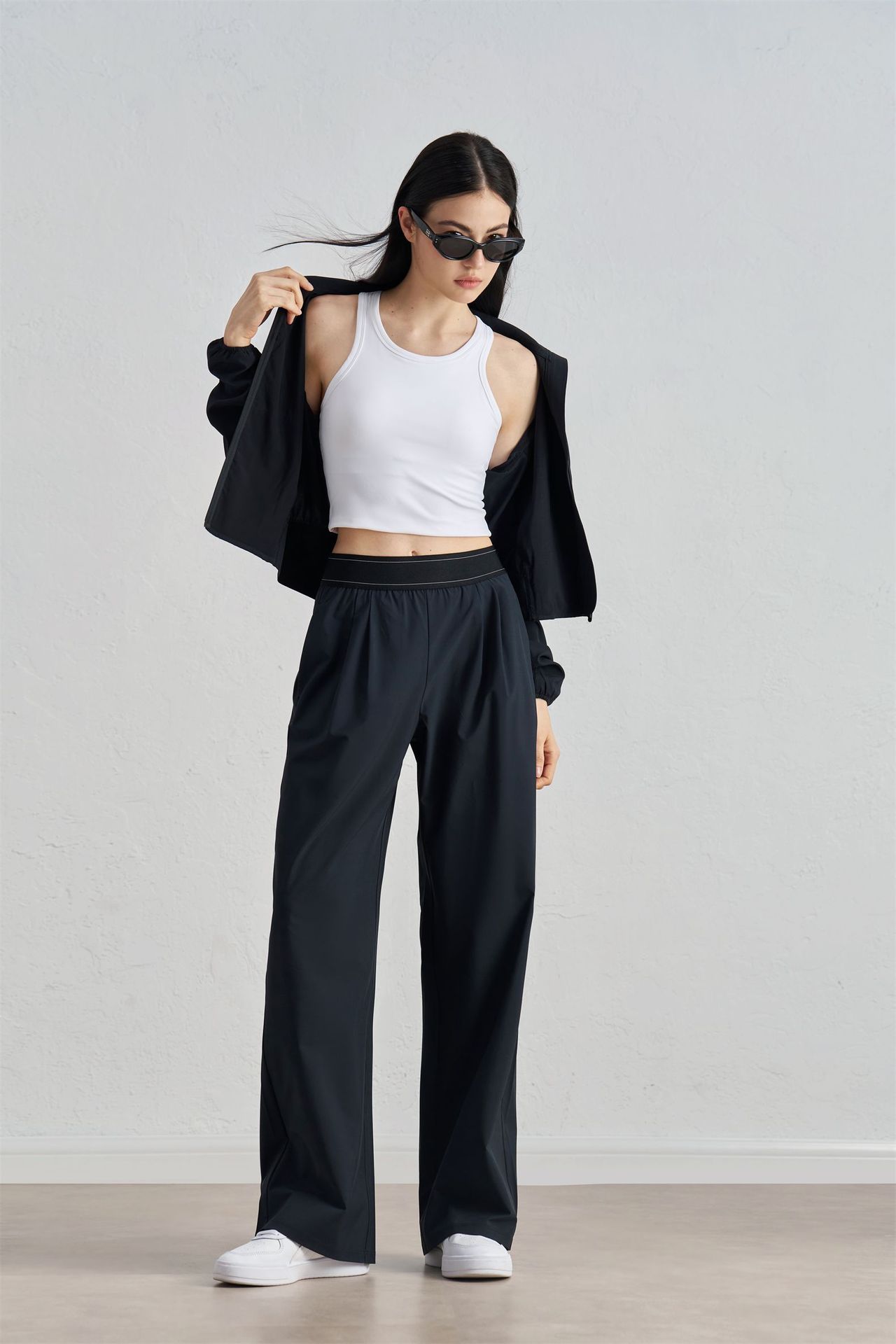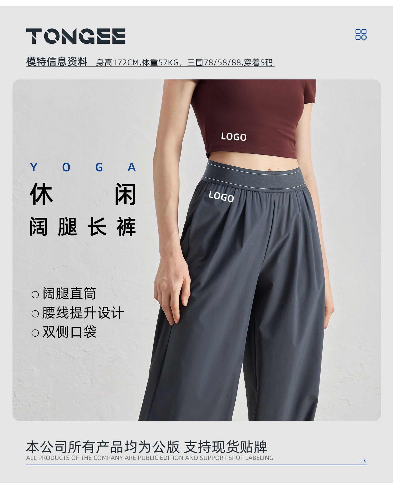 봄 통지 의류 스트레이트 짠 스트레이트 바지 여성용 느슨한 슬림 피트니스 바지 넓은 다리 캐주얼 바지