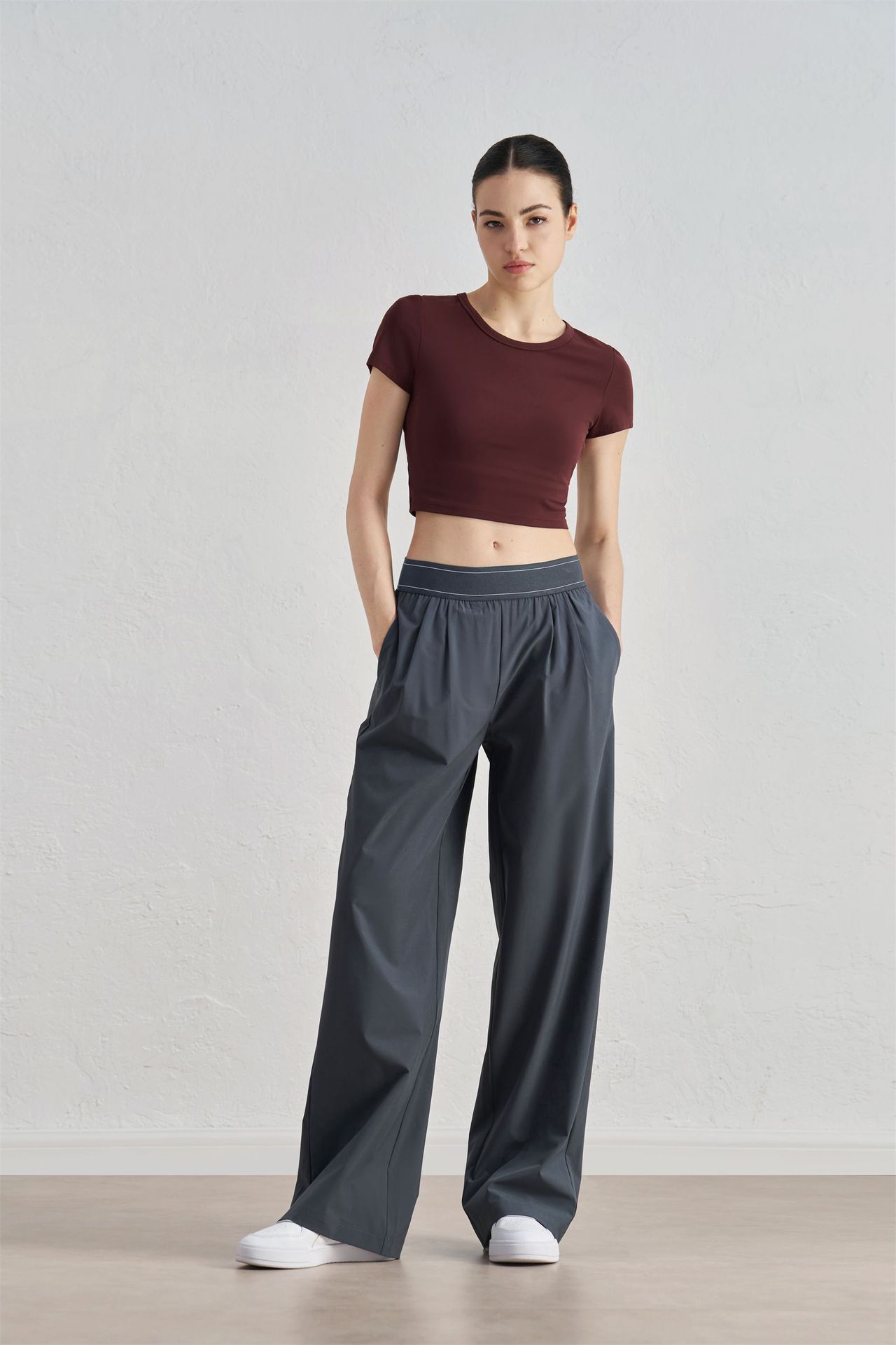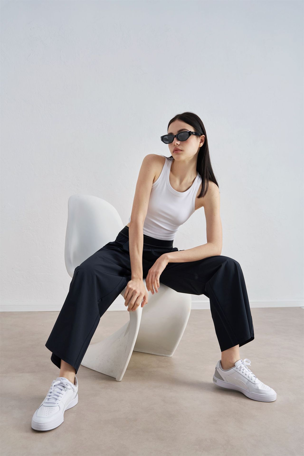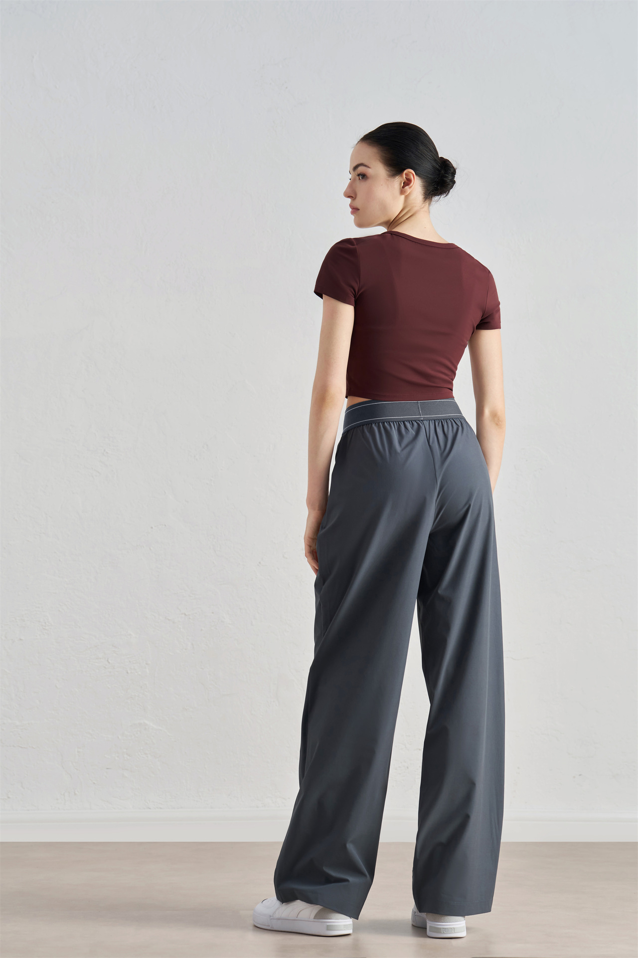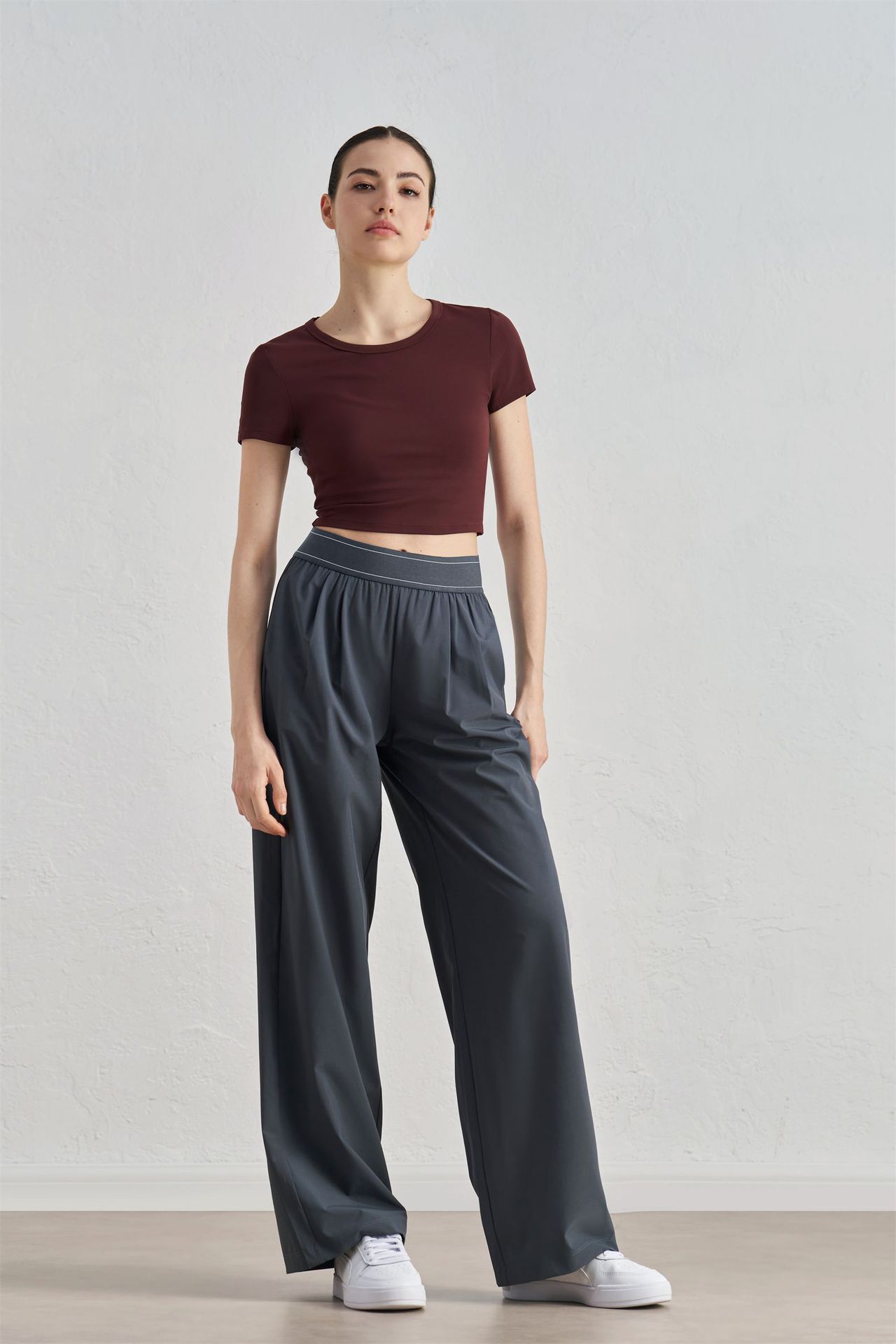 봄 통지 의류 스트레이트 짠 스트레이트 바지 여성용 느슨한 슬림 피트니스 바지 넓은 다리 캐주얼 바지