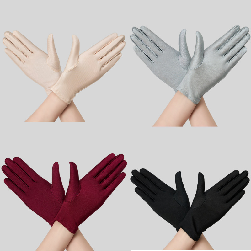 여름 장갑 얇은 자외선 차단제 스판덱스 봄과 가을 운전 단색 흑백 스트레치 여성 작동 에티켓 통기성