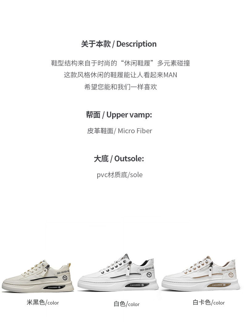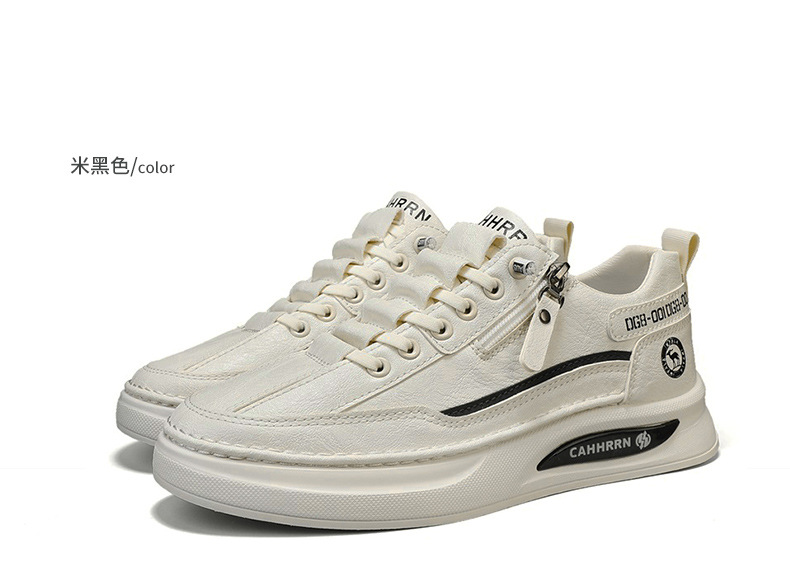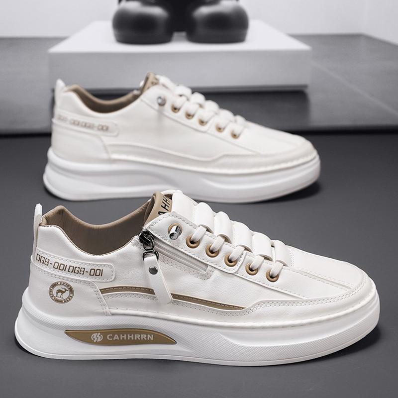 2025 봄 새로운 남성 보드 신발 지퍼 학생 흰색 신발 경량 편안한 착용 방지 캐주얼 신발