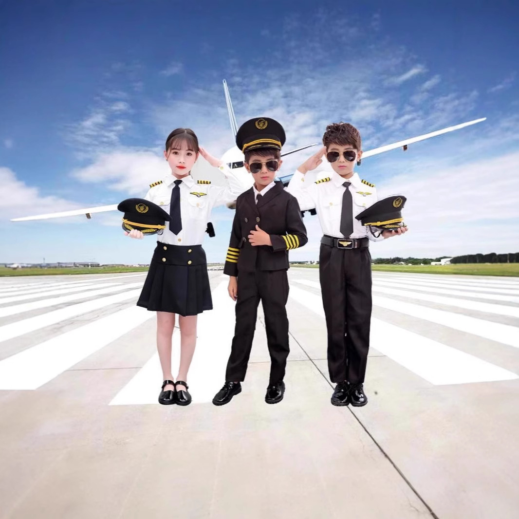 어린이 캡틴 유니폼 남성 스튜어디스 의상 여성 파일럿 세트 공연 테이블 공연 롤 플레잉 댄스 의상