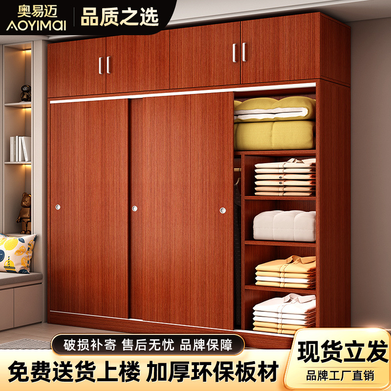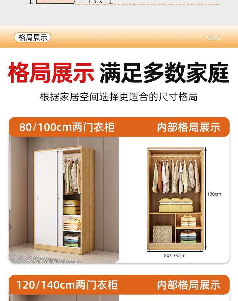 Aoyimai 슬라이딩 도어 옷장 홈 침실 간단한 조립 임대 옷장 경제적인 작은 나무 캐비닛 공장스토어 가기