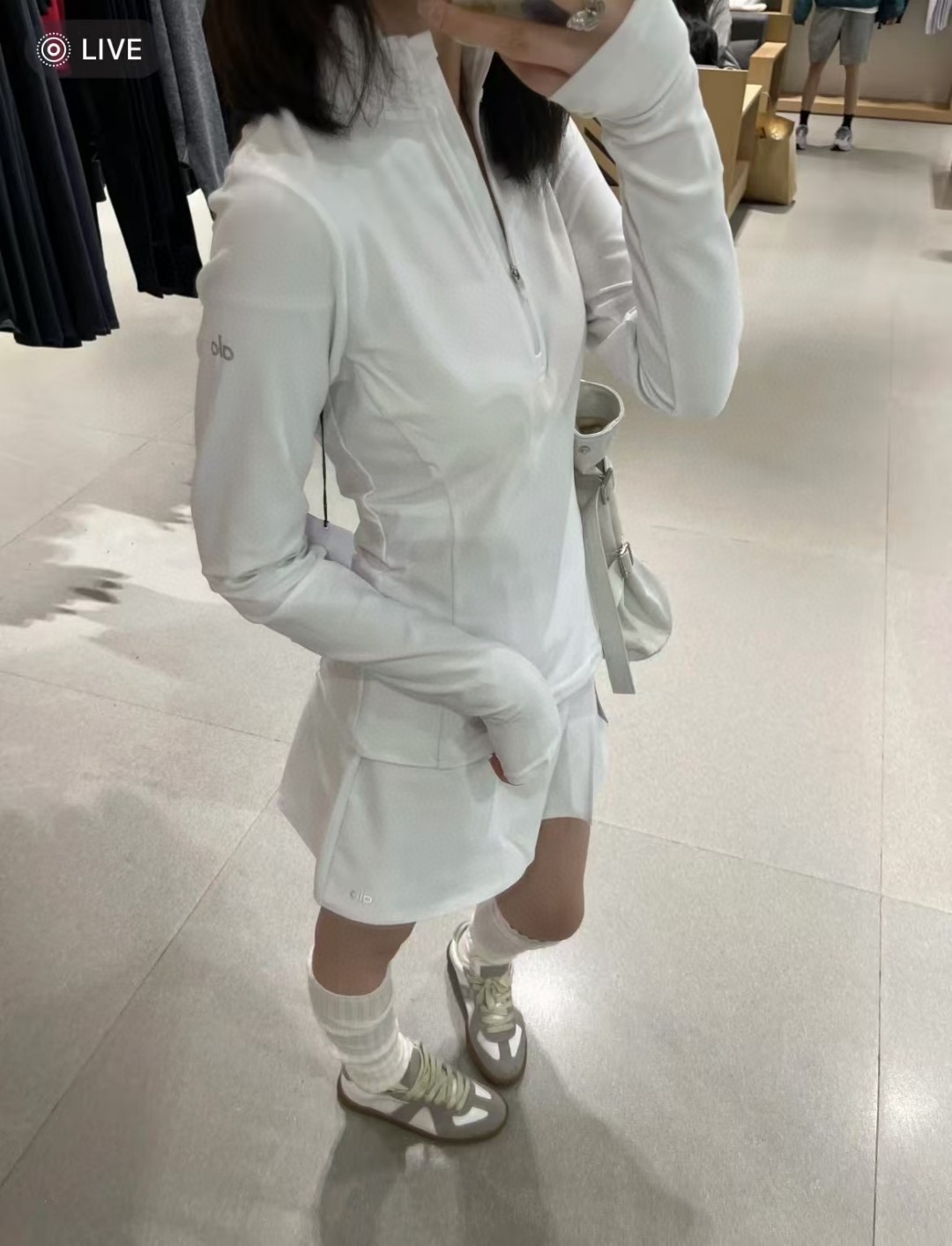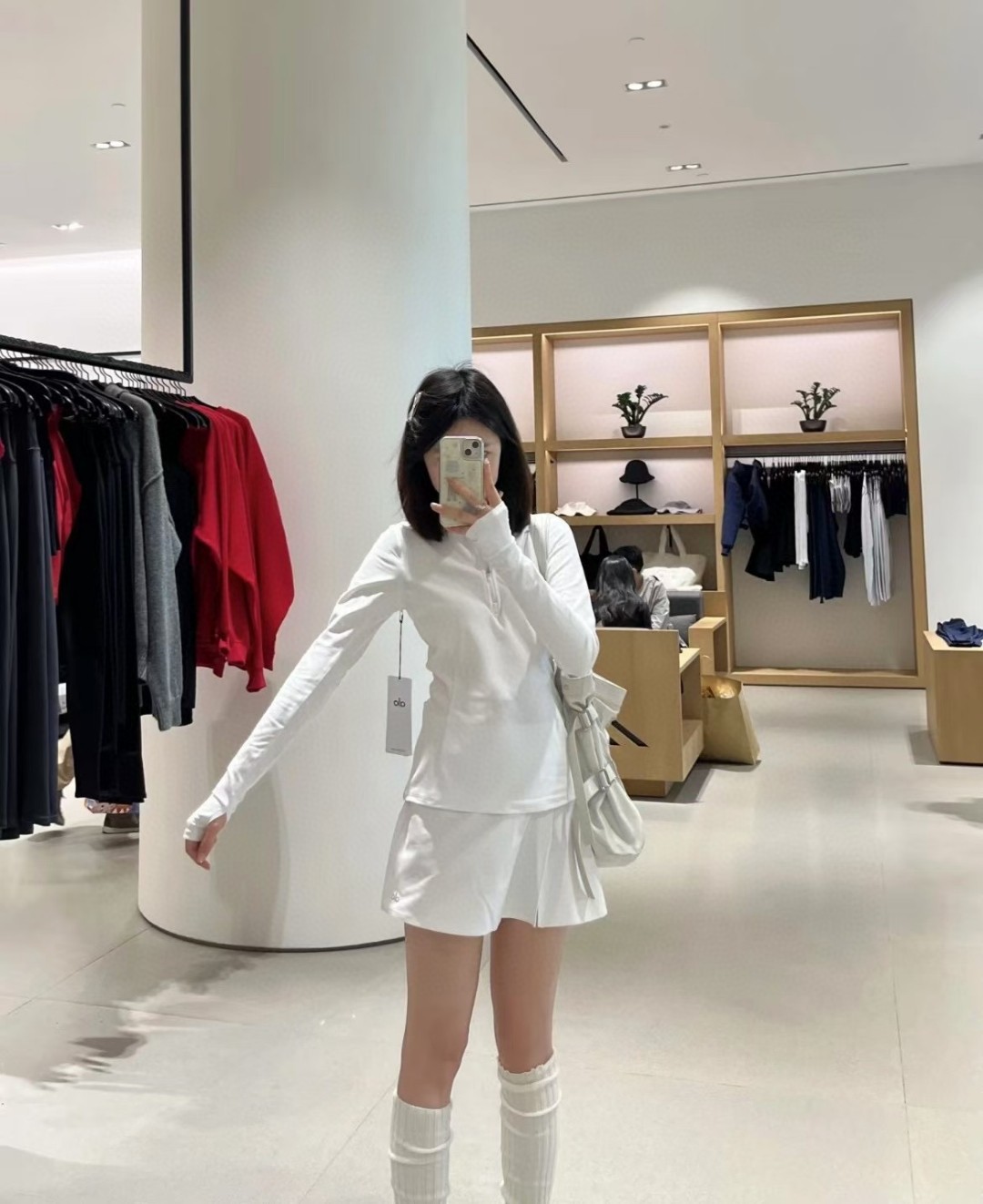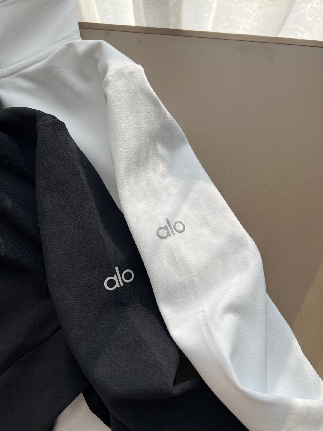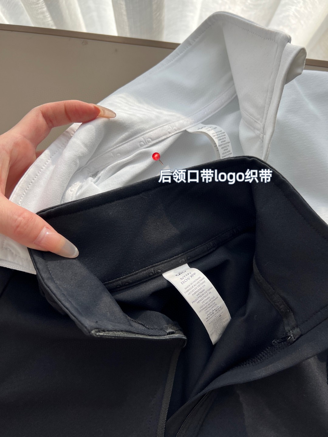 즉시 배송 가능한 알로 소매 라벨 소문자 프린트 반지퍼 스탠드 칼라 요가복 슬림핏 탑 재킷 긴팔 여성용스토어 가기