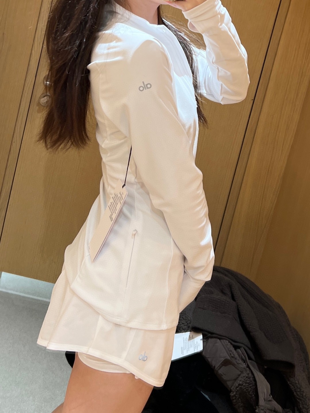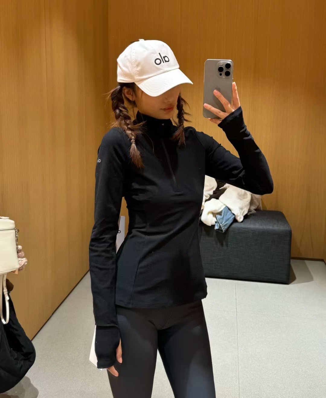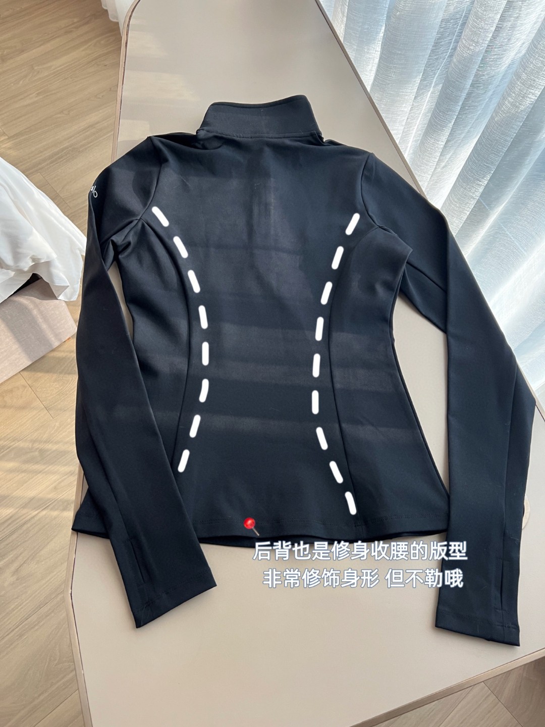즉시 배송 가능한 알로 소매 라벨 소문자 프린트 반지퍼 스탠드 칼라 요가복 슬림핏 탑 재킷 긴팔 여성용