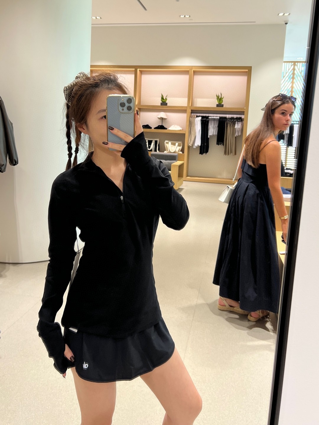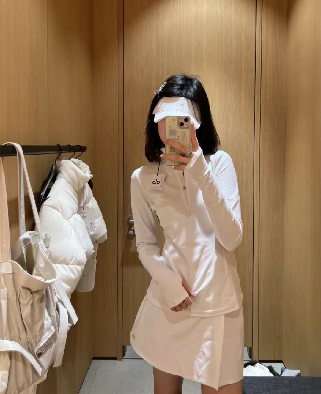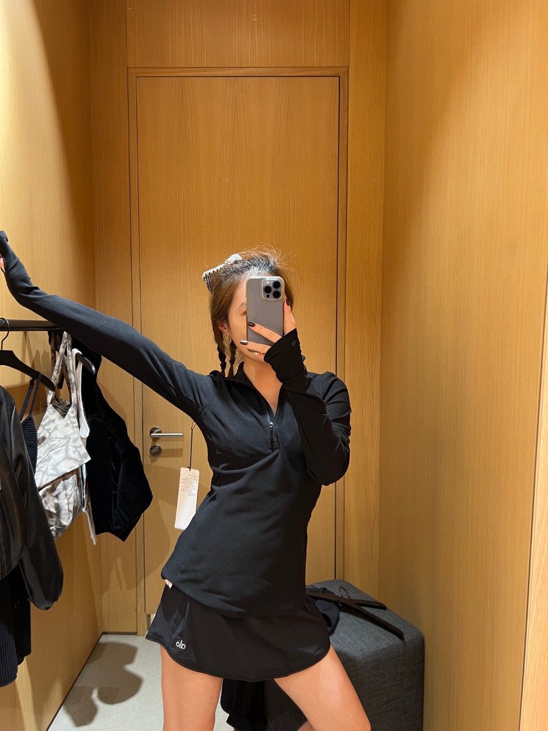 즉시 배송 가능한 알로 소매 라벨 소문자 프린트 반지퍼 스탠드 칼라 요가복 슬림핏 탑 재킷 긴팔 여성용