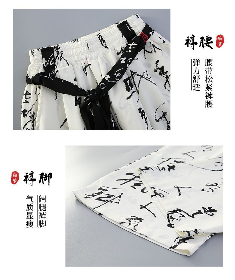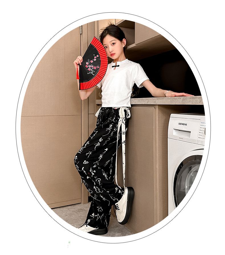 소녀 여름 쉬폰 투피스 세트 2024 새로운 스타일 여름 얇은 잉크 페인팅 세트 중 큰 어린이 캐주얼 투피스 세트스토어 가기