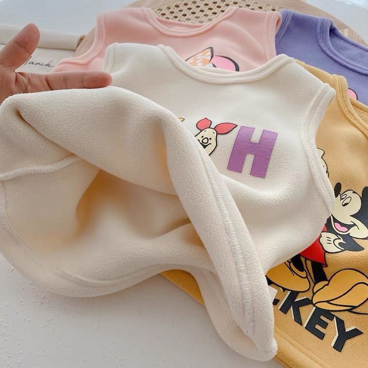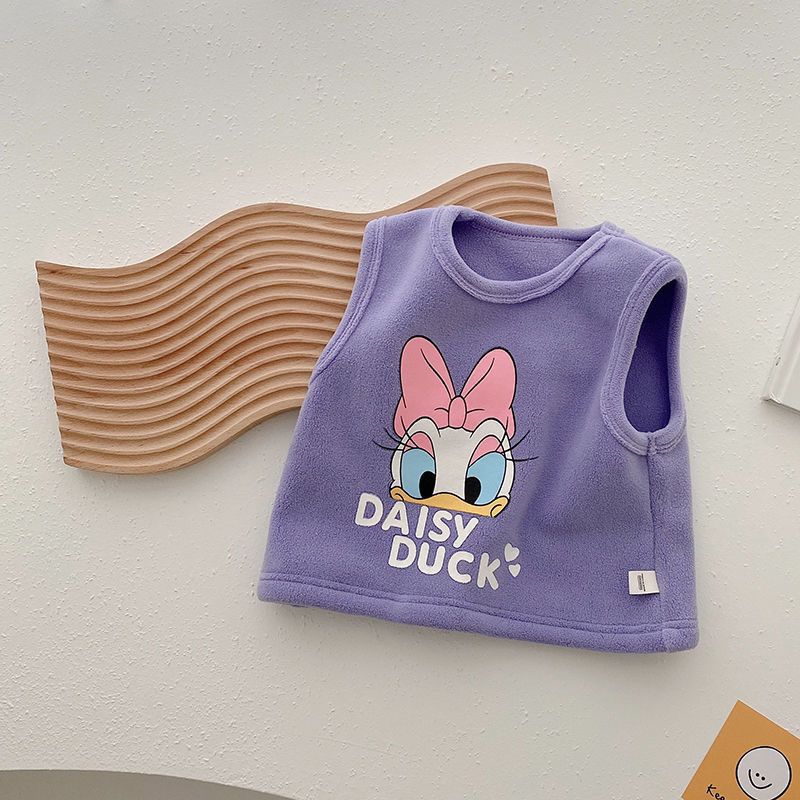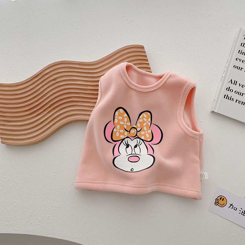 소년 기모 조끼 2024 가을과 겨울 여성의 아기 외국인 스타일 어린이 만화 따뜻한 조끼 어린이 자켓