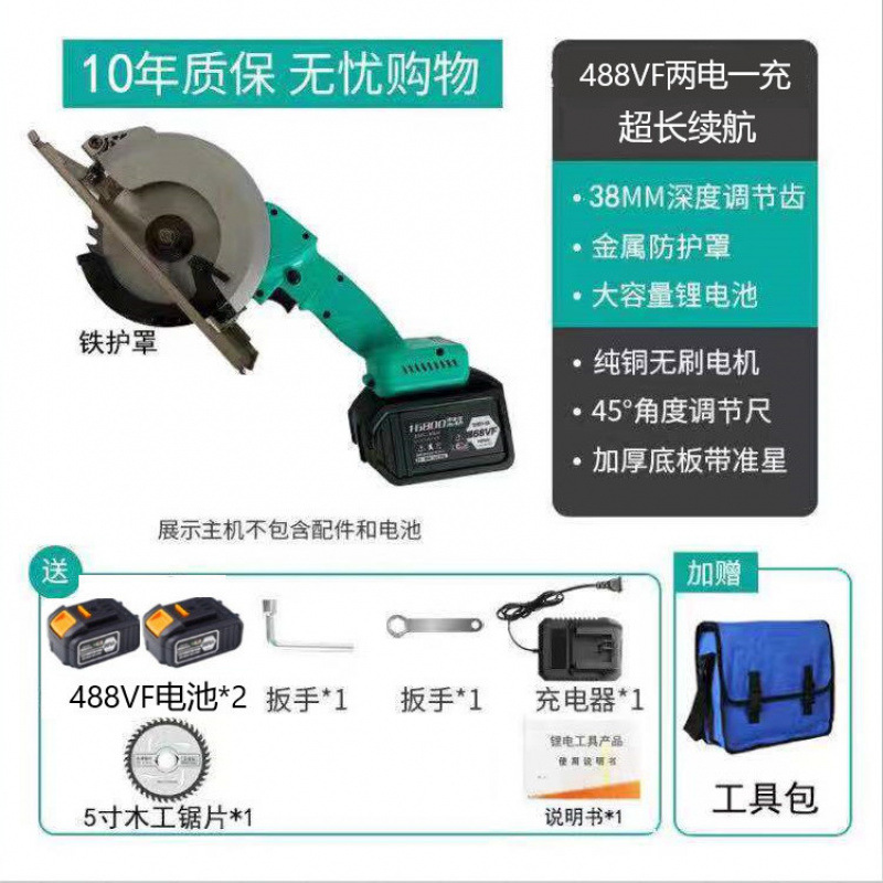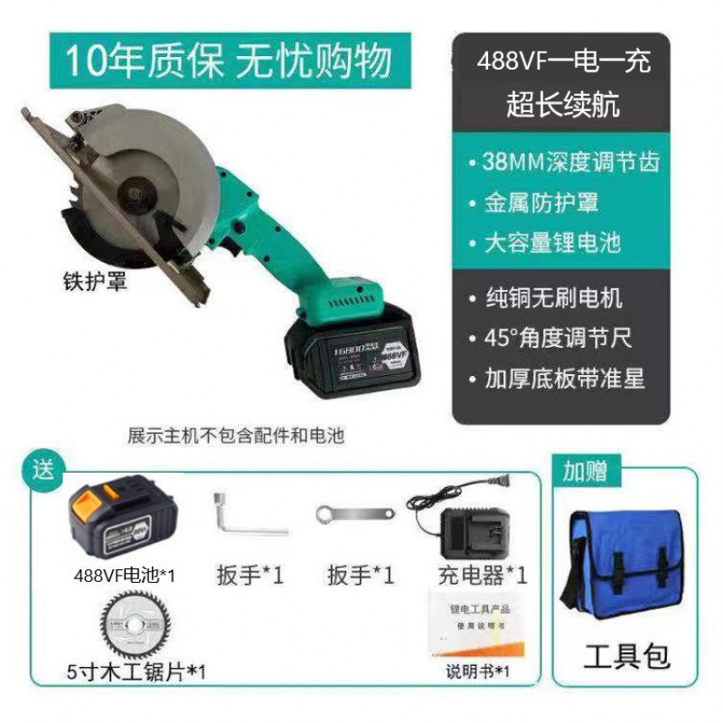 • 5인치 1900W 전기톱 488V, 1회 충전 및 1회 충전
