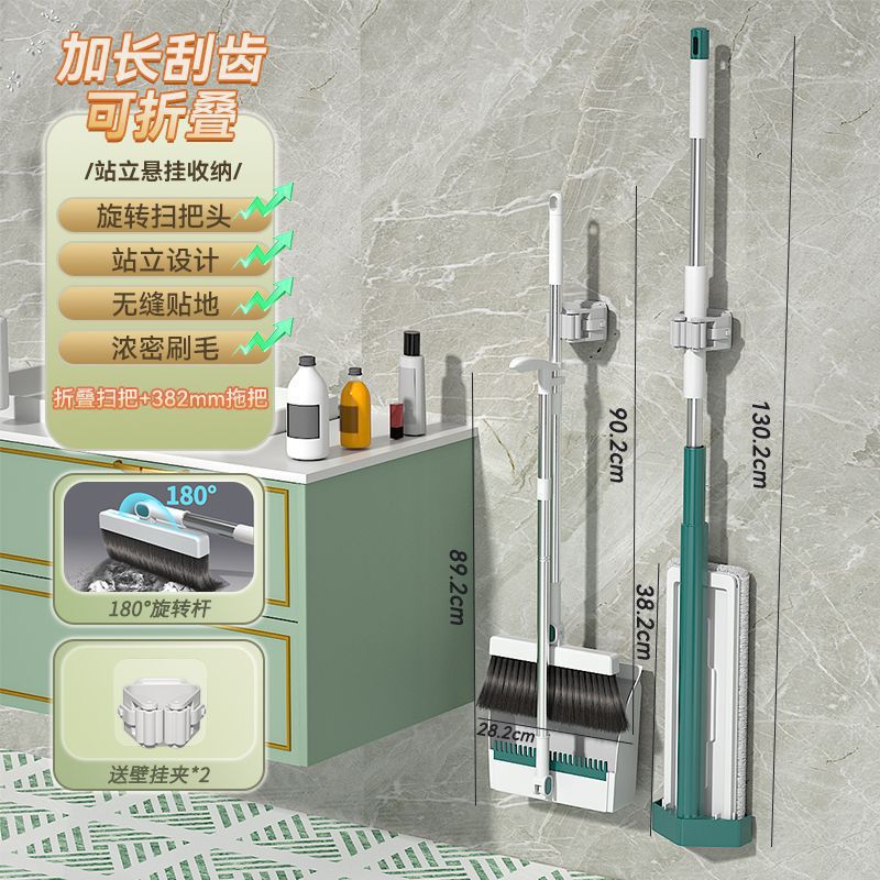 벽 장착 빗자루 걸레 3 피스 세트 가정용 핸드 프리 평면 패널 접이식 더스트 팬 조합 세트 벽 장착 빗자루 걸레스토어 가기