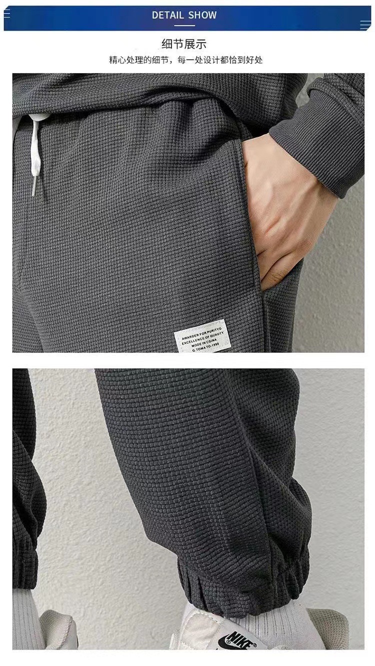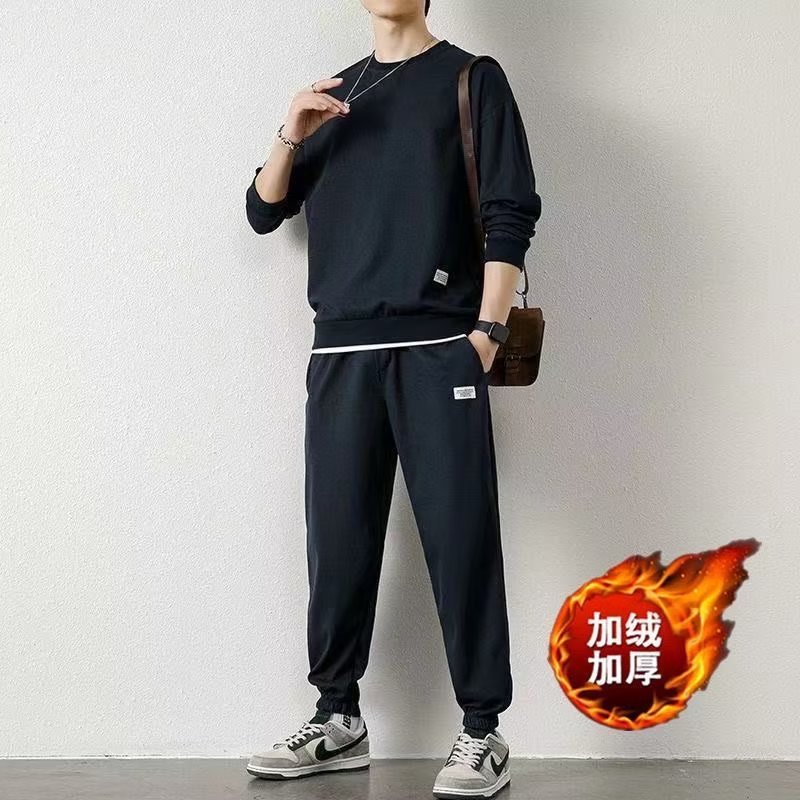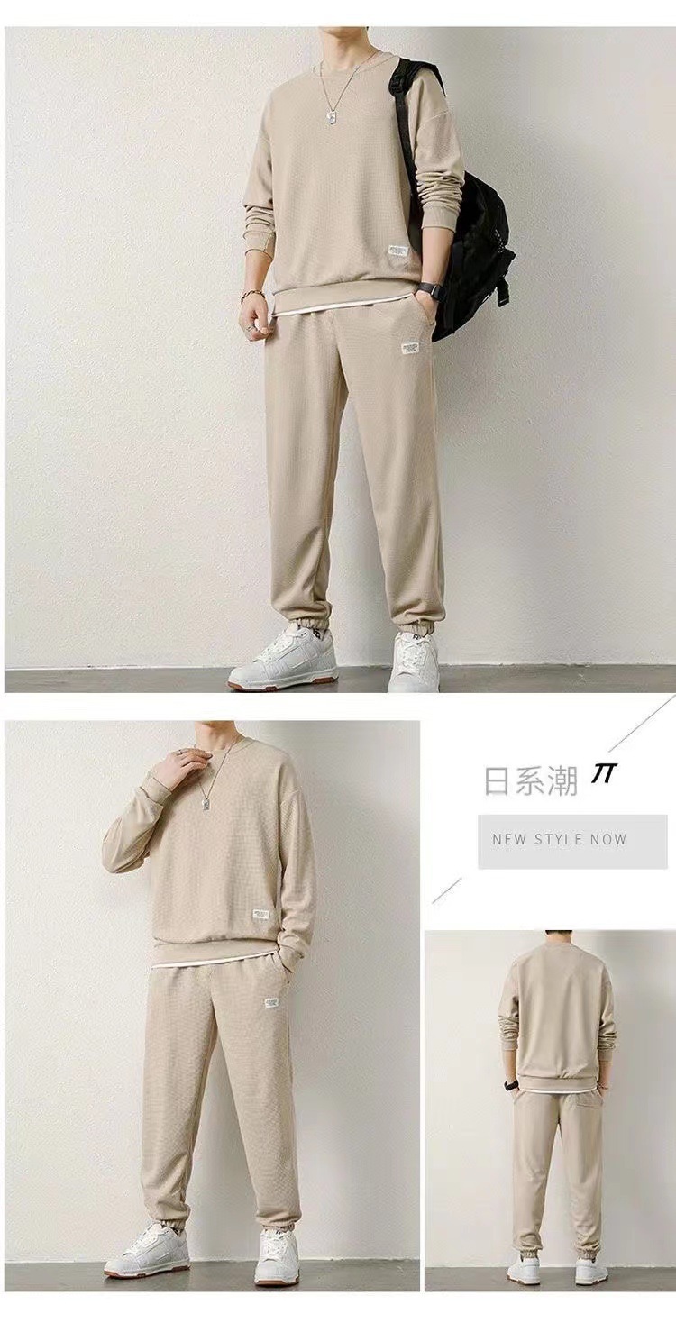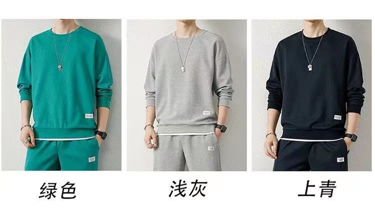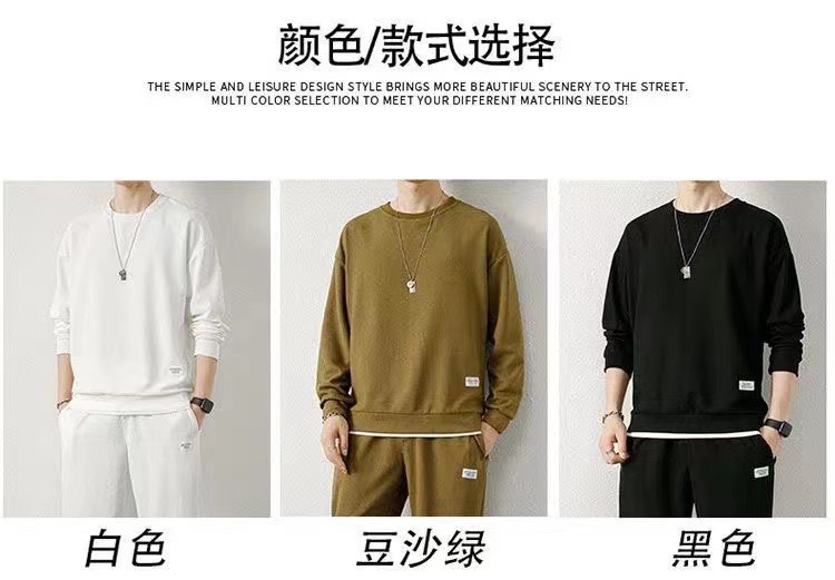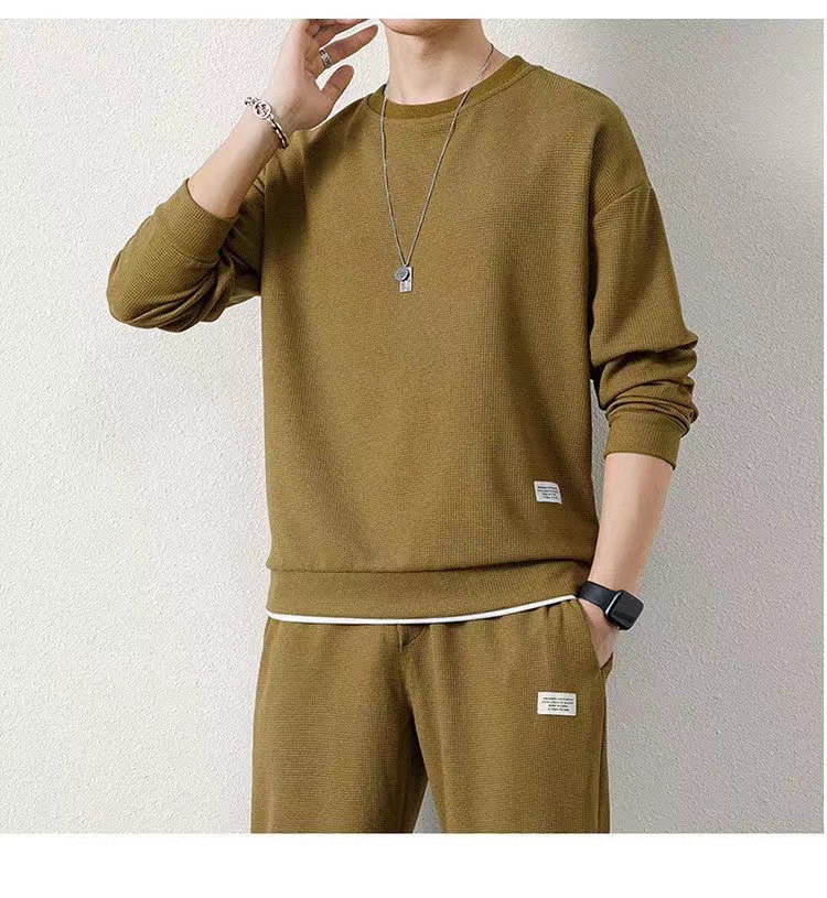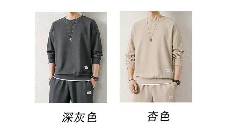 와플 기모 두꺼운 플러스 사이즈 스웨트 셔츠 남자 가을 겨울 단색 캐주얼 스포츠 남자 가짜 투피스 세트