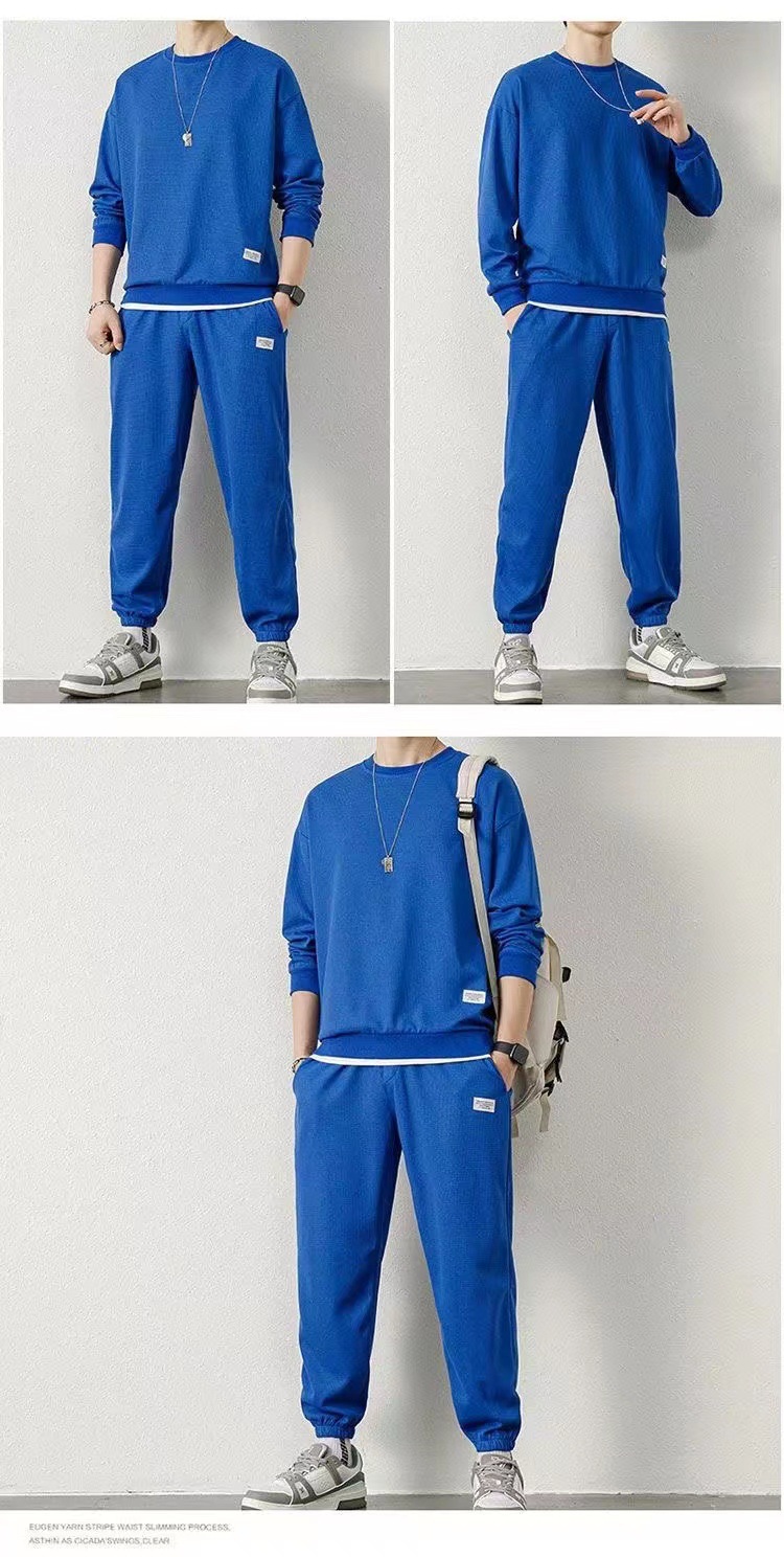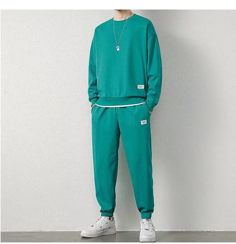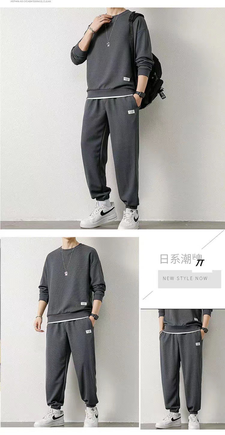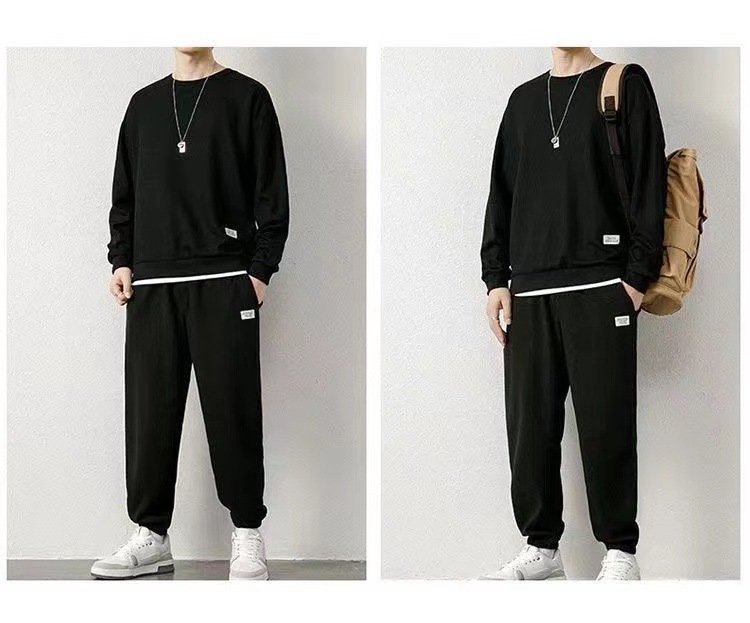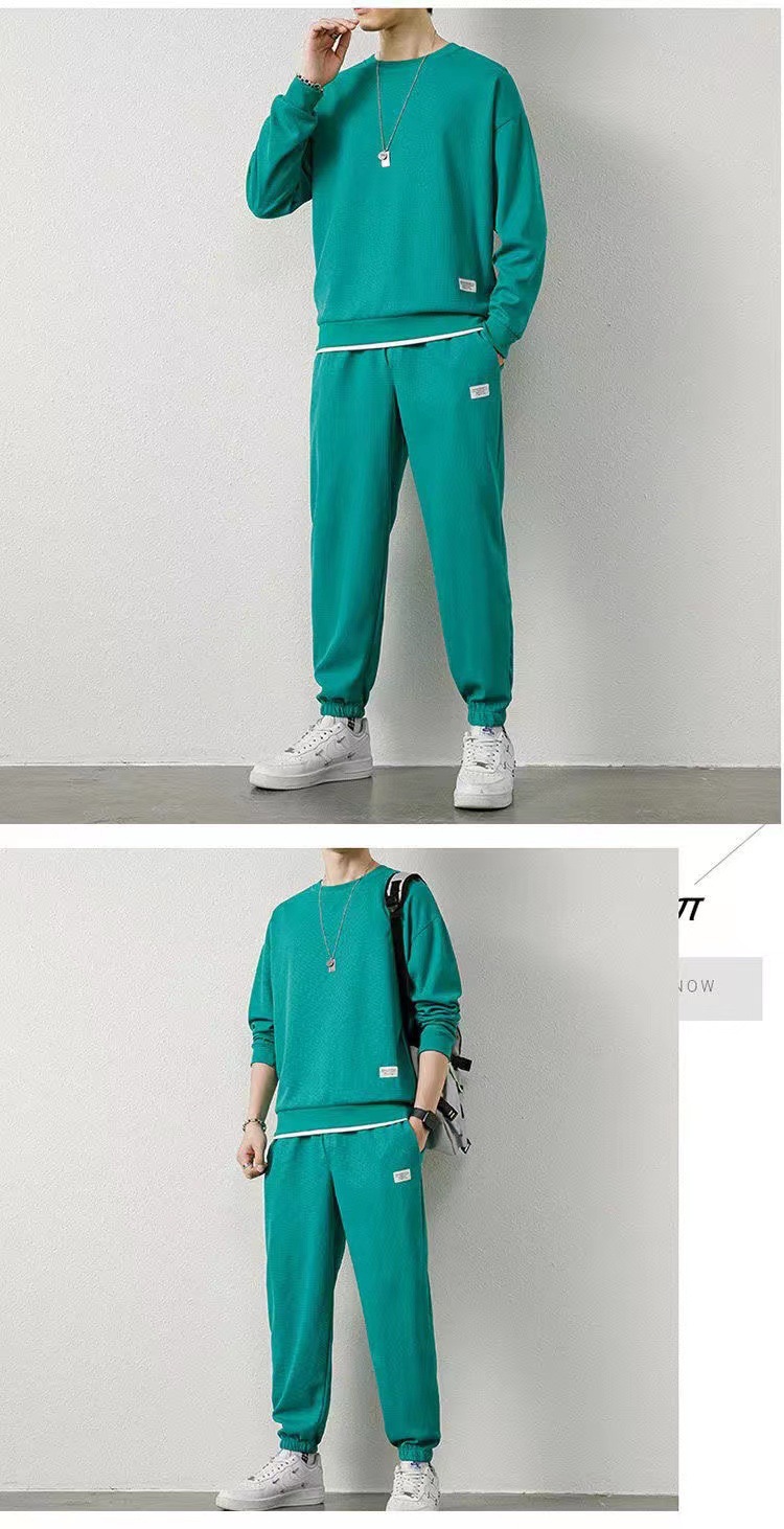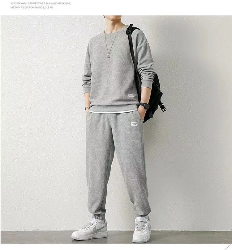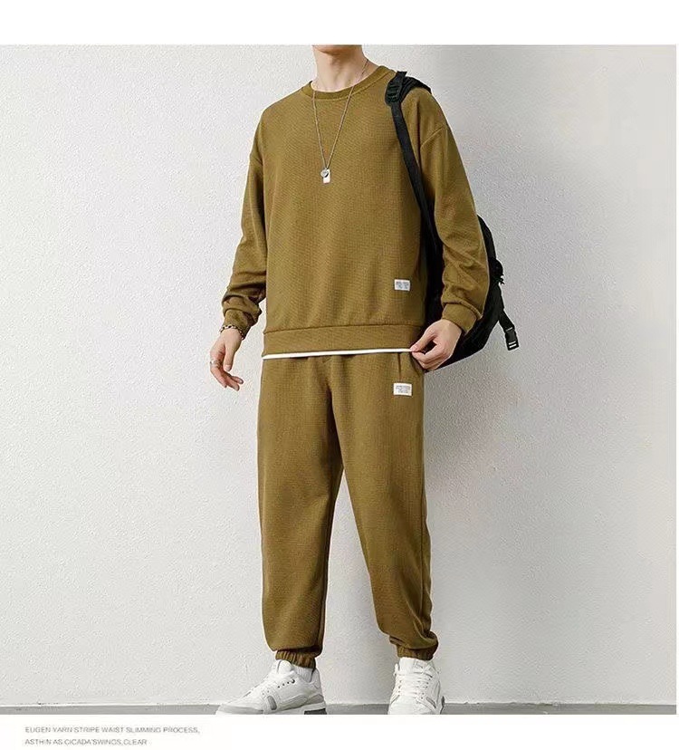와플 기모 두꺼운 플러스 사이즈 스웨트 셔츠 남자 가을 겨울 단색 캐주얼 스포츠 남자 가짜 투피스 세트