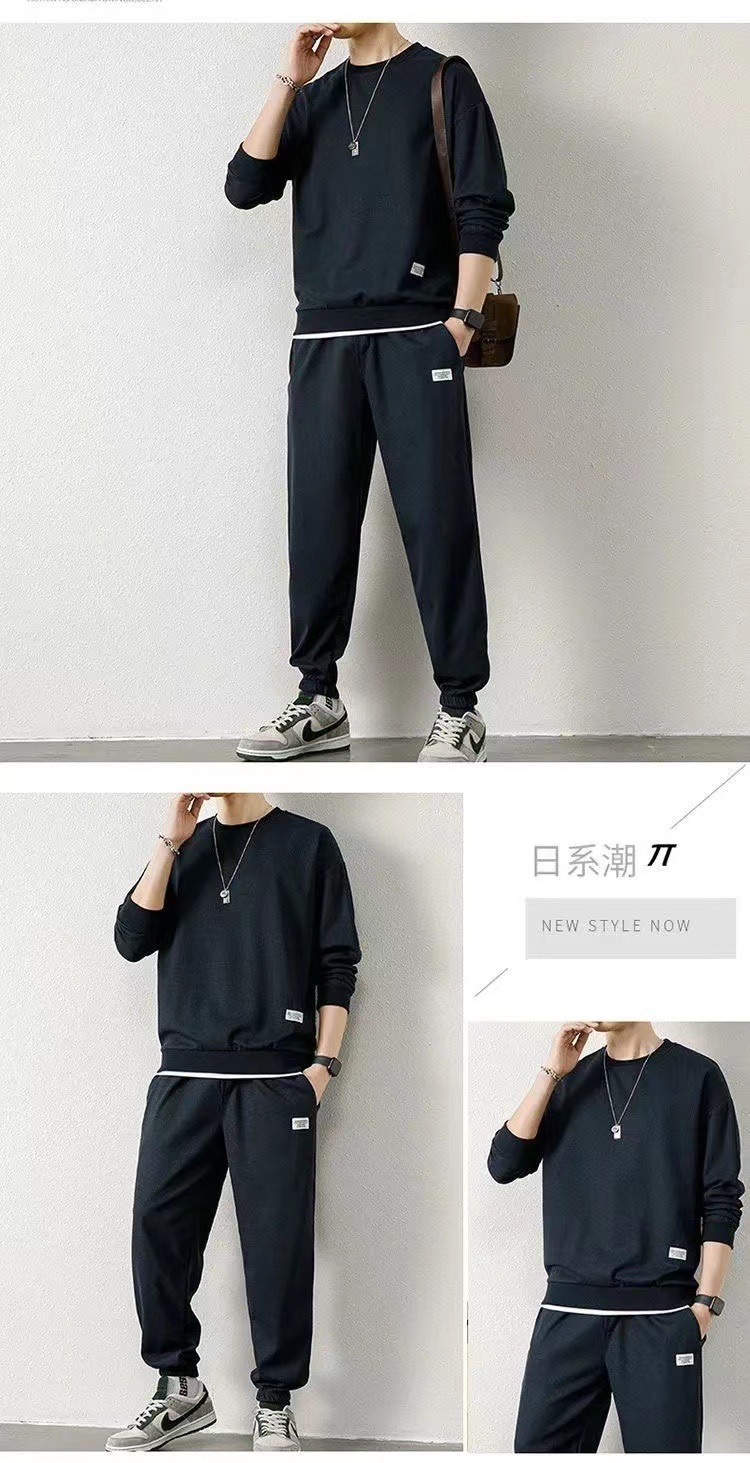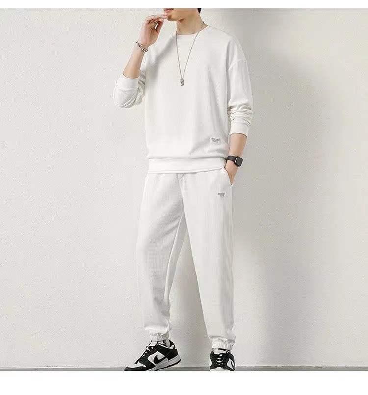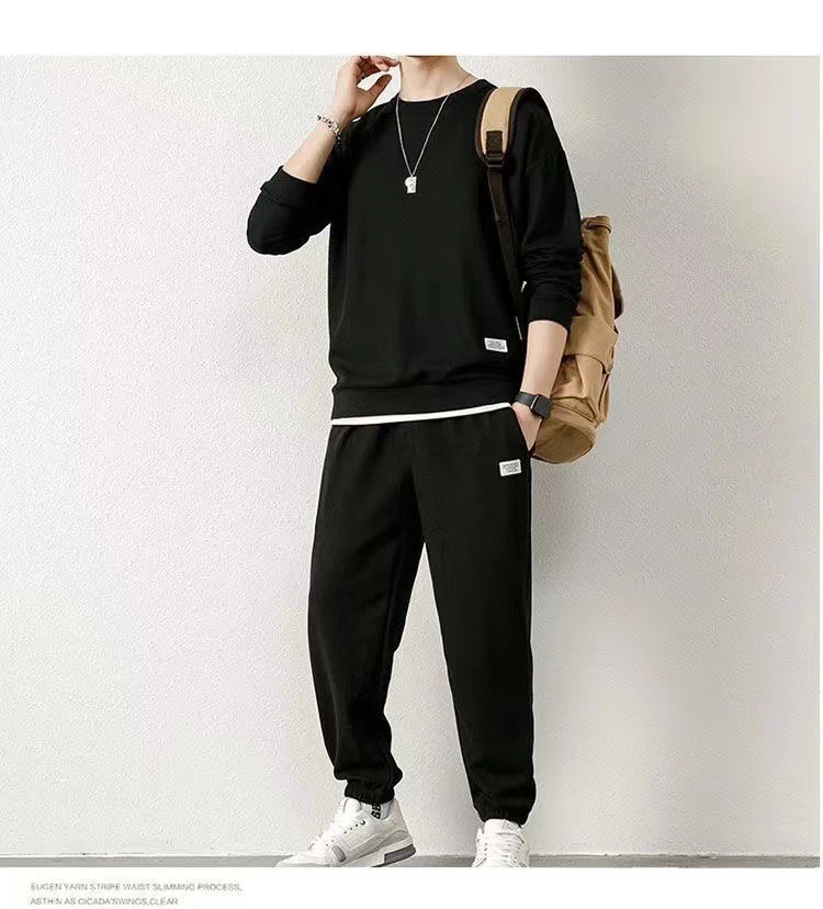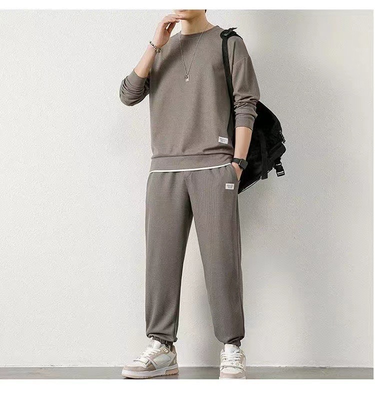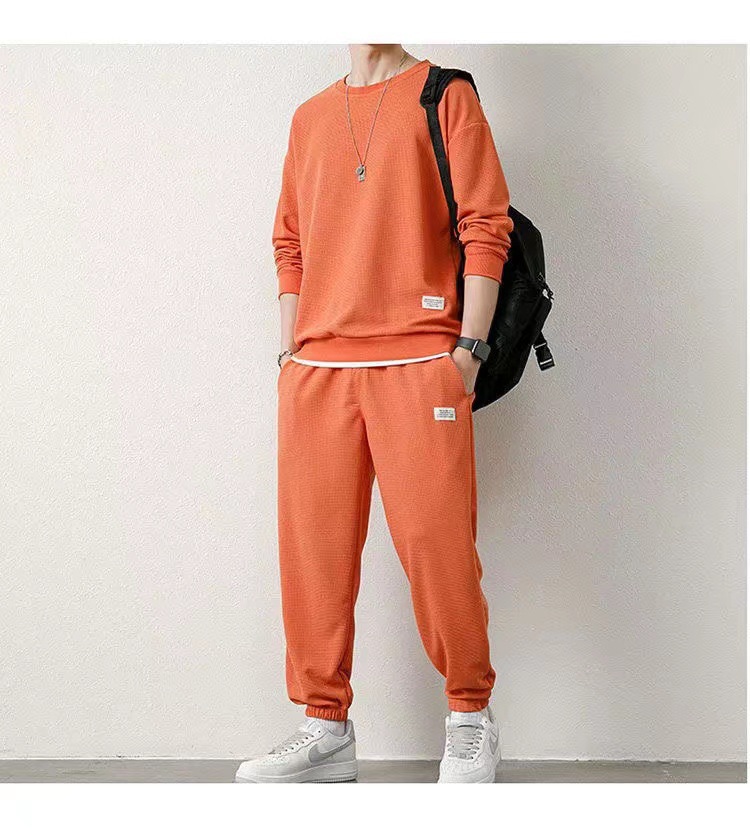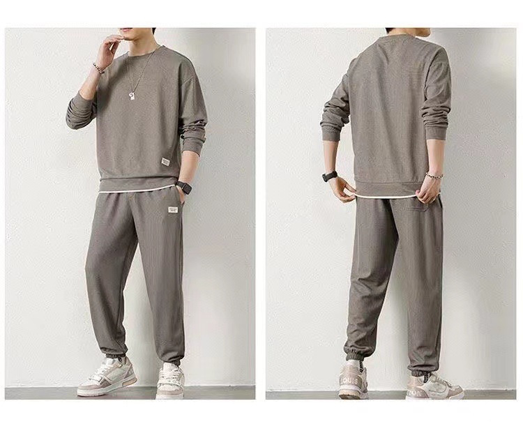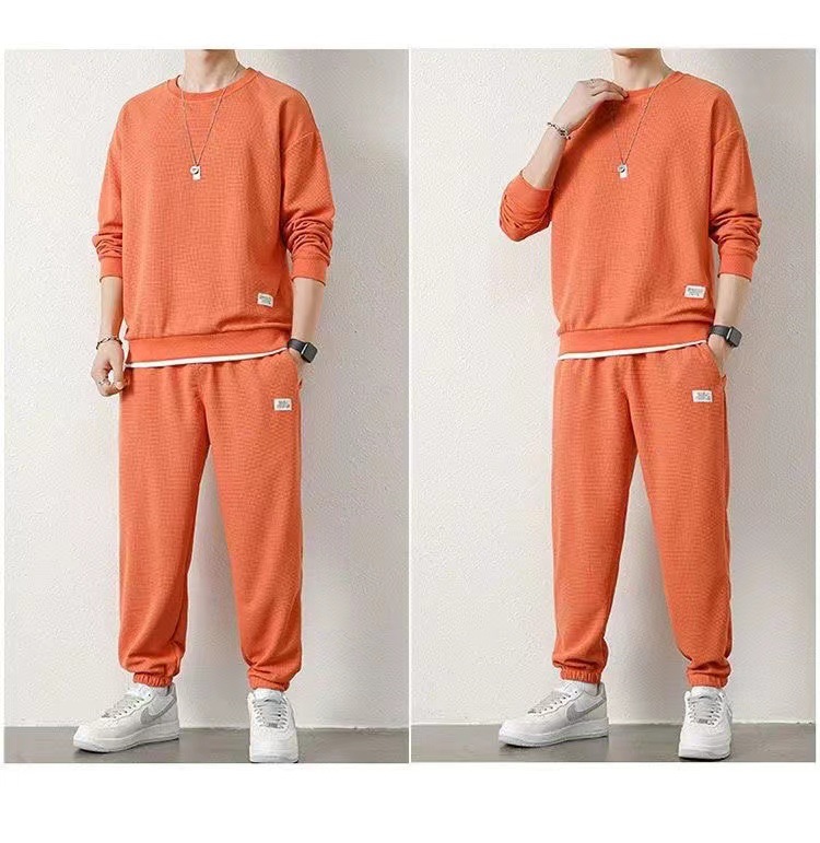 와플 기모 두꺼운 플러스 사이즈 스웨트 셔츠 남자 가을 겨울 단색 캐주얼 스포츠 남자 가짜 투피스 세트