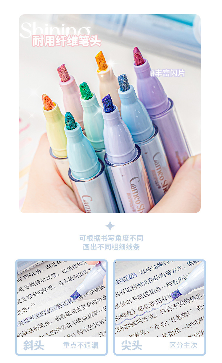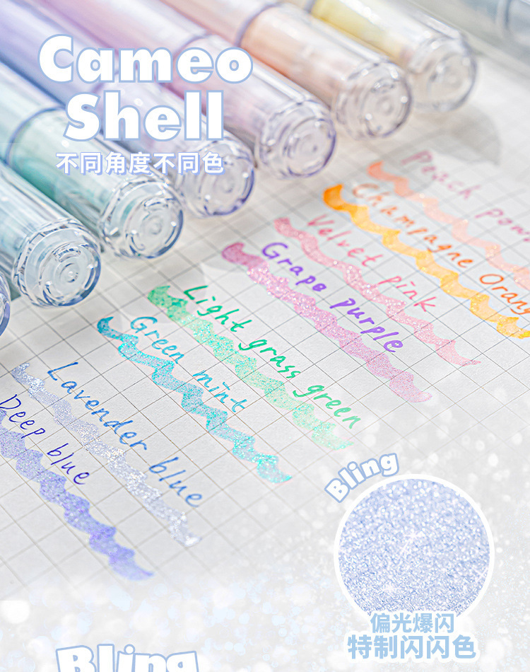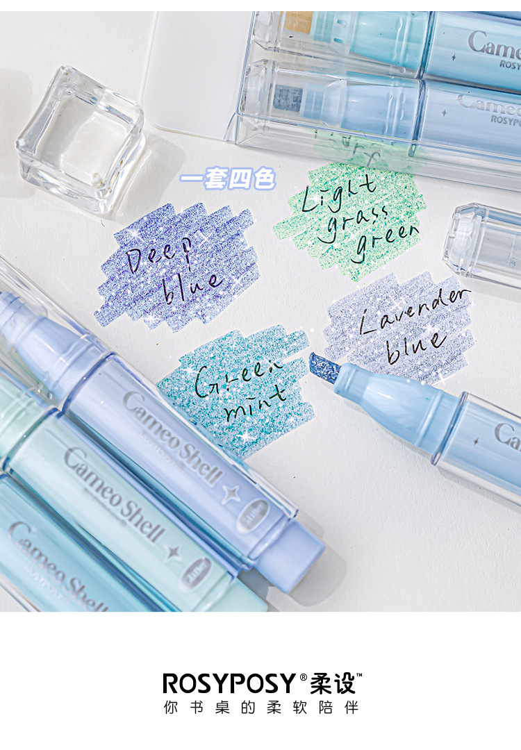 RosyPosy柔设清透色爆闪少女心贝母荧光笔 DIY手账彩笔荧光记号笔