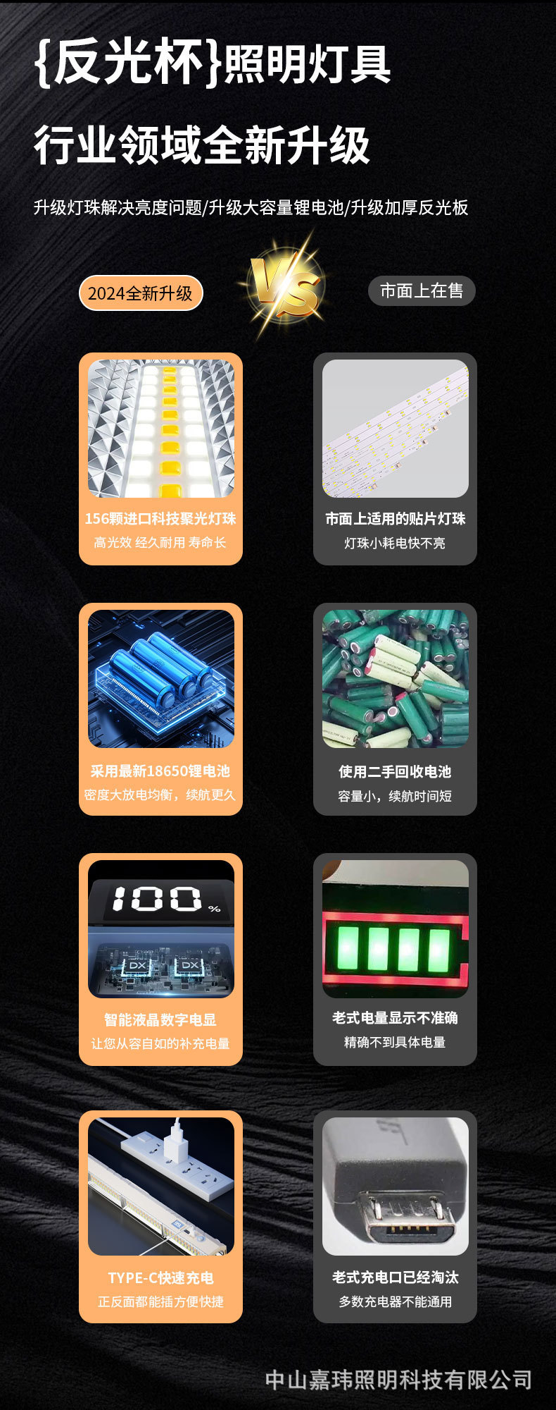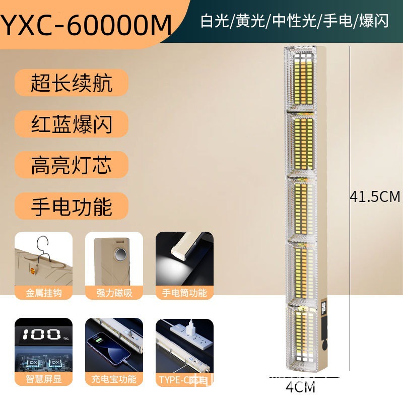 Led 충전 튜브 매달린 캠핑 조명 방수 텐트 라이트 지붕 자기 충전식 비상 조명