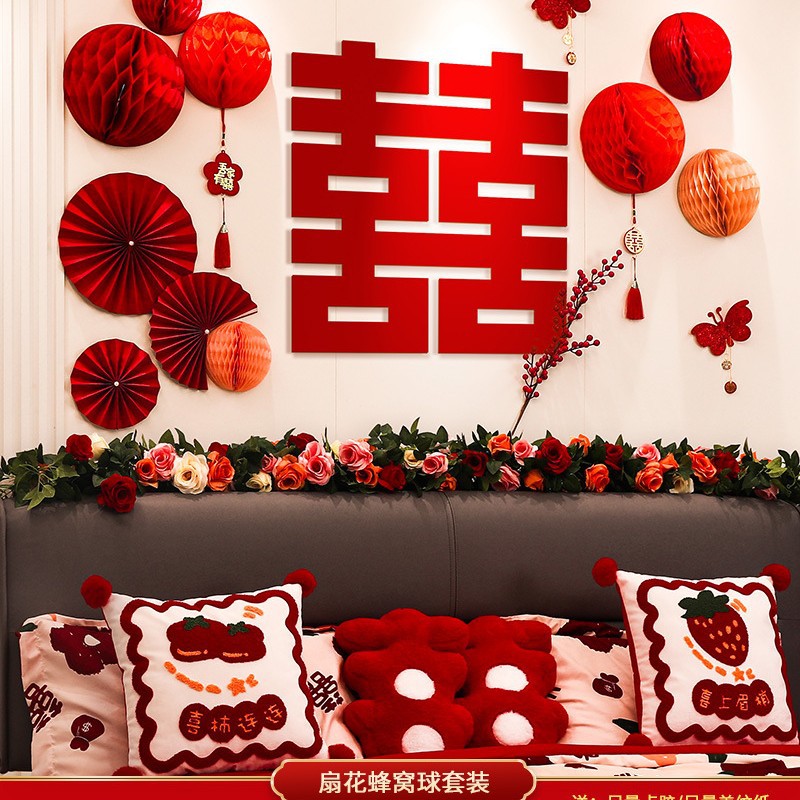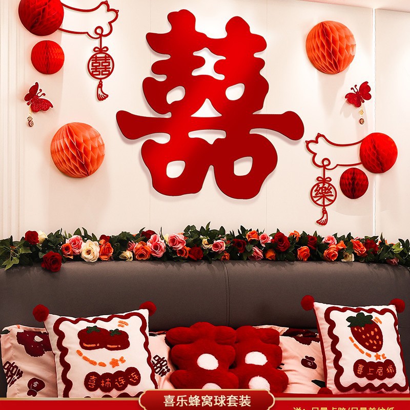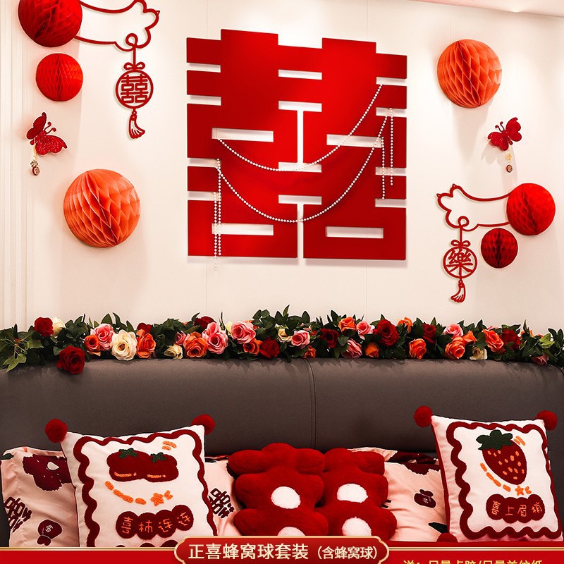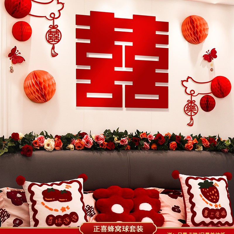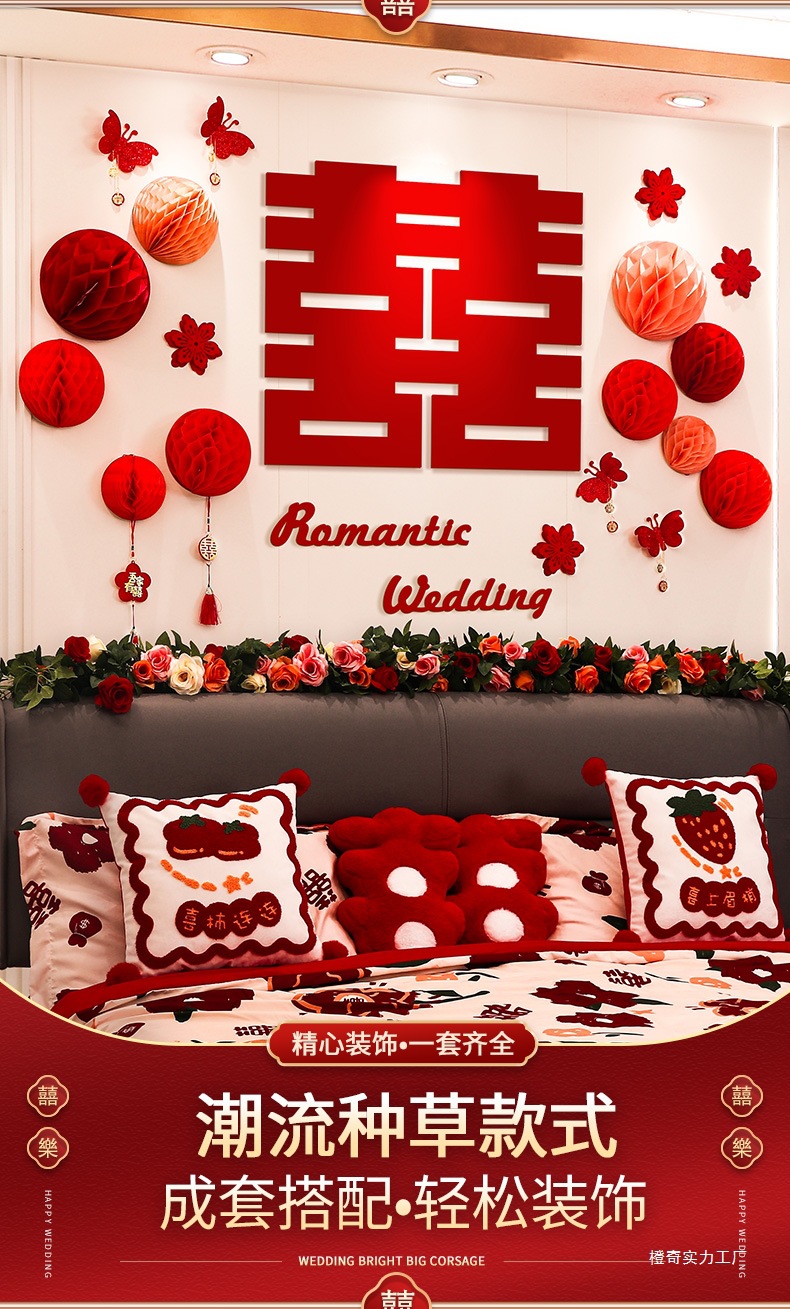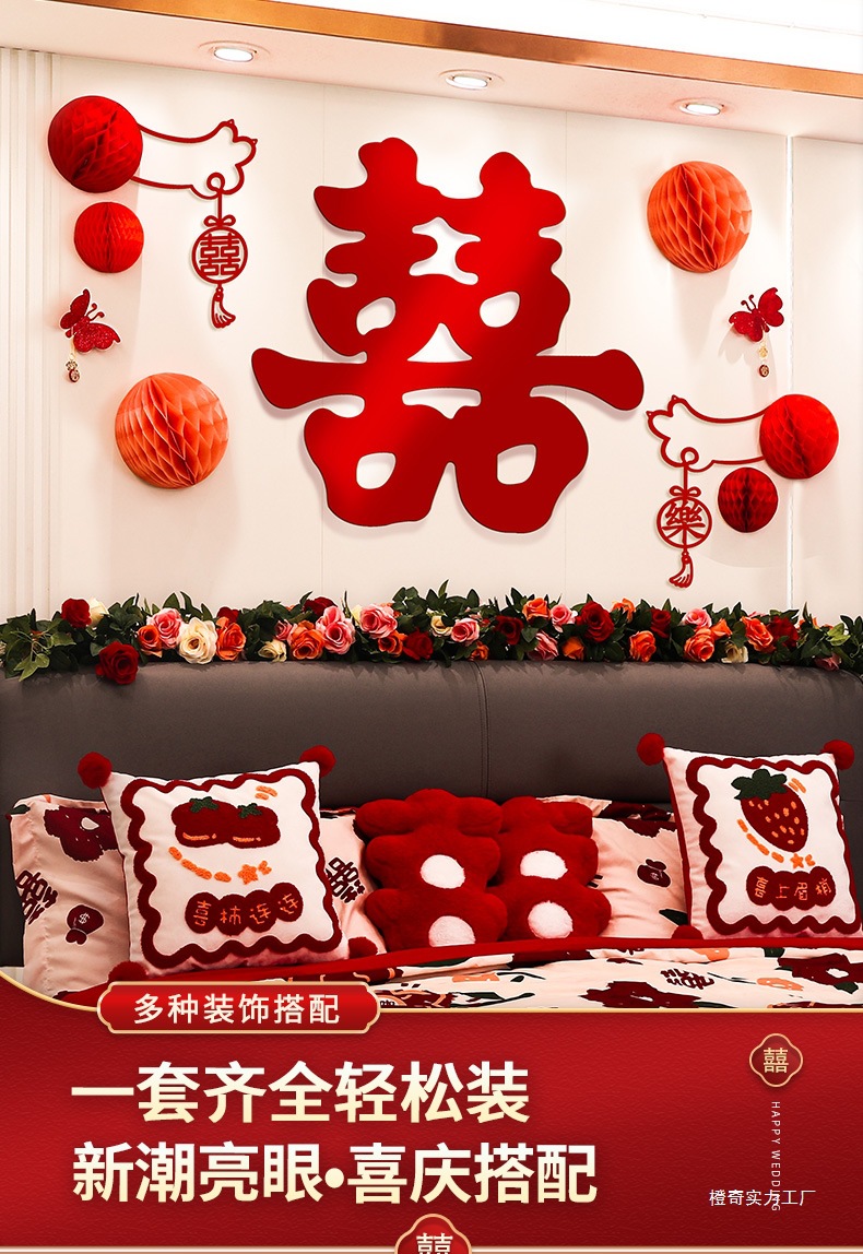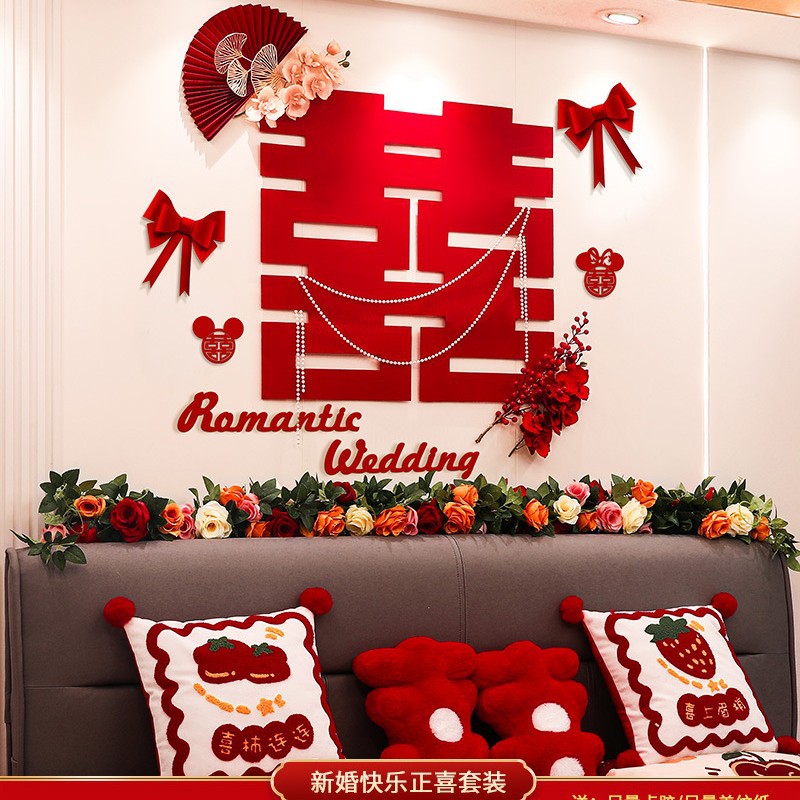 웨딩 룸 레이아웃 여성의 침실 웨딩 새 집 장식 침대 옆 웨딩 스티커 배경 벽 세트 웨딩 용품스토어 가기