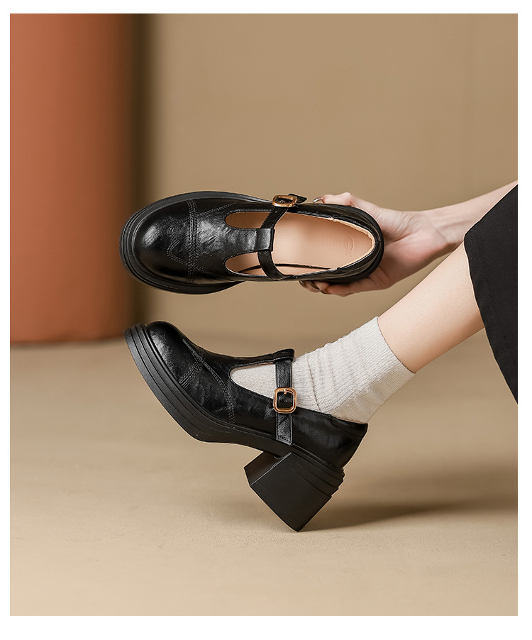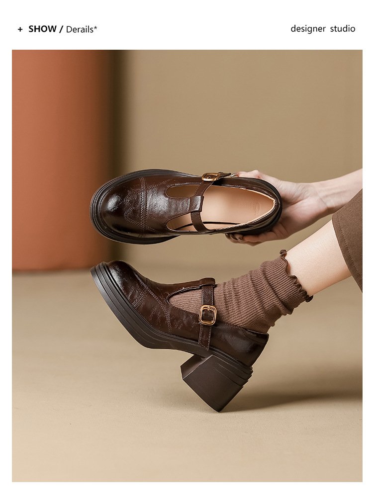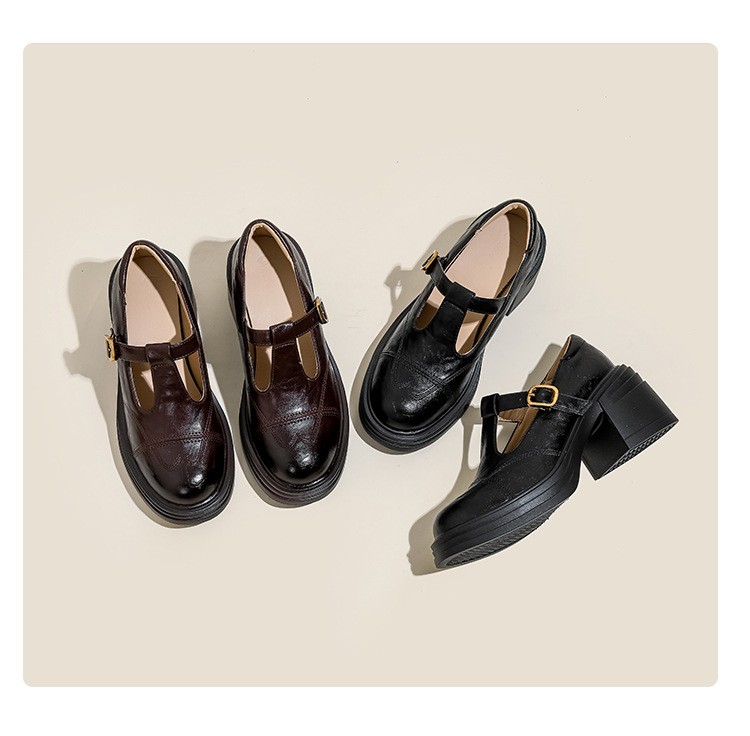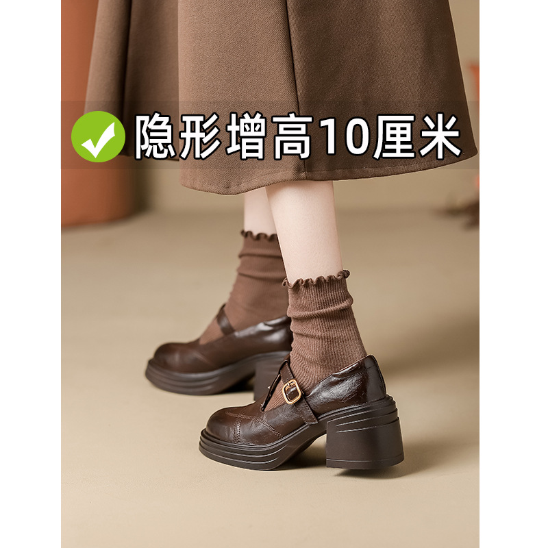 여성 2025 신발 새로운 두꺼운 밑창 여성 영국식 작은 가죽 신발 프렌치 레트로 메리 제인 높이 증가 여성 신발스토어 가기