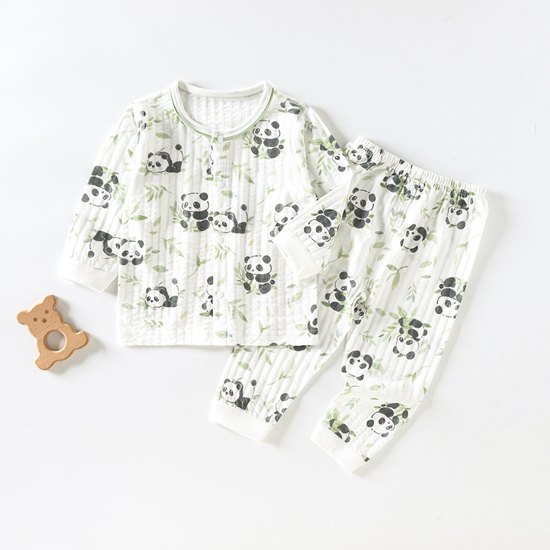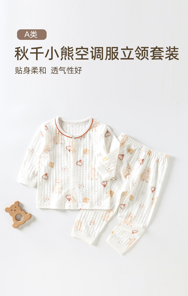 아기 홈 옷 잠자는 옷 봄과 여름 아기 소년과 소녀를위한 얇은 투피스 세트 긴팔 세트 통기성 에어컨 옷스토어 가기