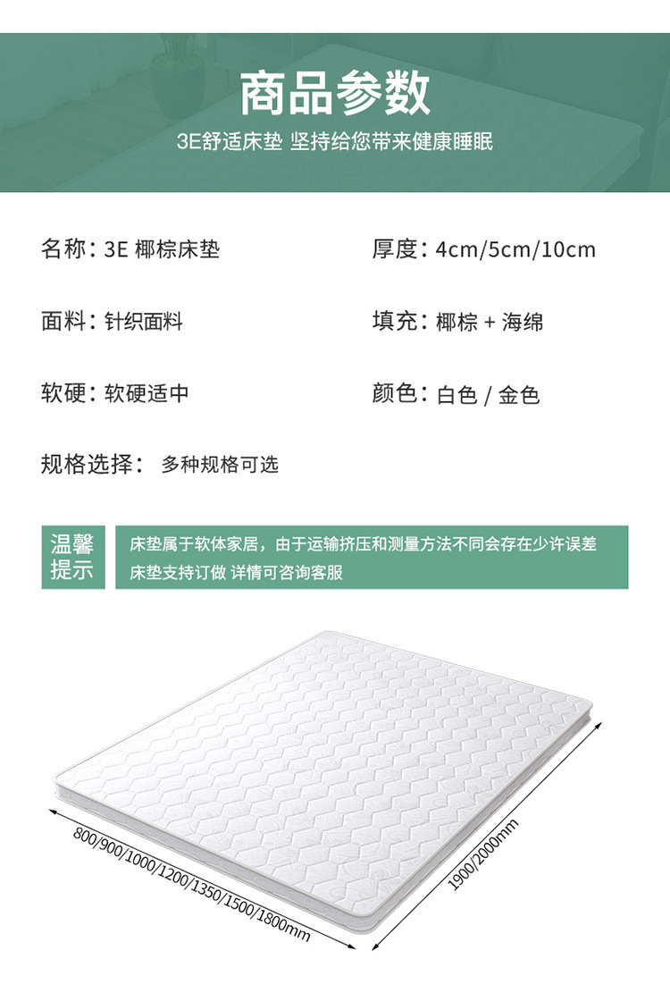 친환경 매트리스 브라운 매트리스 단단한 어린이용 천연 1.5m 싱글 1.2 두꺼운 야자섬유 경제형 무접착제 1.8m 코코넛 브라운스토어 가기