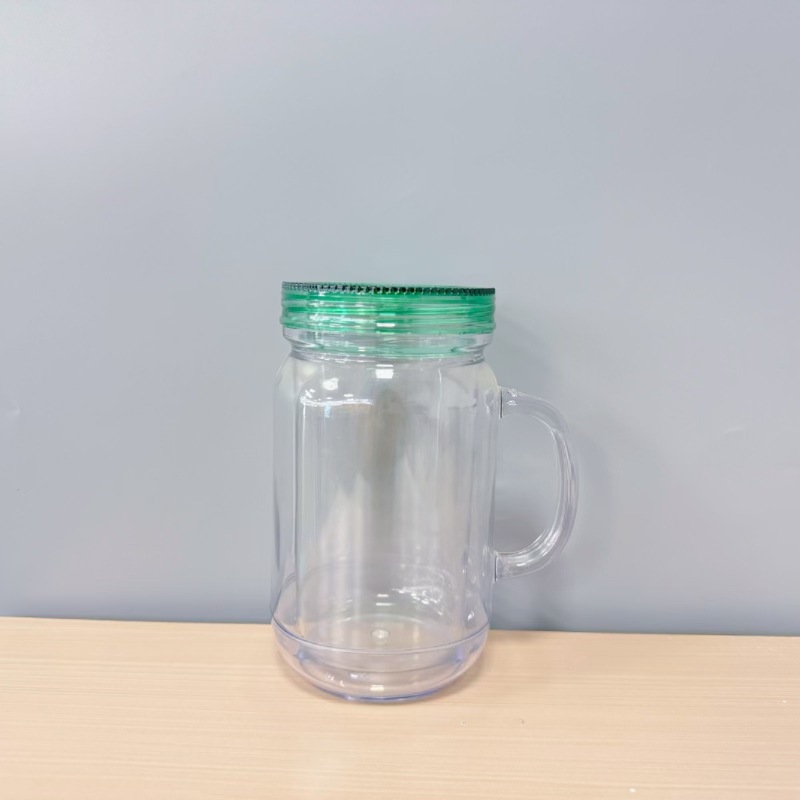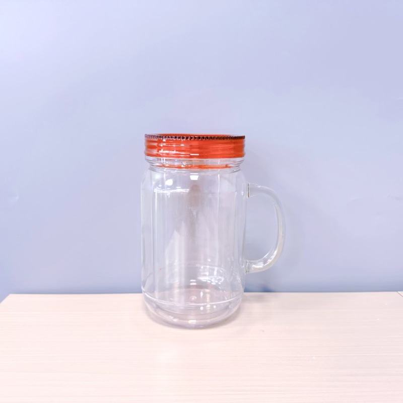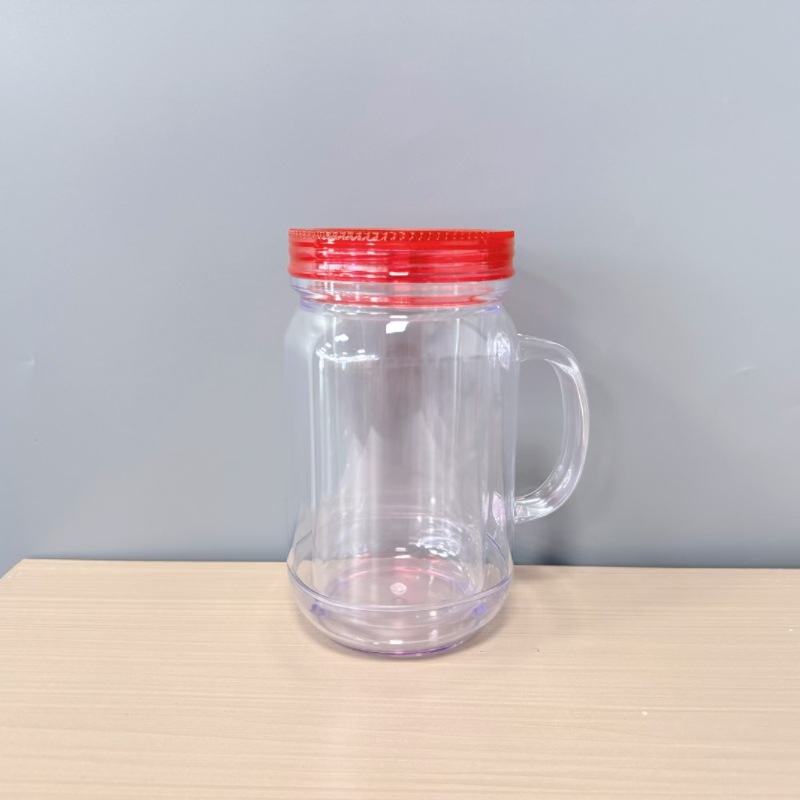 인기 있는 이중 투명 플라스틱 빨대컵 손잡이 달린 플라스틱 메이슨컵 눈꽃컵스토어 가기