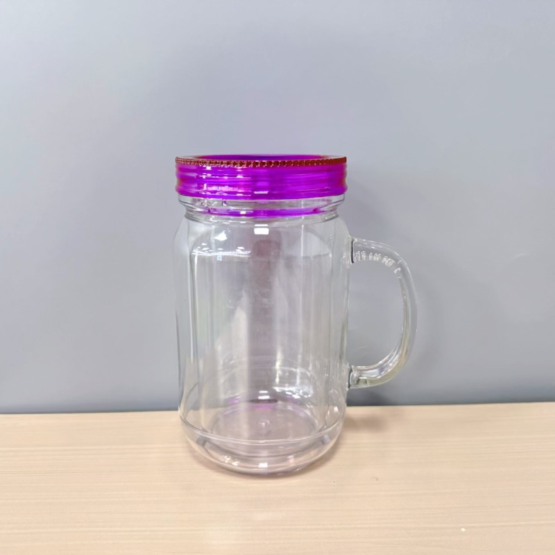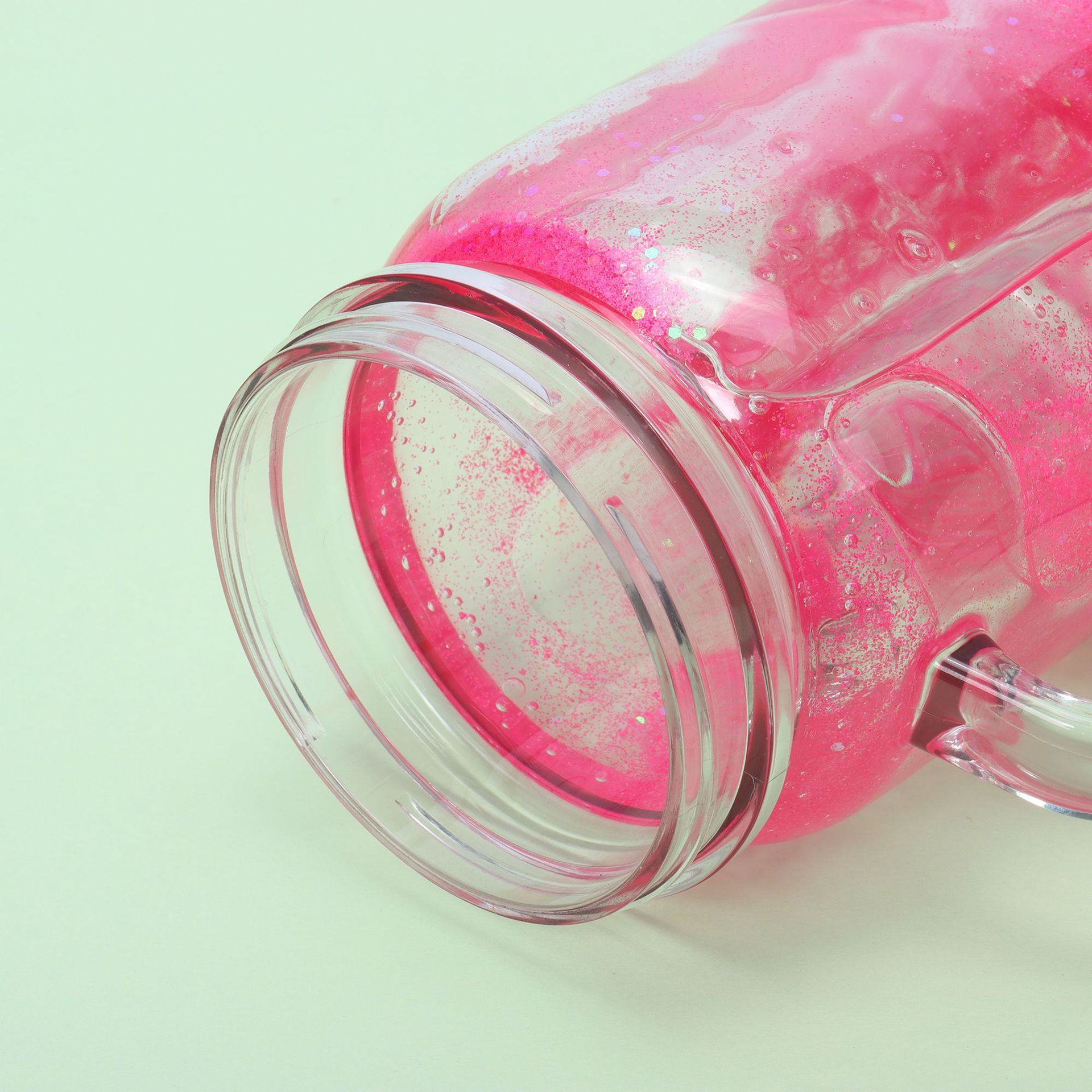 인기 있는 이중 투명 플라스틱 빨대컵 손잡이 달린 플라스틱 메이슨컵 눈꽃컵
