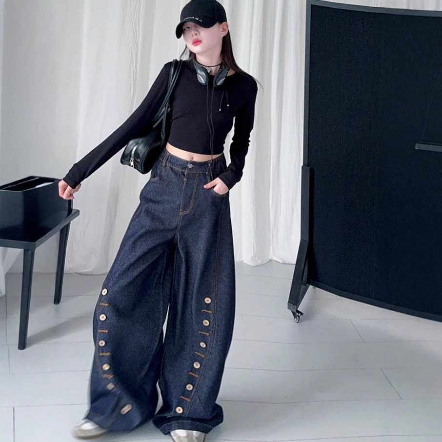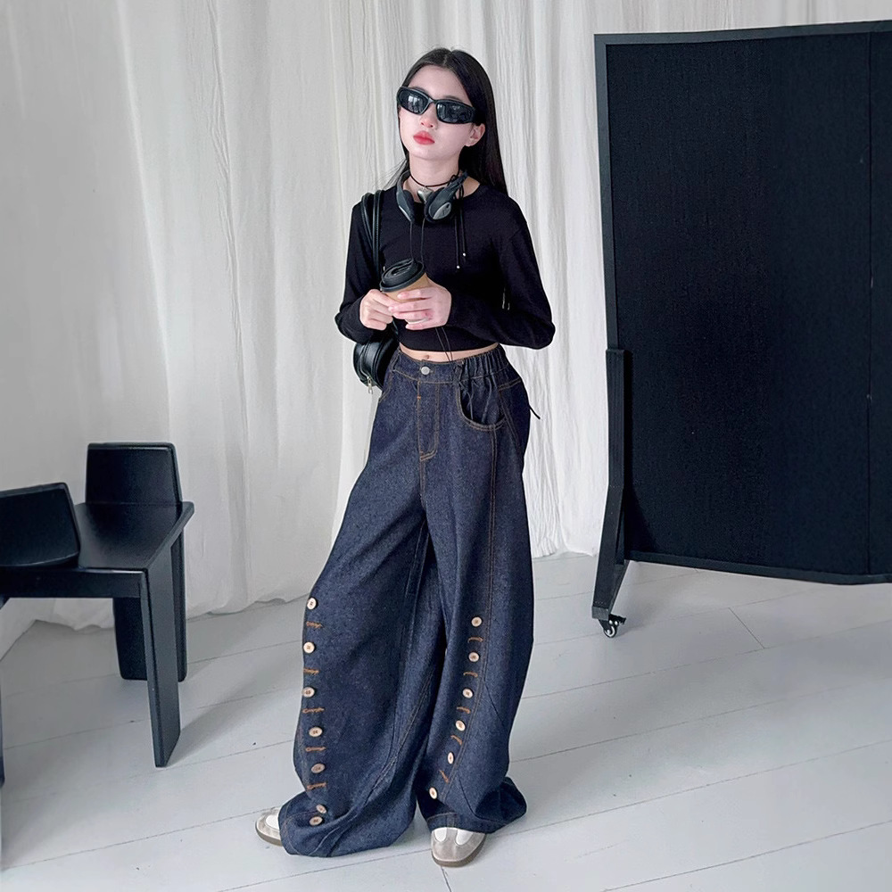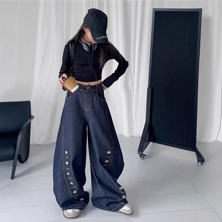 소녀 청바지 2025 새로운 어린이 봄 서양식 유행 투피스 세트 대형 어린이 봄과 가을 느슨한 유행 바지스토어 가기