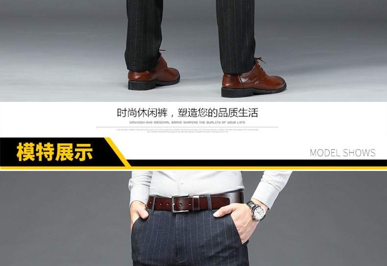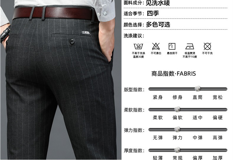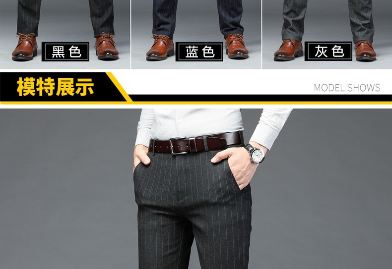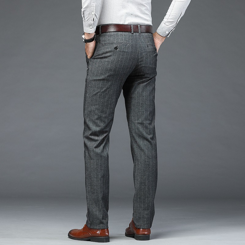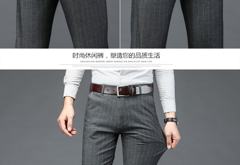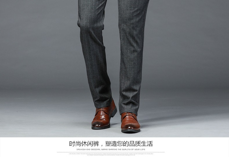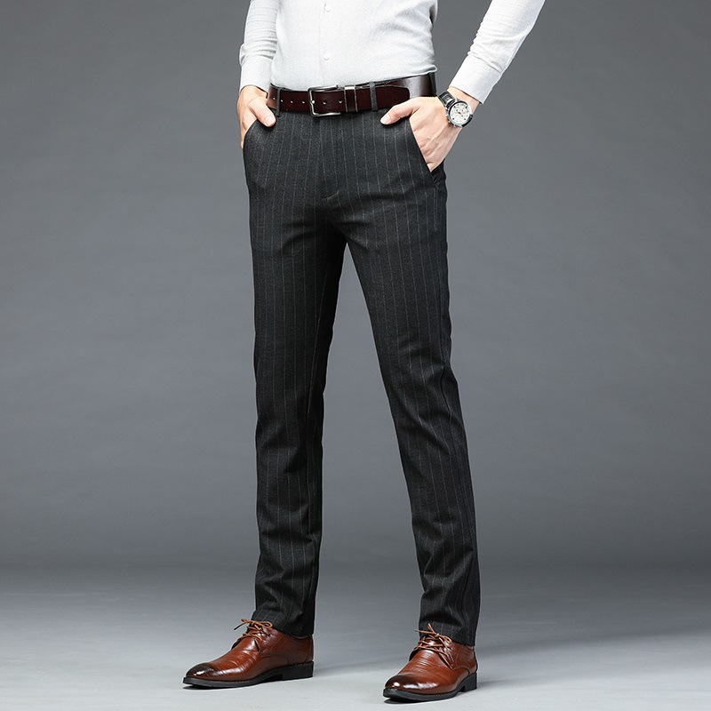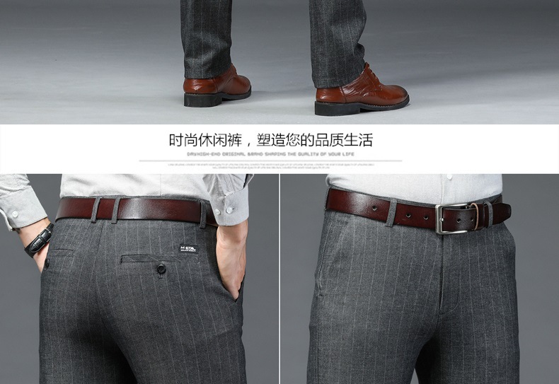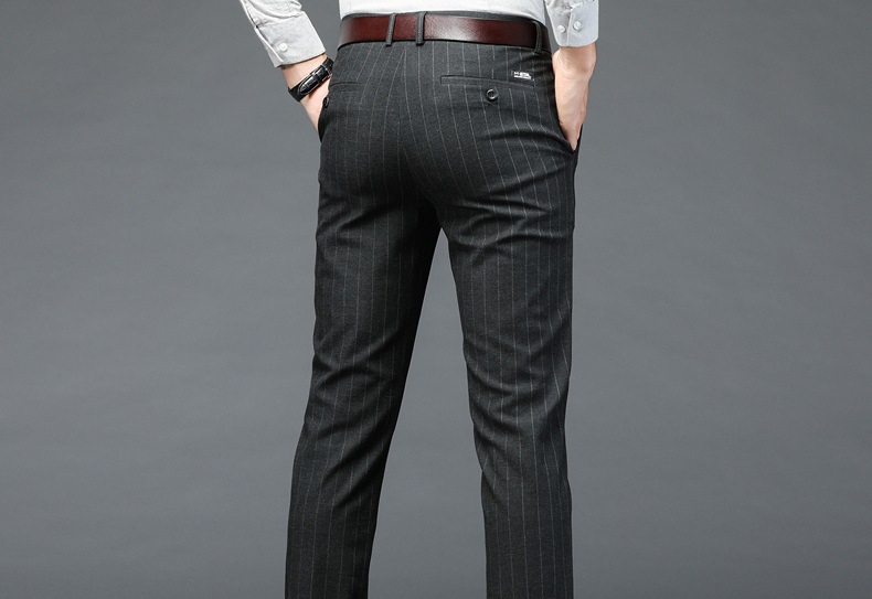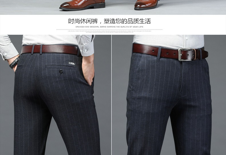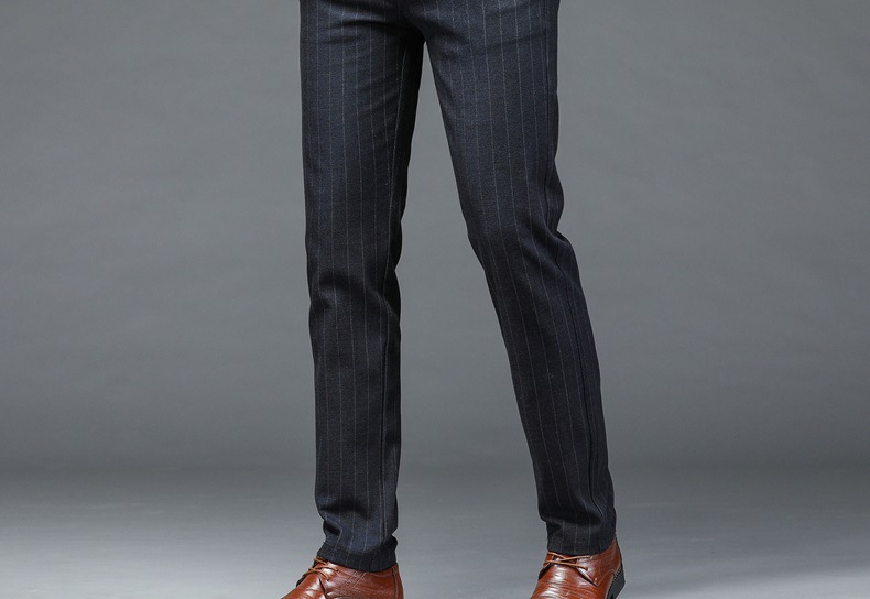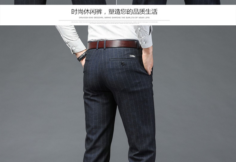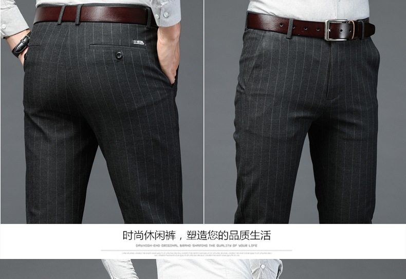 가을과 겨울을위한 남성용 캐주얼 바지 가을 새로운 슬림 핏 스트레이트 수직 스트라이프 바지 비즈니스 바지 남성 원피스 바지스토어 가기