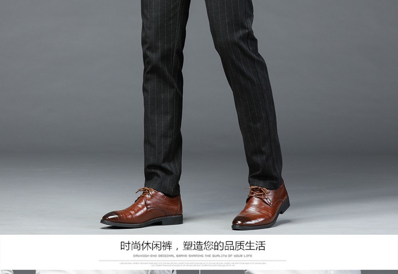 가을과 겨울을위한 남성용 캐주얼 바지 가을 새로운 슬림 핏 스트레이트 수직 스트라이프 바지 비즈니스 바지 남성 원피스 바지