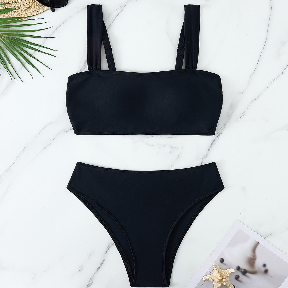 새로운 비키니 수영복 블랙 성적인 해변 분할 수영복 어깨 끈 조정 가능한 높은 탄성 높은 허리 수영복 여성