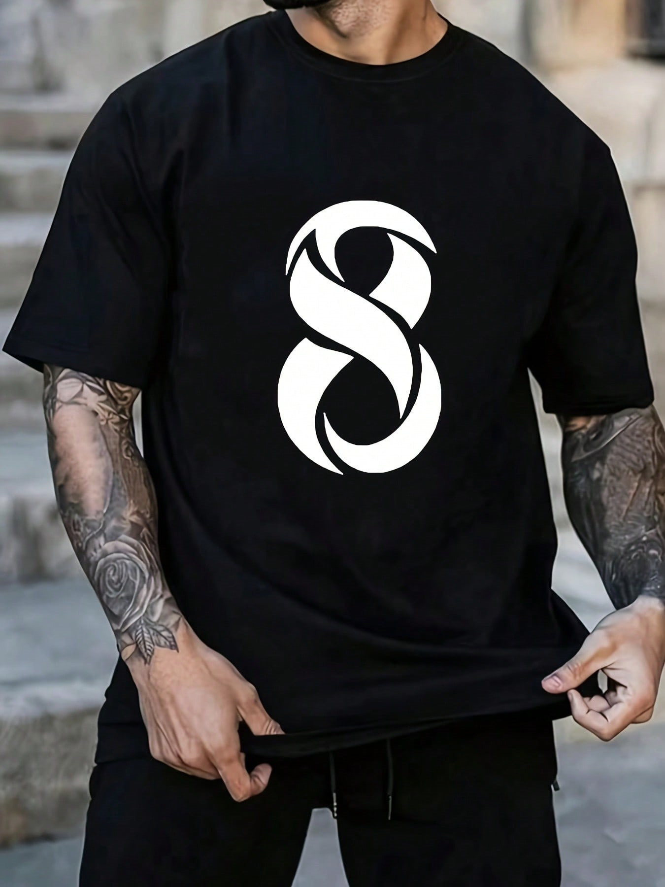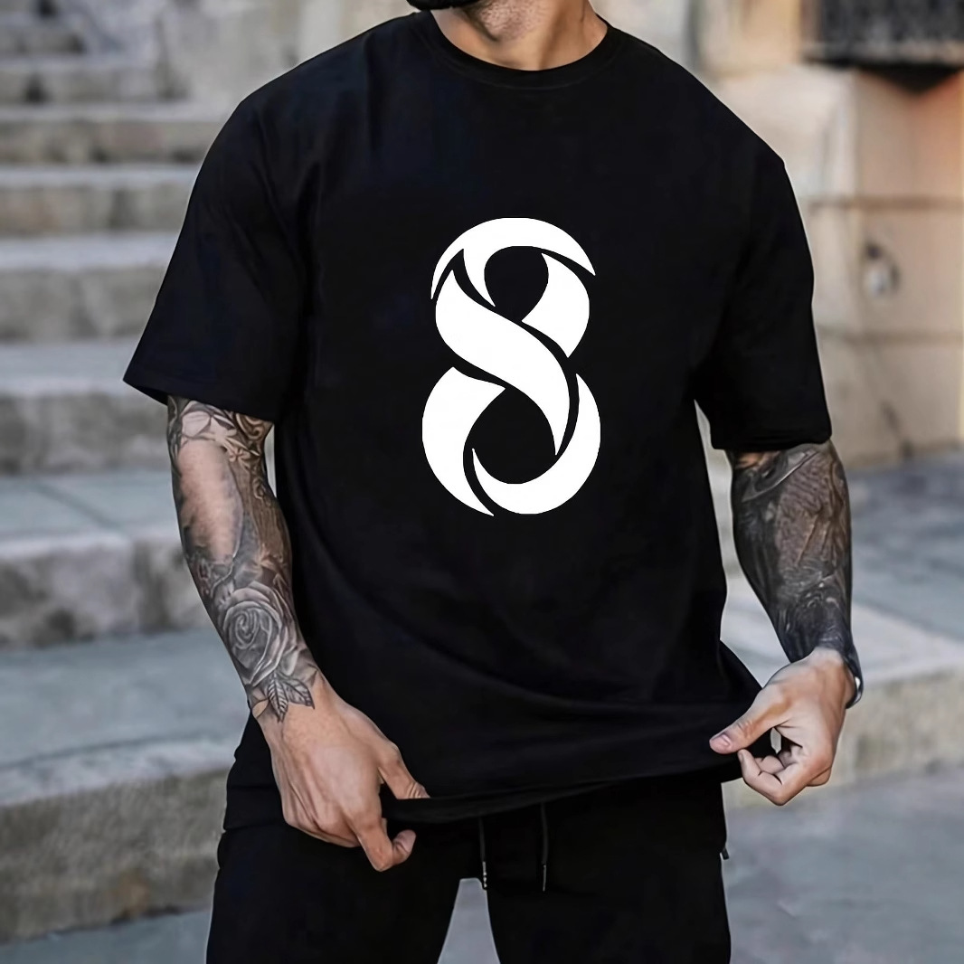 국경 간 여름 올 매치 쇼트 티셔츠 남성용 슬림 핏 하프 슬리브 일본식 레트로 디지털 인쇄 라운드 넥 캐주얼 탑