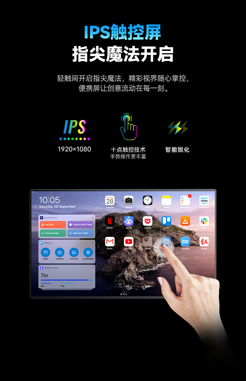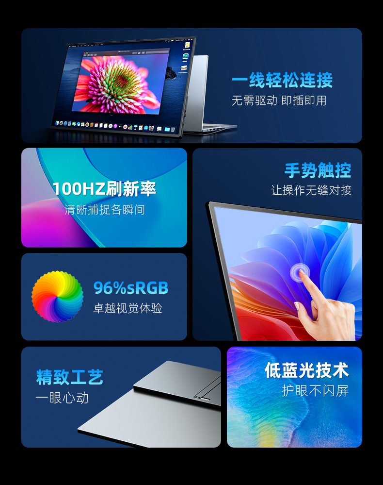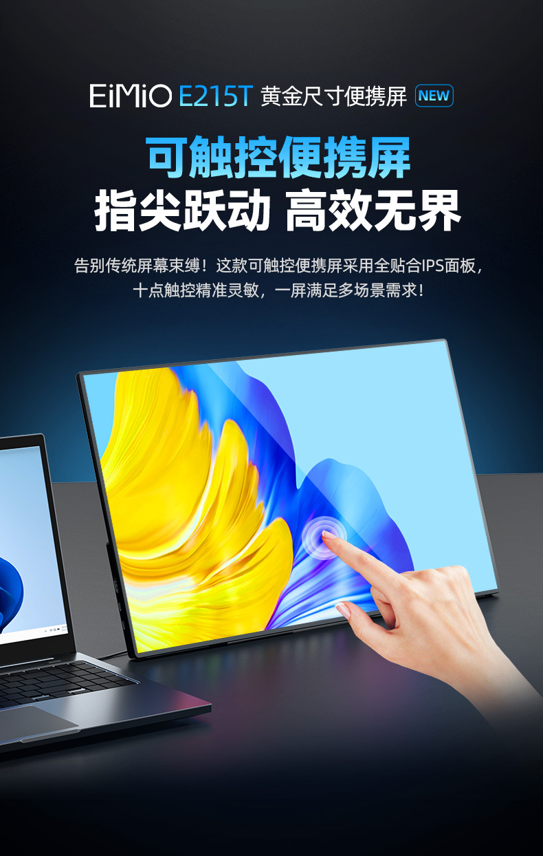 EIMIO 21.5 "터치 100HZ 휴대용 디스플레이 사무실 게임 엔터테인먼트 컴퓨터 확장 서브 스크린 IPS