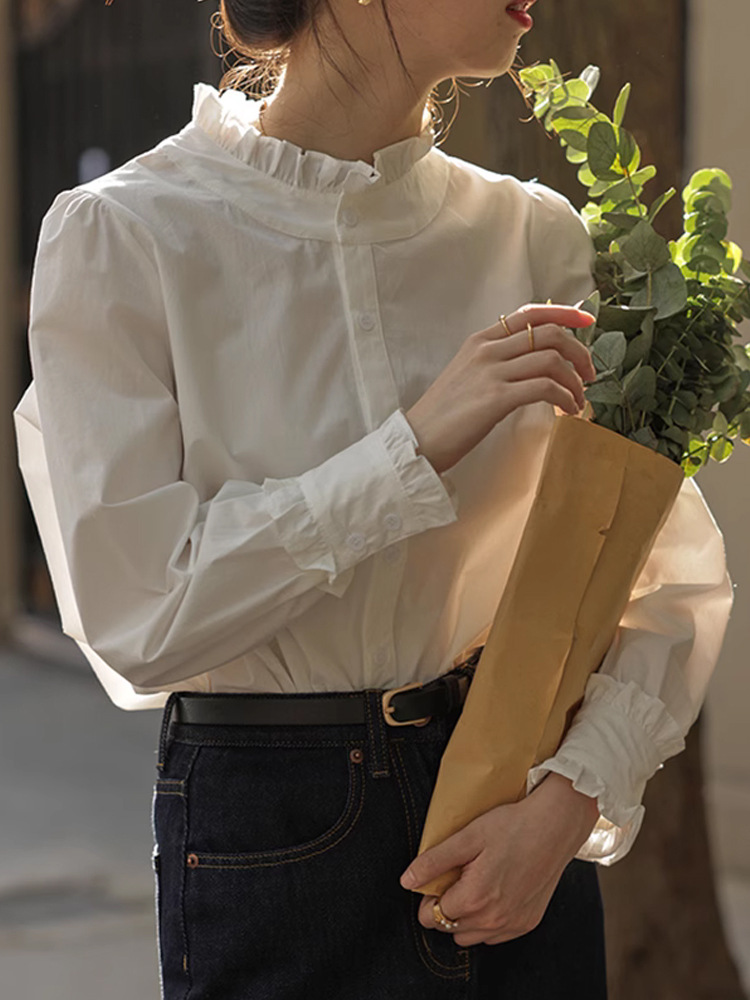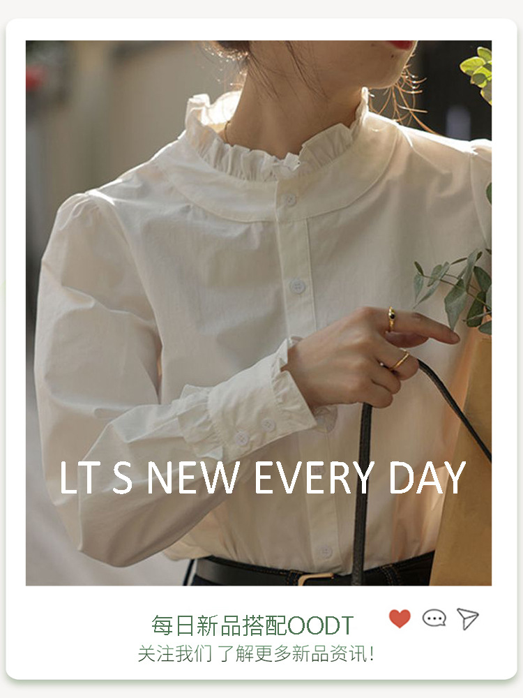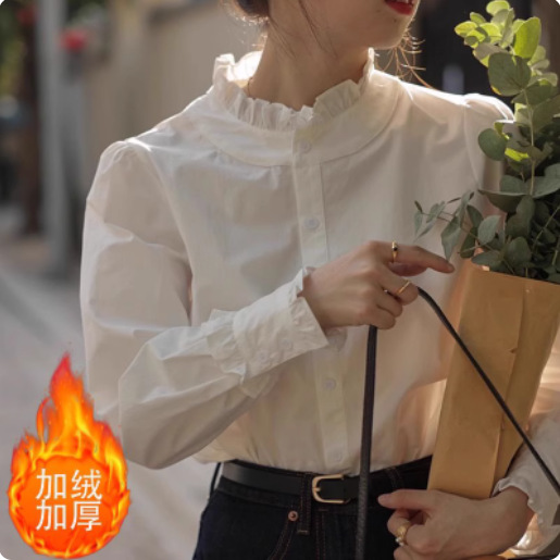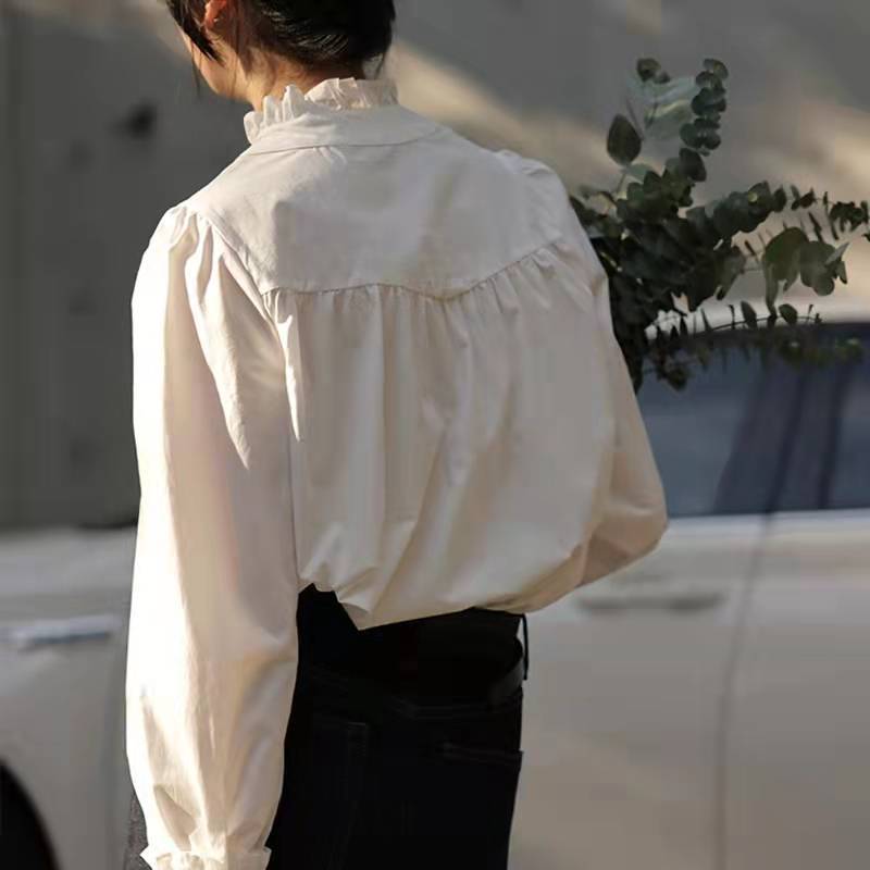 프렌치 레이스 칼라 긴팔 셔츠 여성용 가을 2025 신상품 작은 사이즈 이너웨어 스타일리시한 화이트 셔츠스토어 가기